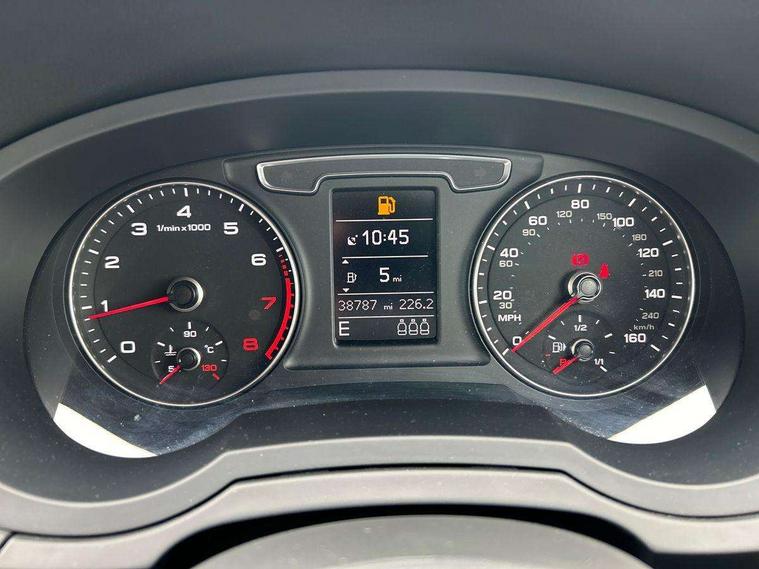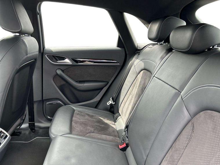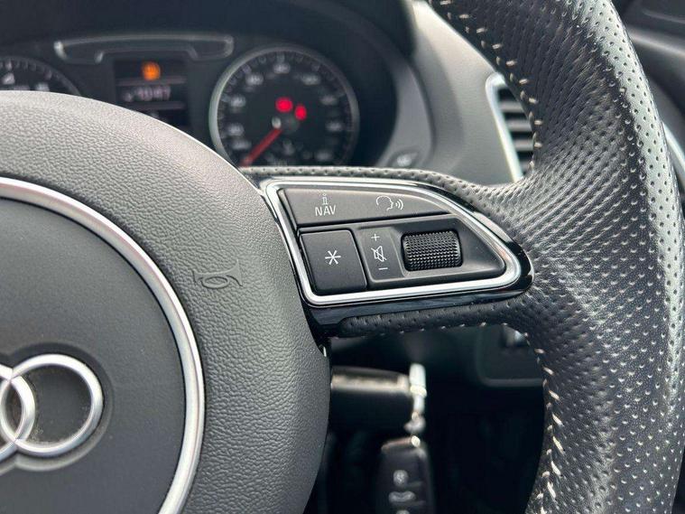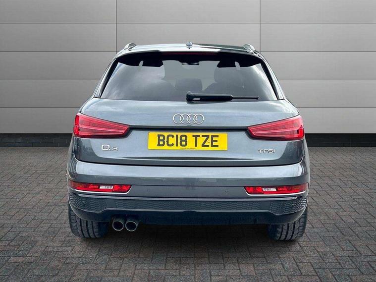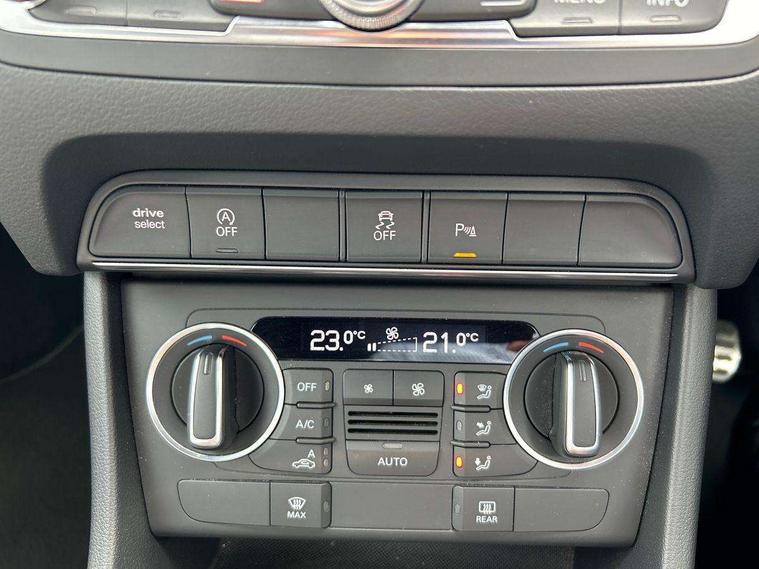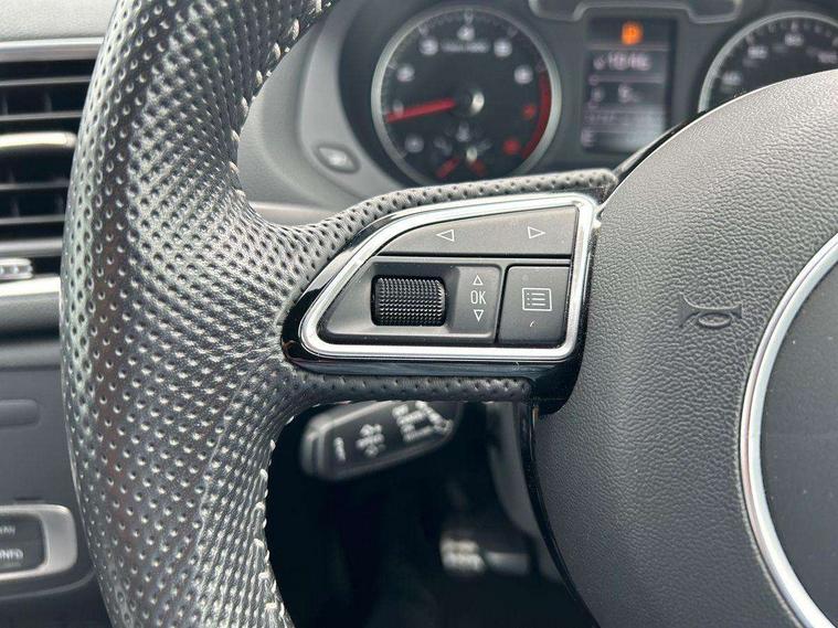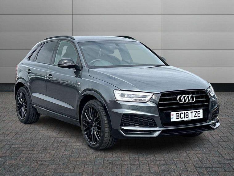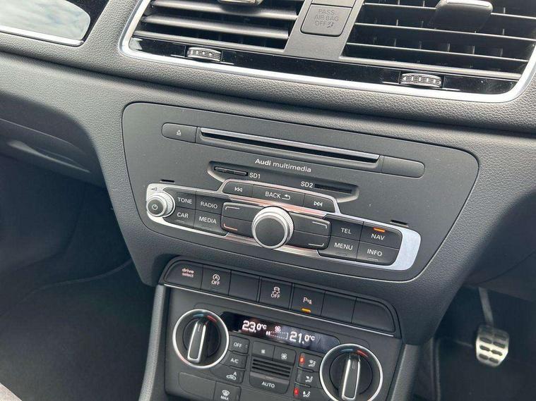 6.5" colour display screen, Audi drive select, Cruise control, Electro-mechanical PAS, Low washer fluid indicator, MMI - Multi Media Interface control system, On board computer, Remote electric boot opening/closing, Service interval indicator, Voice control system, Sports suspension, Audi music interface, BOSE sound system, DAB digital radio module, Acoustic windscreen, Aluminium window surround, Auto dimming rear view mirror, Black exhaust tailpipes, Black high gloss door mirrors, Black roof rails, Coming home function, Door mirror integrated indicators, Front and rear electric windows, Front fog lights, Front lip spoiler, Heated windscreen washer jets, High Gloss Black Contrast Bumpers, High Gloss Black rear spoiler, LED daytime running lights, LED headlights with headlight washers, LED rear lights, Light and rain sensor for auto activation of lights and windscreen wipers, Loading sill protector in stainless steel, Privacy glass, Rear diffuser with platinum insert, Rear wiper, S Line body styling, Sunband for windscreen, 12V socket in rear centre console, 3 spoke flat bottom multi-function perforated leather steering wheel with contrast stitching and aluminium gearshift paddles, Aluminium door sill trims, Aluminium gear knob, Black cloth headlining, Door sill trim strips, Dual zone climate control, Electric front lumbar adjustment, Front and rear headrests, Front and rear velour floor mats, Front centre armrest with storage compartment and angle adjustment, Front sports seats, Height/reach adjust steering wheel, ISOFIX on front passenger and rear outer seats, Jack and tool kit, Retractable luggage cover, Reversible boot floor, Split fold rear seat, Stainless steel pedals, Storage compartment and 12V socket, Under floor storage in luggage area, Audi Exclusive black styling pack - Q3, LED interior light pack - Q3, 3x3 point rear seatbelts, ABS+Electronic Brake force Distribution, Curtain airbags, Driver and passenger airbags, Driver and passenger side airbags, EDL + ASR, Electrically operated child locks on rear doors, Electromechanical parking brake, ESP, First aid kit, Front passenger airbag deactivation, Head airbags, Seatbelt warning light, Tyre pressure monitoring system, Warning triangle, Locking wheel bolts, Remote central locking, Thatcham category 1 alarm + immobiliser, Piano black finish inlay,