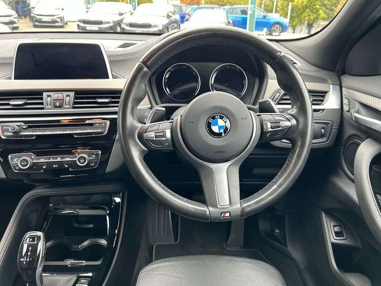 Automatic powered tailgate, Bluetooth hands free facility with USB audio interface, BMW Online services, BMW remote services, BMW Teleservices, Brake pad wear indicator in front and rear, Check Control warning system for monitoring of lights and door/luggage compartment open warning, Eco pro mode, Instrument cluster with black optic and 5.7" colour display + speedometer + tachometer + fuel gauge + instant fuel economy, Lights on warning by audio warning signal when ignition is switched off, On board computer - average speed+fuel consumption, service interval, clock/date, odometer/trip meter, outside temperature display and ice warning, Optimum shift indicator, Personal Profile, Real time traffic information, Speed limiter, TMC for lifetime of vehicle, 12V compressor with integrated sealant injection bottle and hose, Anti roll bar front and rear, Balancer shaft, Drive performance control with ECO PRO comfort + sport mode, Dual clutch sport automatic transmission, Electronic differential lock, Twin tube gas filled shock absorbers with degressive characteristic curve, 2x USB sockets in front, Bluetooth audio streaming, BMW professional radio with CD player, DAB Digital radio, Steering wheel mounted audio/telephone controls, Adjustable headlights, Automatically dimming rear view mirror, BMW badge on bonnet, tailgate with integrated tailgate release and C pillars, Body colour door handles, Body colour mirror caps, Body colour roof trims, Chrome kidney grille with black vertical slats, Clear lenses direction indicator lights, Direction indicator side lights integrated in exterior mirrors using LED technology, Door mirror integrated indicators, Dynamic brake lights, Electrically adjustable and heated door mirrors glass aspheric on driver's side and convex on passenger side, Fingertip control / anti-trap function on electric window, Front and rear bumper system, Front and rear electric windows, Frozen grey front air intakes, Green tinted heat protection glazing, Halogen headlights, Heated windscreen washer jets, High gloss black front side air intake with matt black insert, High gloss shadowline in mirror frame and B-Pillar trim, High level third brake light, LED front fog lights, LED headlights with extended contents - cornering, high beam assist, LED day running lights with dynamic beams-through for urban and motorway, Lightweight engineering, M logo designation in side chrome, M Sport X aerodynamic bodystyling, Manual headlight beam throw control, Model designation in left tailgate, Rain sensor with automatic headlight activation, Rear fog lights, Rear tail lights with LED technology and 3D design, Rear window aerial, Rear window wiper with wash/wipe function, Reversing light in rear light cluster, Satin aluminium in window frame, recess covers, mirror frame and C-Pillar trim, Shark fin antenna, Twin chrome exhaust tailpipes, Visible VIN plate, Welcome lighting, 40:20:40 manually split folding rear seat with two tilt positions for backrest, Anthracite headlining, Armrest in centre section of rear seat backrest and folding, Automatic two zone climate control air conditioning, Child seat ISOFIX attachment for two outer rear seats and front passenger seat with anchorage points, Conditioned based service, Driver + passenger vanity mirrors, Driver and front passenger seat heating, Driver/passenger sunvisors with ticket holders, Drivers folding storage compartment, Floor mats with contrasting stitching on dashboard and centre console, Front and rear door armrests, Front armrest, Front door sill finishers with M designation, Front sports seats, Gearshift paddles on steering wheel, Glovebox with light, Luggage compartment lighting, Luggage compartment loading edge with stainless steel insert, M Sport multifunction leather steering wheel, Rake/reach adjustable steering wheel, Retaining strap on the left side of the luggage compartment, Three rear headrests, Two cupholders in front and rear centre console, Extended storage pack - X2, M Sport X exterior styling pack - X2, 3 point seatbelts on all seats, front pyrotechnic belt tensioners, stopper and belt force limiters, rear coded belt buckles, Airbags - Front driver and passenger, front and rear head, front side, curtain head protection, Anti lock braking system (ABS) with brake assist, ASC - Active stability control, BMW emergency call, Brake drying, Brake energy regeneration, Braking readiness, Child proof locking system in rear door, Crash sensor activating central locking release with hazard warning lights and interior lighting + battery safety cut-off, Driver and front passenger seat belt security check, DSC - Dynamic Stability Control, Dynamic Traction Control - DTC, Electrically operated parking brake with automatic drive release, Electronic parking brake, Front passenger airbag deactivation, Front ventilated brake disc, Hill descent control, Hill start assist, Multi collision braking system, Rear brake discs, Side impact protection, Twin horns, Tyre pressure monitor, Warning triangle and first aid kit, Auto door lock when driving, Central locking switch for all doors, fuel filler cap and luggage compartment, Engine immobiliser, Incorrect fuel protection system, Locking wheel bolts, Remote control including integrated key with M specific highlight, Remote control Thatcham category 1 alarm, Start/stop button with comfort go keyless engine start and auto start stop deactivation button, Dash top finished in black with decorative stitching line on upper section, High gloss black centre console, Reduced rolling resistance tyres,