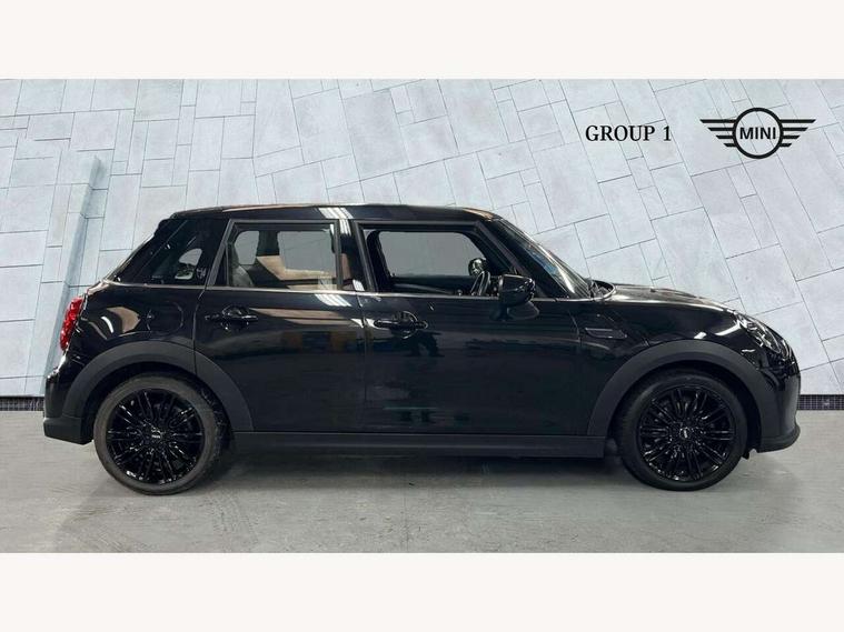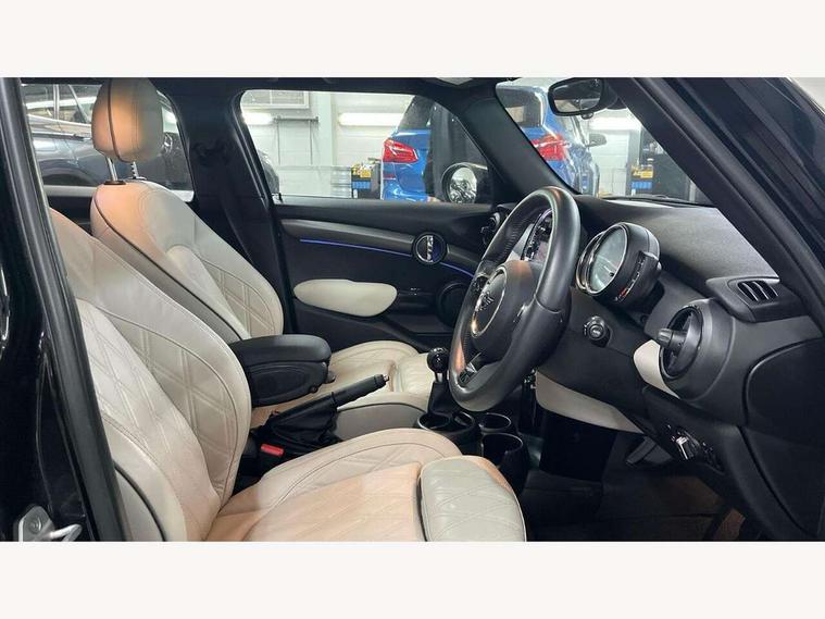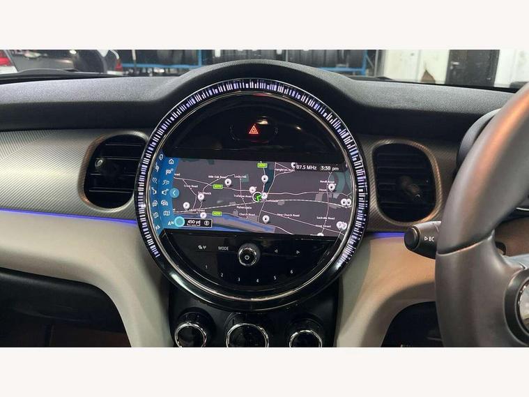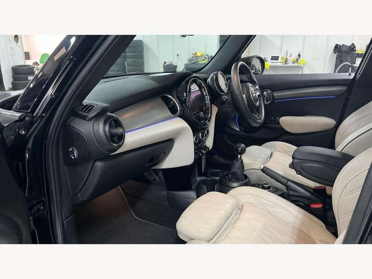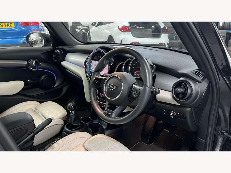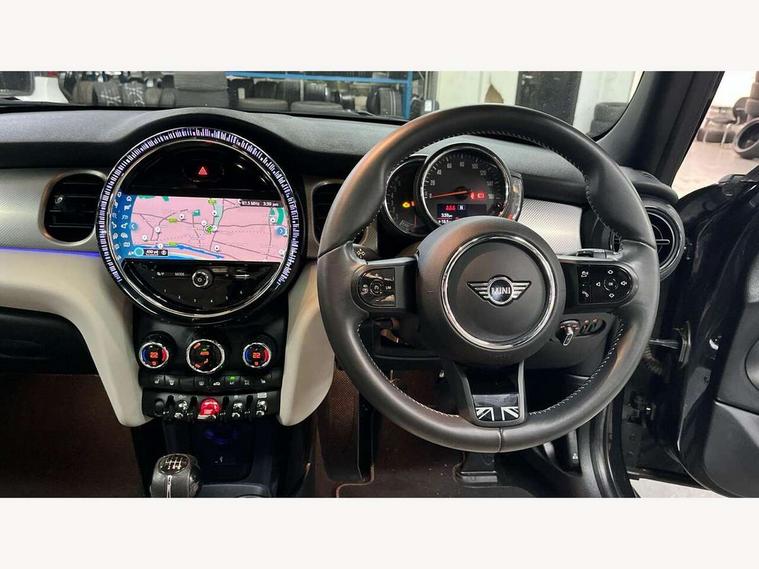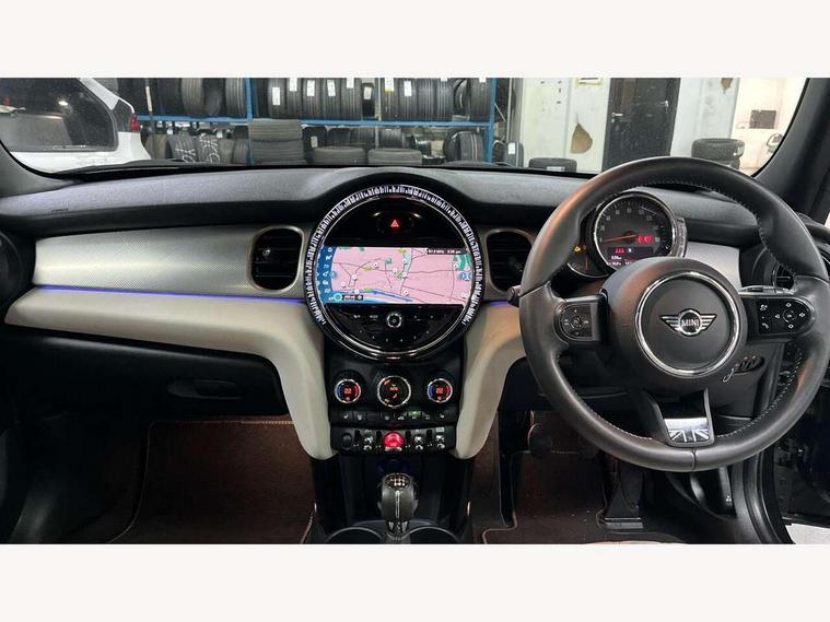 Apple CarPlay, Automatic start/stop function with brake energy recuperation, Compatible mobile phone bluetooth with audio streaming, Cruise control with brake assist, Electro-mechanical speed dependant steering assistance, Flexible car sharing preparation, Instrument cluster, MINI Driving Modes - centre toggle switch to control driving setting (sport, mid and green), Mini E-call, MINI TeleServices, On board computer, Rear park distance control, Service interval indicator, 6 Speed manual transmission including gear change indicator display, Double Vanos system, Fully variable valve control, High precision injection, Performance Control, 8.8" touchscreen with LED ring, FM tuner and DAB digital radio, 3rd brake light, Automatic headlight activation switch, Body colour fuel filler cap, Chrome line exterior - radiator grille bars, tailgate handle, lower front grille grating and rear central fog-light, Dynamic brake lights, Electric front+rear windows, Heated rear window, Heated windscreen washer jets, LED headlight with closed ring and daytime driving lights, Metal door sill strips with MINI imprint, Model logo Cooper on right of tailgate, Rain sensor window wipers, Rear fog lights, Rear LED lights with union jack design, Rear side wing doors, Rear window wiper, Side scuttle panel with integrated indicator, Sun/heat protection glass, White indicator lenses, 12V Accessory socket in centre console, 3 seat bench in 2nd row, 4 lashing eyes in luggage compartment, 60/40 split folding rear seat, Anthracite headliner including grab handles and clothes hooks, Carbon black colour line - Knee roll and door armrest, Chrome interior highlights, Chrome line interior - air vents, gear lever base, door handles and speakers in doors, Cupholders, Front and rear head restraints, Front and rear isofix with front passenger airbag deactivation, Front and rear velour floor mats, Glove compartment, Height and length steering column adjustment, Interior lighting with 12 different colours across the dashboard, underneath door bezel with illuminated laser-engraved design on central display, Leatherette gearshift lever and handbrake gaiters, LED reading lights, vanity mirror lights, front foot well light and spotlight on front seats, Manual air conditioning, Mechanical seat adjustment - forward/back & backrest for front seats and driver seat height adjust, MINI yours badge on exterior pillar, Multifunction steering wheel, Single front passenger seat, Storage compartments in doors, Sunvisors with vanity mirrors, Walknappa leather steering wheel with grey seam and MINI Yours badge on Piano Black lower steering wheel spoke, 3 point seatbelts on all five seats, 6 Airbags - front, side, head and seat belt tensioners, Anti-lock braking system (ABS), Child locks on rear doors, DSC - Dynamic Stability Control, Front and rear disc brakes, Hill start assist, Single tone fanfare horn, Tyre pressure monitoring system, Alarm system with tilt sensor, monitoring doors, bonnet interior and tailgate, Electronic vehicle immobiliser, Start/stop toggle with keyless go, Tool kit,