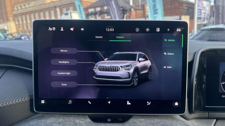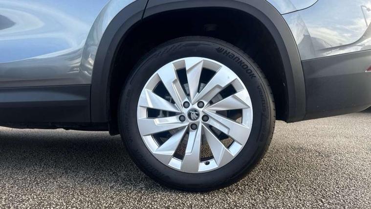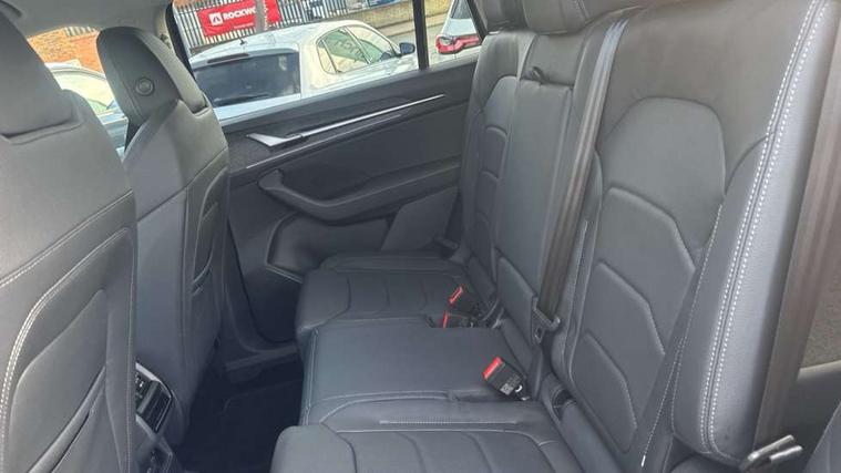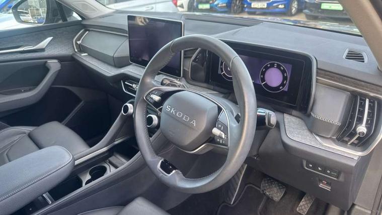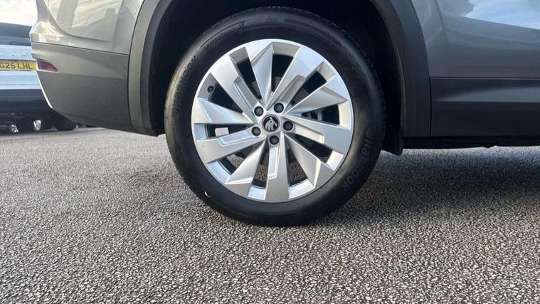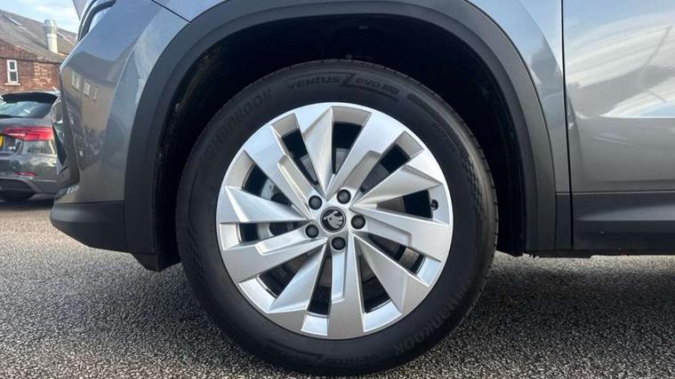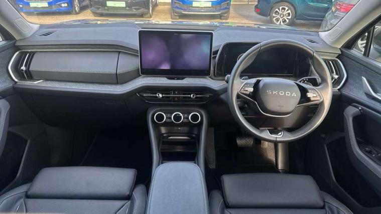 13" satellite navigation touchscreen display, Blind spot detection with door exit warning, Bluetooth system, ChatGPT functionality, Driver alert - Fatigue and drowsiness monitor, Dry display cleaner, Emergency call, Front and rear parking sensors, Front cross traffic assist, Lane assist, PAS, Rear traffic assist, Tailgate unlocking from outside, Traffic sign recognition, USB C Port x 2 in front centre console, Virtual Cockpit - 10.25" digital display, Voice control system, Wireless charging for two smartphones (15W) with cooling function, Wireless SmartLink for Apple CarPlay and Android Auto, Stop/start function, 2x USB-C in the rear, DAB Digital radio, Aero front windscreen wipers with intermittent function, Auto dimming rear view mirror, AWL (all weather lighting) and all weather light with cornering function, Black wheel arch surrounds, Body colour bumpers, Body colour door mirrors and handles, Cornering light and poor weather light, Electric folding /adjustable/separted heated/folding door mirrors, auto dimming with boarding sports and memory function, Electric front and rear windows, Exterior black decorative trims, Heat insulating glass in windshield, Heated rear window, Ice scraper in fuel tank cap, Invisible tailpipe, LED daytime running lights, LED third brake light in rear spoiler, Light assistant with automatic headlight control and coming home feature, Logo projection in door mirrors, Privacy glass, Rear roof spoiler, Rear side wing doors, Rear window wiper, Red decorative strip between rear LED lights, Safety reflectors on front and rear doors, Unique dark chrome design logo on alloy wheels, Window control switches with black trim, Windscreen wipers with rain sensor, Without engine designation, 1.5l bottle holder points in all door, 1x centre rear reading light, 2 seat bench in 3rd row, 3 configurable smart dials with 32mm coloured display, 3 seat bench in 2nd row, 4 foldable roof handles with rear coat hooks, Ambient interior lighting - Dashboard, front-door stowage compartments, front and rear door panels and footwell lighting, Automatic gear selector on steering column, Chrome interior door handles, Driver/front passenger reading lights, Fabric headlining, Fixed bench 40:60:40 split folding backrests, Front and rear floor mats, Front centre armrest with jumbo box storage compartment, cup holder and 12V socket, Height adjustable front headrests, Isofix child seat fittings in outer middle row rear seats and front passenger with top tether, Manually adjustable steering column, Pollen filter, Rear centre armrest with cupholders, Rear seat boot backrest release, Single front passenger seat, Skoda lettering on steering wheel, Storage pocket including mobile phone pockets on the backs of the front seats, Sunvisors with illuminated vanity mirrors, Three rear height adjustable headrests, Ticket holder on A Pillar, Tri zone climate control, Umbrella in door panel x1 made from sustainable materials, Upper and lower glovebox with card holder and coin compartment, USB C port by rear view mirror for charging only (15W), Exterior styling pack - Kodiaq, Auto door release and activation of warning lights in the event of an accident, Driver and front passenger airbag with knee airbag and front passenger airbag deactivation, Electric child locks, Electronic parking brake, ESC (incl. ABS+EMD+MSR+ASR+EDL+HBA+DSR+RBS+ESBS+MCB+TSA+XDS), Front assist with braking reaction to vehicles, pedestrians and cyclists, Front disc brakes, Fuel cut off safety device, Height adjustable front 3 point seatbelts + pretensioners, Hill hold assist, Junction assist with automatic emergency braking, Rear disc brakes, Safety vest holder in door, Seat belt reminder for all seats, Three point rear seat belts, Two tone horn, Tyre pressure monitor, Anti-theft wheel bolts, Immobiliser, Remote central locking with 2 keys,
