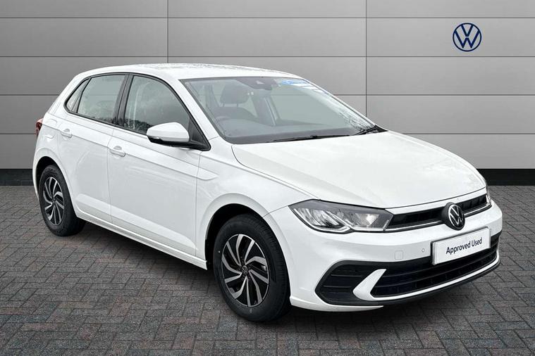 Adaptive cruise control without follow-to-stop and speed limiter, Bluetooth mobile phone interface, Driver alert system, Emergency call service, Front assist system, Power assisted speed sensitive steering, Preparation for We connect and We connect plus, Speedo and rev counter, electronic odometer, trip, service interval display and fuel gauge, Standard rear axle, Travel Assist - Lane keeping system and traffic jam assist, Travel assist including emergency assist, Trip computer, Warning signal and warning light for front and rear seatbelts not fastened, Washer fluid level indicator, Wireless app connect, Front wheel drive, Rear shock absorpion, Start-stop system with battery regeneration (recuperation - energy recovery during braking), DAB Digital radio, Diversity antenna for FM reception, Front and rear 6 speakers, Automatic dimming interior rear view mirror, Body colour bumpers, Body colour door handles, Body colour door mirrors, Electric front windows, Heat insulating darkened glass in side and rear windows, Heat insulating glass windscreen, Power folding adjustable/heated exterior mirrors and front passenger exterior mirror lowering function, Rain sensor, Rear electric windows, Rear fog light, Rear side wing doors, Rear windscreen washer and wiper with interval delay, Third brake light, 12V power socket in centre console, 2 front and 2 rear reading lights, 2 USB-C ports in the front, 2 USB-C charging sockets on the center console in the rear, 3 rear head restraints, 60/40 split folding rear seat and rear seat bench not split, Ceramique headliner, Chrome plated radiator grille inserts, air vent surrounds and light switch surrounds, Door and side trim panel, Driver and front passenger seat height adjustment, Driver/passenger sunvisors with illuminated vanity mirrors, Front centre armrest, Front seat backrest storage pockets, Front standard seats, Handbrake lever handle in leather, Hartley/Thomas cloth upholstery, Isofix child seat preparation easy-fit (for two outer rear seats, and front passenger seat) compatible with I-size, Leather trimmed gear knob, Luggage compartment cover, Luggage compartment floor, Luggage compartment lighting, Multifunction steering wheel, Single front passenger seat, Standard pedal cluster, Light and vision pack - Polo, 3 point height adj front seatbelts + pretensioners, 3x3 point rear seatbelts, ABS, Driver and front passenger airbag with front passenger airbag deactivation, Drivers and front passengers safety optimised head restraints, ESC (Electronic stability control) + EDL (Electronic Differntial lock) and ASR (Traction control), Extended and predictive pedestrian/ cyclist protection, Front curtain and side airbags with center airbag, Front disc brakes, Hill hold control, Manual child lock in rear doors, Rear drum brakes, Single tone horn, Tyre pressure loss indicator, Alarm with interior protection, Anti-theft alarm system with interior monitoring, backup horn, and towing protection, Anti-theft wheel bolts, Electronic engine immobiliser, Lava stone black gloss/matt decorative inserts in dash and front door panels, Low rolling resistance tyres,