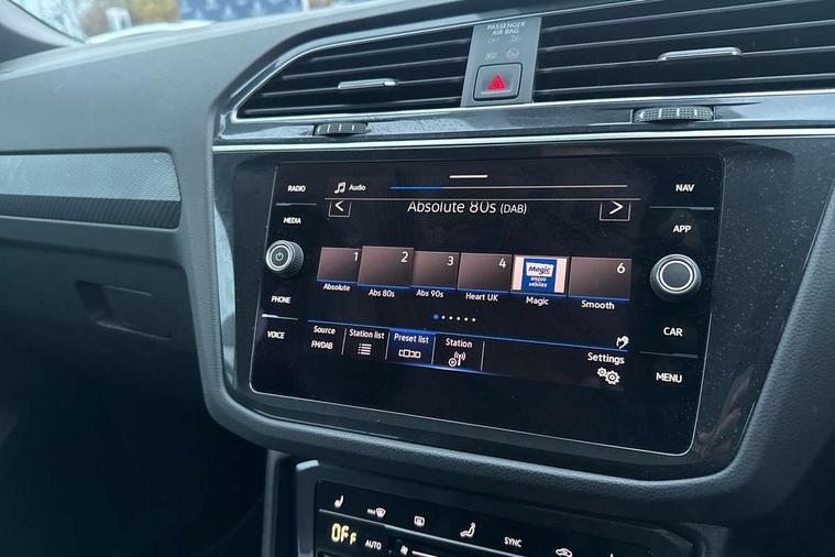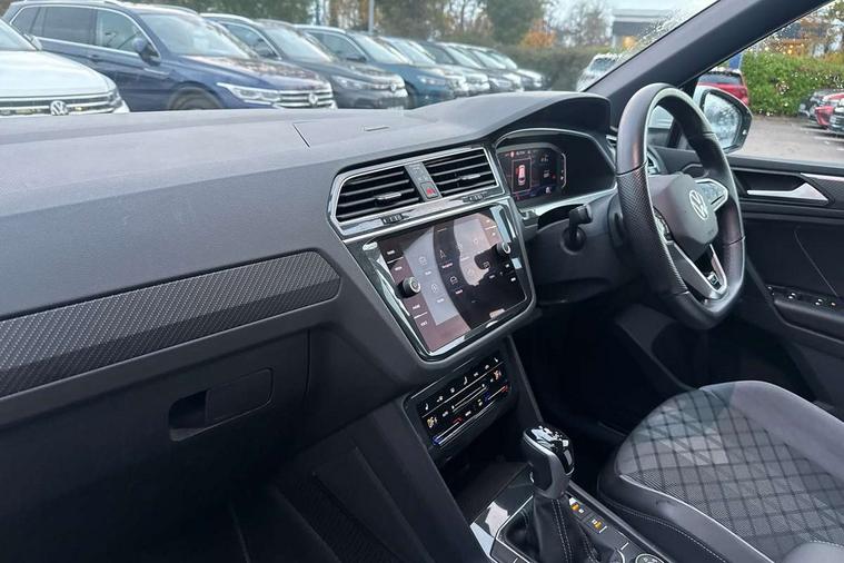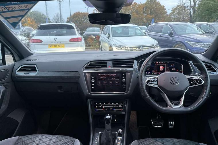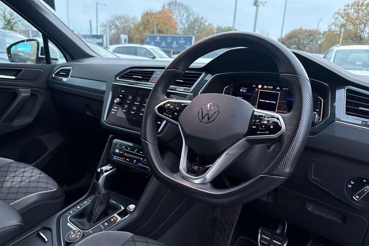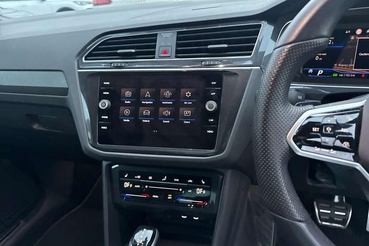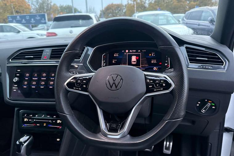 Adaptive cruise control ACC stop and go including speed limiter, App-Connect incl. App-Connect Wireless for Apple CarPlay and Android Auto, Bluetooth phone integration system, Distance control assist, Driver alert system, Driver profile selection, Dynamic road sign display, eCall emergency call system, Electromechanical speed sensitive power steering, Engine start/stop button, Lane keeping system Lane Assist, Lights on warning, Multifunction front facing camera, Outside temperature display, Premium multifunction display with multi colour display, Remote control boot opening, Rev counter, Revision / skills operating concept travel assistant, Service interval indicator, Speed limit display, Start/stop system with regenerative braking, Trip computer, Warning sound and light for doors and tailgate open, All wheel drive - 4Motion, Battery regeneration during braking, XDS electronic differential lock for improved traction and handling, 4 X 20 watt output, 8 Speakers, Diversity antenna for FM reception, Radio, SD card slot, Simultaneous pairing of 2 compatible mobile devices, SMS functionality - read, compose and send SMS messages using touch-screen display, Title and cover art display, USB C ports, Auto dimming interior rear view mirror, Automatic headlight control system, Body colour door handles, Chrome moldings on the side windows, Coming/leaving home lighting function, Dynamic headlight range control, Front and rear electric windows, Heated rear window, High level 3rd brake light, Laminated safety glass windshield, heat and sound insulating, LED headlamps with LED separate daytime running light and dynamic cornering light, LED rear combination lamps, LED rear number plate lights, License plate carrier in front and rear, Poor weather light and cornering light, R Line body kit, R Line side sills, Rain sensor windscreen wipers, Rear exhaust tailpipe, Rear fog lamp, Rear side wing doors, Rear spoiler in R style, Rear windscreen washer and wiper with interval delay, Side and rear windows in heat insulating glass, Trailer Stability Programme, Unique R Line badging, Windscreen wipers/ intermittent wipe + 4 position delay, 12V outlet in center console rear and in luggage compartment, 12V outlet in front and tray, 2 cup holders in front, 2 LED front reading lights, 2 LED rear reading lights, 3 bench rear seats in 2nd row, 3 rear headrests, 4 load lashing points, 40:20:40 split folding rear seats, Air Care Climatronic 3 zone automatic climate control with enhanced air filter and controls in the rear, Backrest release for left front seat, Black headlining, Brushed stainless steel pedals and footrest, Carpet mats in front and rear with decorative stitching in Gray, Climate control unit rear with touch function, Door and side trim panel in foam film, insert in leatherette, Front centre armrest, Front footwell illumination, Front seats head restraints (x-adjustment), Height adjustable front seats, Height/reach adjust steering wheel, Instrument lighting white adjustable panel illumination, Interior light with delay, Isofix Preparation 2 Rear child seats, Leather gear knob, Lockable cooled glovebox, Luggage compartment lighting, Luggage net, Rear bench seat asymetrically split folding, longitudinally movable and folding with load-through hatch and center armrest, Remote unlocking for rear seat backrest, Removable luggage cover, Removable rear headrests, Safety optimised front head restraints, Single front passenger seat, Sliding/reclining rear seats, Standard rear seat release, Storage compartment in driver's door, Storage compartment in passenger's door, Storage compartment in rear doors, Storage compartments in luggage area left and right, Storage tray on dashboard, Sun visors with illuminated vanity mirrors, Top front comfort seats, Variable boot floor, height adjustable and removable, Driver assistance pack plus - Tiguan DSG, 3 point seat belt for centre rear seats, 3 point seat belts with seat belt pretensioners for the outer rear seats, Active bonnet, Curtain airbags for front and rear passengers, Driver/Front Passenger airbags, Drivers knee airbag, Electronic parking brake with auto hold, Electronic Stability Control with driver steering recommendation, ABS, ASR, EDL, EDTC and trailer stabilization, Front assist with autonomous emergency braking (for Adaptive Cruise Control ACC up to 130 mph), Front disc brakes, Front passenger airbag deactivation, Front side airbags, Height adjustable front 3 point seatbelts + pretensioners, Hill hold control, Manual child proof rear door locks, Pedestrian monitoring system, Power assisted brakes, Proactive passenger protection system in combination with front assist, Rear disc brakes, Rigid safety cell with front and rear crumple zones, Two tone horn, Warning sound and light for front seat belts if unfastened, Anti theft alarm system with interior monitoring, backup horn and towing protection, Anti theft wheel bolts, Electronic engine immobiliser, Tool kit,