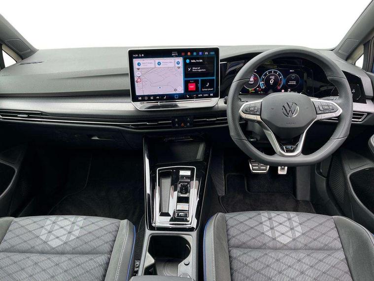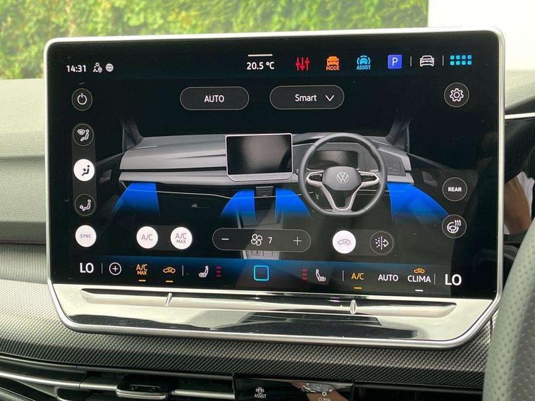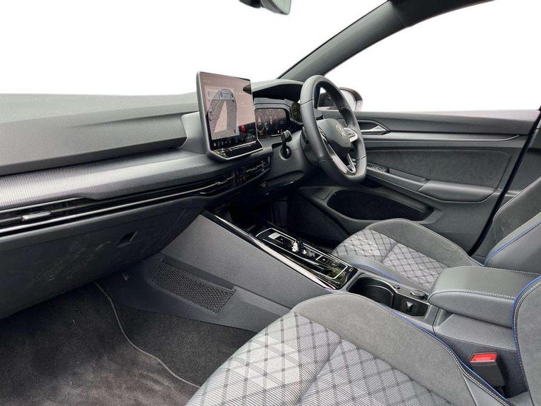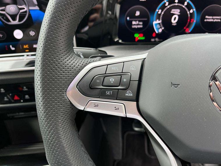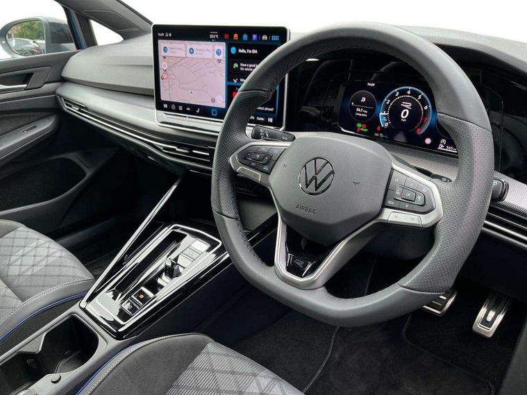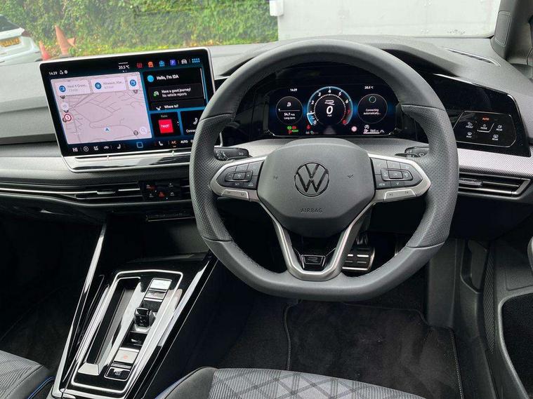 Activated carbon canister, Adaptive cruise control (ACC), Advanced driver attention and drowsiness monitor, Dynamic road sign display, Dynamic steering, E-Sim card for online connectivity, eCall emergency call system, Emergency assist, Lane keeping system Lane Assist, Multi-color Digital cockpit pro, selection of different info profile possible, Multifunction front facing camera for distance control, Navigation system, Oncoming vehicle braking when turning including swerve support, Preparation for light assist system, Speed limiter, Speedo, rev counter, electronic odometer, trip, service interval display, exterior temperature and fuel gauge, Traffic jam assist, Voice enhancer and voice control, Warning signal and warning light for front and rear seatbelts not fastened, We connect plus preparation, We connect preparation, Wireless app connect, Hybrid propulsion system, Petrol Particulate Filter, Start-stop system with battery regeneration (recuperation - energy recovery during braking), XDS electronic differential lock for improved traction and handling, 2 USB C ports in front, 2 USB charging sockets on the centre console in the rear charging capacity upto 45W, Comfort telephony + wireless charging, without wireless aerial connection, Digital radio reception (DAB), Diversity antenna for FM reception, Gaming platform via car app, Infotainment system with 12.9" display, Mobile phone interface with inductive charging feature, 3rd brake light, Auto dimming rear view mirror, Auto headlights, Automatic headlamp activation with Coming home and Leaving home feature, Body colored bumpers in R-Line style, Body colour door handles, Exterior mirrors convex on the left and aspherical on the right, Front and rear electric windows, Heat insulating windshield made of laminated glass, LED daytime running lights, Rain sensor, Rear exhaust tailpipe, Rear fog light on one side and reversing lights on both sides, Rear side wing doors, Rear windscreen washer and wiper with interval delay, Remote electrically foldable door mirrors, puddle lights and reverse activated passenger's door mirror, Volkswagen logo in front, illuminated lighting animation with wake up/goodbye scenario and illuminated door handles, Welcome light with surround lighting, 12V socket in front centre console, 12V socket in luggage compartment, 3 rear head restraints, 3 seat bench in 2nd row, Ambient lighting with 30 colour including LED light unit in front footwell with selectable light colour, Brushed stainless steel pedals, Carpet mats, front and rear, Chrome plated radiator grille inserts, air vent surrounds and light switch surrounds, Front centre armrest, Front seat lumbar support adjuster, Heated front seats, Integrated front head restraints, ISOFIX anchors for child seats on outer rear bench seats and on front passanger seat compatible for i-Size, Luggage compartment lighting, Manual height adjustable front seats, Plastic gear knob, Premium sports seats in front, Rear cupholder and loadthough, Sardegna cloth upholstery with front and outer rear seats Art Velour inner sides of bolsters, Single front passenger seat, Soul black instrument panel, Split folding backrest with centre armrest and unsplit rear seat bench, Storm grey roof lining, Sun visors with illuminated vanity mirrors, Black exterior Styling package with Matrix LED headlights - Golf, Winter package - Golf DSG Estate/Hatchback, 3 point height adj front seatbelts + pretensioners, 3 rear three point seatbelts, ABS, Autonomous emergency braking front assist with pedestrian and cyclist monitoring, Child locks on rear doors, Driver and front passenger airbag with front passenger airbag deactivation, Electronic parking brake with auto hold, ESC (Electronic Stability Control), Extended pedestrian protection measures, Hill start assist, Rear disc brakes, Two tone horn, Tyre pressure loss indicator, Volkswagen roadside assistance, Anti theft wheel bolts, Preparation for alcohol interlock, Decorative inserts carbon grey for dashboard and front door trim panels, 18" Leeds alloy wheels,
