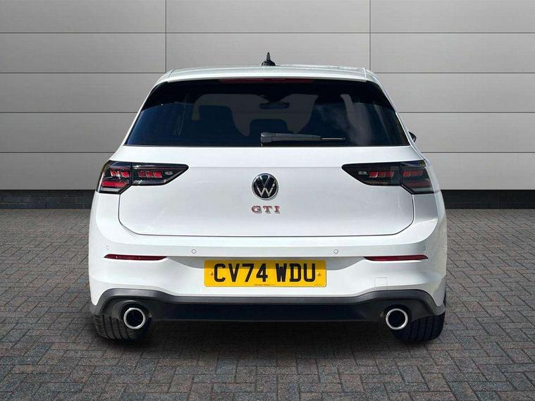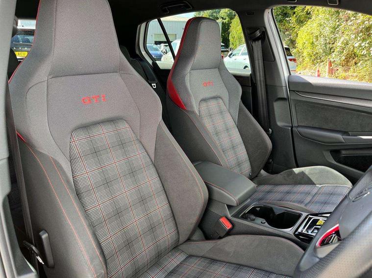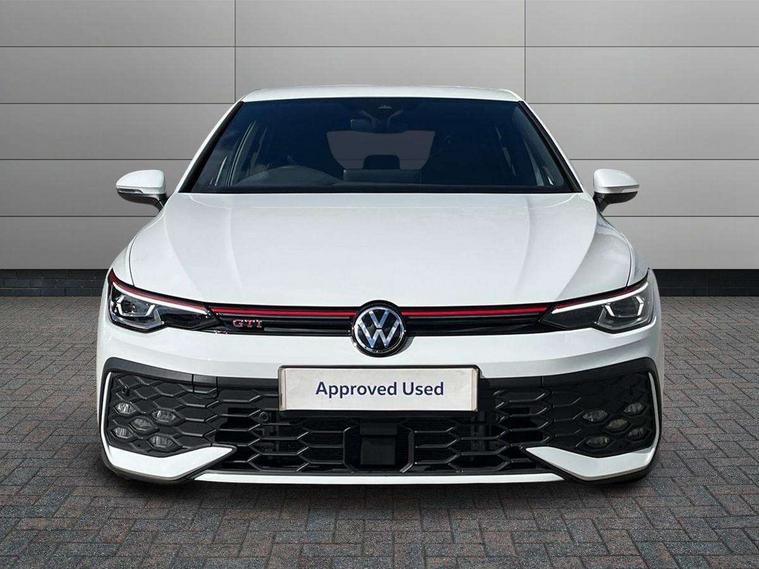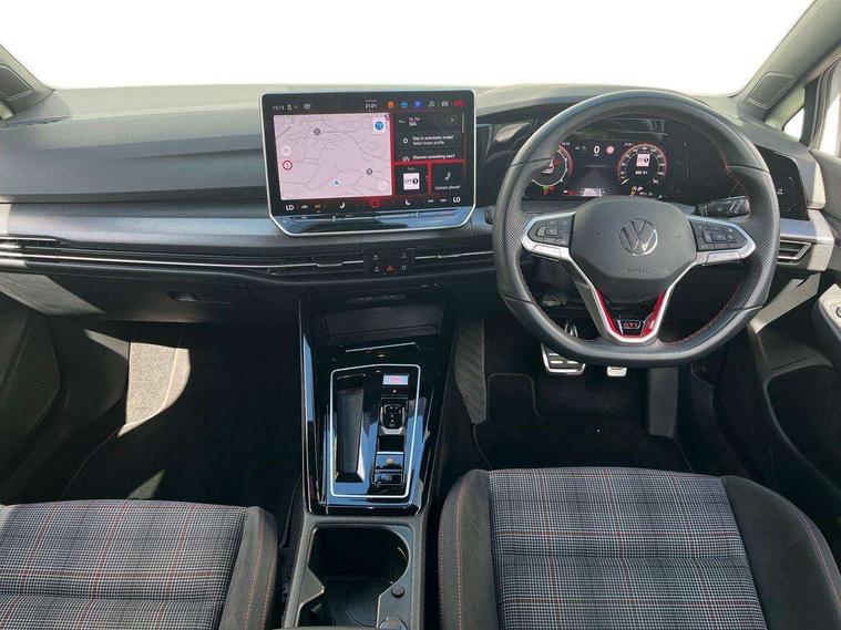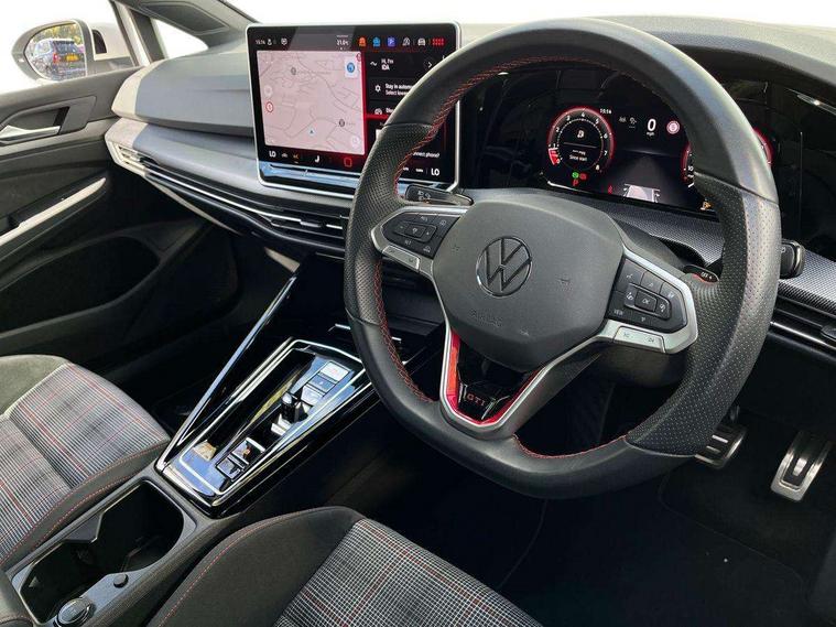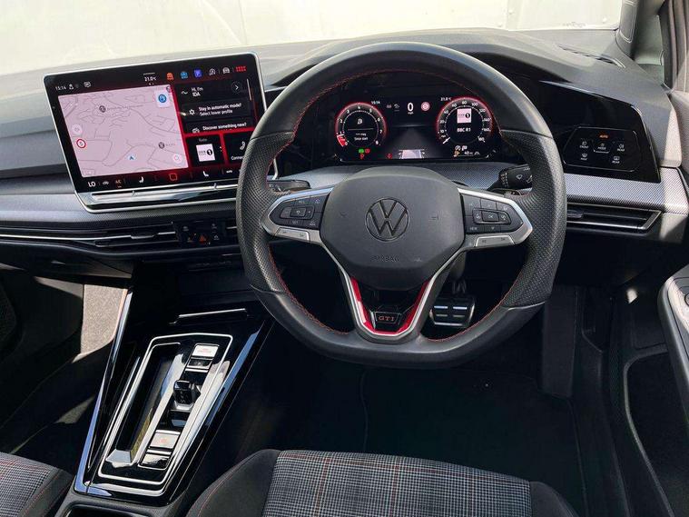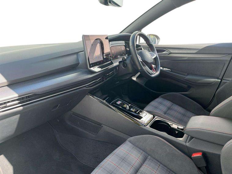 Activated carbon canister, Adaptive cruise control (ACC) with speed limiter and front assist (reacting to vehicles pedestrians and cyclists), Advanced driver attention and drowsiness monitor, Driver alert system, Driving profile selection and conventional shock absorber, Dynamic road sign display, Dynamic steering, E-Sim card for online connectivity, eCall emergency call system, Front and rear parking sensors, Lane assist, traffic jam assist and emergency assist, Multi-color Digital cockpit pro, selection of different info profile possible, Multifunction camera for distance control, Navigation system, Oncoming vehicle braking when turning including swerve support, Power assisted speed sensitive steering, Preparation for light assist system, Side assist blind spot lane change system, rear traffic alert and exit warning system, Speedo, rev counter, electronic odometer, trip, service interval display, exterior temperature and fuel gauge, Voice assistant and voice enhancer with chat GPT, Warning signal and warning light for front and rear seatbelts not fastened, We connect plus preparation, We connect preparation, Wireless app connect, Front stabilizer bars, Petrol Particulate Filter, Sports suspension, Start-stop system with battery regeneration (recuperation - energy recovery during braking), XDS electronic differential lock for improved traction and handling, 2 USB C ports in front, 2 USB charging sockets on the centre console in the rear charging capacity upto 45W, Comfort telephony + wireless charging, without wireless aerial connection, Digital radio reception (DAB), Diversity antenna for FM reception, Infotainment system with 12.9" display, 3rd brake light, Auto dimming rear view mirror, Body colour door handles, Body coloured bumpers, air intake in honeycomb structure, Chrome plated radiator grille inserts and light switch surrounds, Exterior ambient lighting with illuminated lighting animation and wake up/goodbye scenario, Exterior mirrors convex on the left and aspherical on the right, Front and rear electric windows, Front fog lamps and cornering light, Heat insulating windshield made of laminated glass, Illumination Volkswagen logo, Iluminated lighting animation with wake up/goodbye scenario and illuminated door handles, LED daytime running lights, Nameplate 'GTI' set, Rain sensor, Rear exhaust tailpipe, Rear fog light on one side and reversing lights on both sides, Rear side wing doors, Rear windscreen washer and wiper with interval delay, Remote electrically foldable door mirrors, puddle lights and reverse activated passenger's door mirror, Welcome light with surround lighting, 12V socket in front centre console, 12V socket in luggage compartment, 3 rear head restraints, 3 seat bench in 2nd row, Air care climatronic 3 Zone automatic climate control with rear air conditioning control panel, Aluminium gearshift handle, Ambient lighting with 30 colour including LED light unit in front footwell with selectable light colour, Brushed stainless steel pedals, Carpet mats, front and rear, Front centre armrest, Front passenger seat, Front sports seats, ISOFIX anchors for child seats on outer rear bench seats and on front passanger seat compatible for i-Size, Luggage compartment lighting, Rear cupholder and loadthough, Soul black instrument panel, Split folding backrest with centre armrest and unsplit rear seat bench, Storm grey roof lining, Sun visors with illuminated vanity mirrors, 3 point height adj front seatbelts + pretensioners, 3 rear three point seatbelts, ABS, Autonomous emergency braking front assist with pedestrian and cyclist monitoring, Child locks on rear doors, Driver and front passenger airbag with front passenger airbag deactivation, Electronic parking brake with auto hold, ESC (Electronic Stability Control), Proactive passenger protection system, Rear disc brakes, Two tone horn, Tyre pressure monitoring system, Volkswagen roadside assistance, Alarm with interior protection, Anti theft wheel bolts, Keyless locking and starting system keyless accesss with SAFELOCK, Preparation for alcohol interlock, Decorative inserts carbon grey for dashboard and front door trim panels,