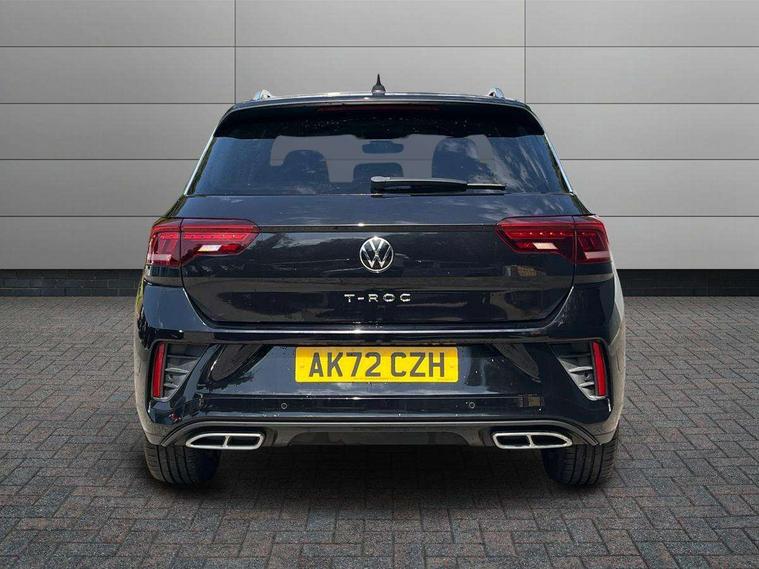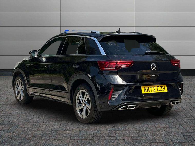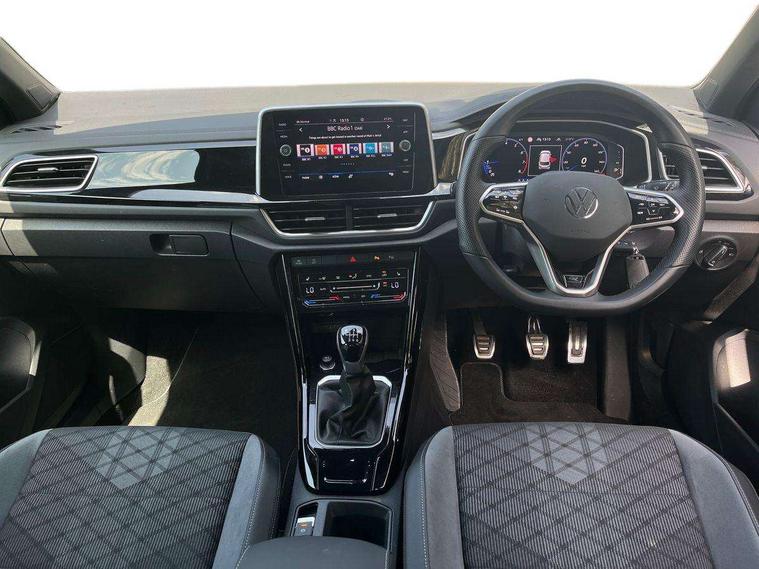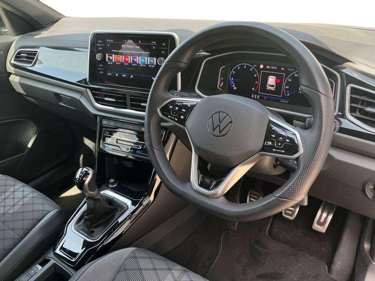 10.25" Digital cockpit pro, Bluetooth mobile phone interface, Driver alert system with fatigue detection, Driver tips and journey analysis, Emergency call service, Lane keeping system Lane Assist, Modified key software - reduce switch off time for key status change to Long no motion, Online services, Park assist including front and rear parking sensors, Service interval indicator, Tailgate/trunk lid release from outside, Think blue trainer driver tips and journey analysis, Warning sound and light for front seatbelts unfastened, Wireless app connect, Battery regeneration during braking, Start/stop function with battery regeneration, Diversity antenna for FM reception, Front and rear 6 speakers, Music playback - MP3, WMA and AAC files, Premium USB cable in choice of either Apple or Android smartphone compatibility, SD card slot, Simultaneous pairing of 2 compatible mobile devices, Title and cover art display, We Connect and We Connect Plus functionality, 3rd brake light, Auto dimming interior rear view mirror, Automatic hazard lights activation under emergency braking, Automatic headlight control with LED separate daytime running lights with coming/leaving home function, Extended roof spoiler, Exterior mirrors aspherical on driver side, convex on front passenger side, External USB type C socket and charging sockets, Front windscreen wiper with intermittent wipe and 4 position delay, Heated rear window, LED Plus headlamps, LED rear combination lamps, LED rear number plate lights, LED tail lamp rear comination lamps, Power windows with comfort operation and circuit breaker, R-Line design body coloured bumpers, Rain sensor, Rear exhaust tailpipe, Rear fog light on one side and reversing lights on both sides, Rear side wing doors, Rear wash/wipe with intermittent wipe setting, Remote electrically foldable door mirrors, puddle lights and reverse activated passenger's door mirror, 12V power socket in centre console, 3 rear head restraints, 3 seat bench in 2nd row, 4 load lashing points in luggage compartment, Air care climatronic air conditoning system with active combination filter and 2-zone temperature control, Black roof lining, Chrome plated radiator grille inserts, air vent surrounds and light switch surrounds, Door and side trim panel with leatherette insert, Drawer under drivers seat, Front + rear carpet mats, Front centre armrest, Front cupholders x 2, Front footwell illumination, Front reading light, Front scuff plates with R logo, Instrument lighting, white adjustable panel illumination, Interior ambient lighting and surround lighting, Interior light delay, Isofix child seat preparation, Leather gearshift handle, Load-through provision with cup holder when folded down ('Unsplit rear seat bench, split folding backrest, with centre armrest), Luggage compartment lighting, Single front passenger seat, Stainless steel pedals, Storage compartment in left and right luggage area, Storage compartment in rear doors, Storage compartments in driver and front passenger doors, Sunvisors with illuminated vanity mirrors, Variable boot floor, height adjustable and removable, Driver assistance pack without proactive passenger protection - T-Roc, 3 point height adj front seatbelts + pretensioners, 3 point seatbelts in outer rear with ECE label, ABS, Child locks on rear doors, Driver and front passenger airbag with front passenger airbag deactivation, Driver and front passenger safety-optimised head restraints, Drivers seatbelt reminder, Electronic parking brake, Electronic Stability Control (ESC) inc EDL (Electronic Differential Lock) and ASR (Traction Control), Front and rear passengers curtain airbag system including front side airbags, Front assist with city emergency braking and pedestrian monitoring, Front seat side impact airbags, Hill start assist, Predictive pedestrian protection, Rear disc brakes, Single tone horn, Tyre pressure loss indicator, Volkswagen roadside assistance, Alarm with interior protection, Anti-theft alarm system with interior monitoring, backup horn, and towing protection, Remote central locking with SAFELOCK, radio remote control with 2 remote control folding keys, Trims for alloy wheels,