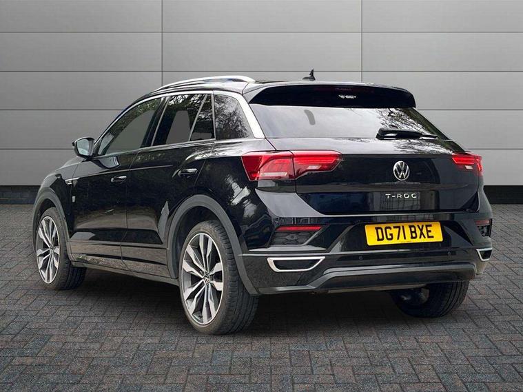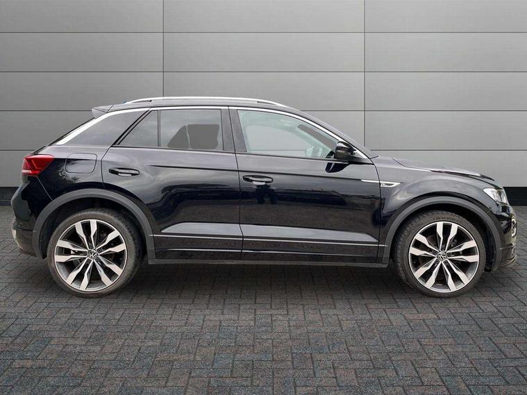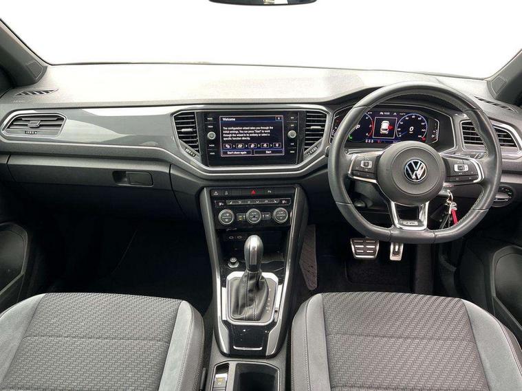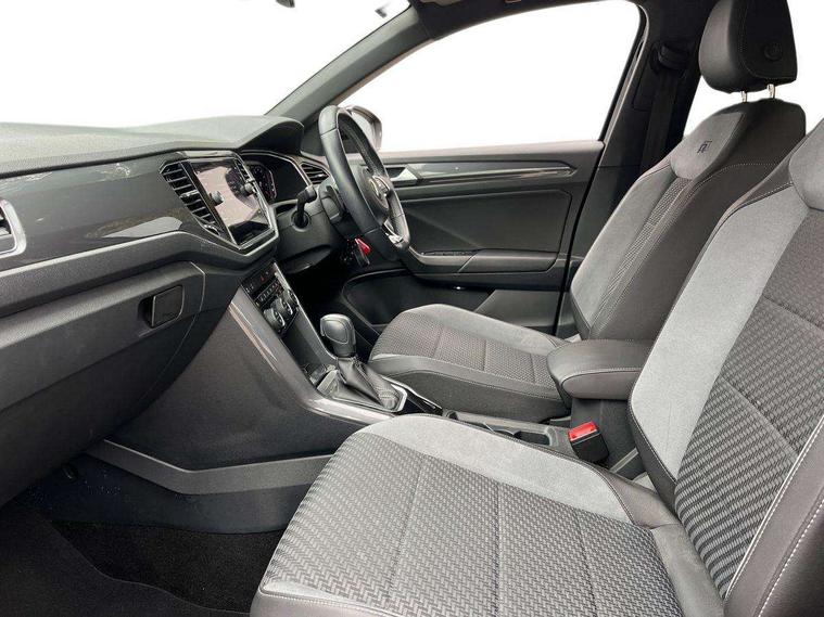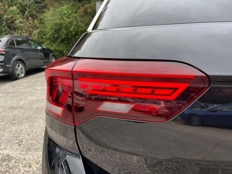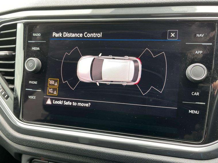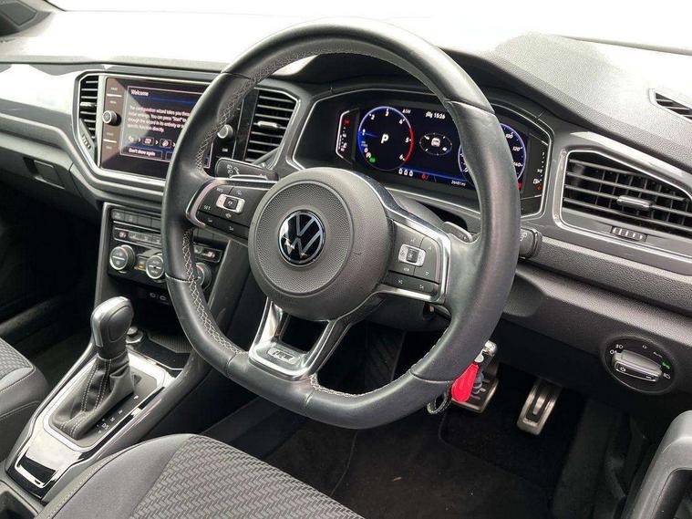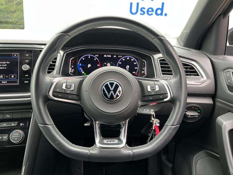 'Lights On' Reminder warning buzzer, Adaptive cruise control, Bluetooth telephone and audio connection for compatible devices, Car information display, Digital Cockpit Pro - Active info display, Driver alert system with audible and visual fatigue detection system, Driver tips and journey analysis, Dusk sensor, Emergency call service, Lane assist with warning text instrument cluster, Modified key software - reduce switch off time for key status change to Long no motion, Multifunction camera, Multifunction computer with visual gear change recommendation for fuel consumption, Navigation system discover media including streaming and internet, Service interval indicator, Think blue trainer driver tips and journey analysis, Traffic sign recognition, Voice activation, Warning sound and light for front seatbelts unfastened, Wireless app connect for apple carPlay, Battery regeneration during braking, Misfuel prevention device for diesel engine, Rear shock absorption for sports version, Start/stop function with battery regeneration, DAB Digital radio, Disk brakes in front, Diversity antenna for FM reception, Music playback - MP3, WMA and AAC files, Premium USB cable in choice of either Apple or Android smartphone compatibility, SD card slot, Simultaneous pairing of 2 compatible mobile devices, SMS functionality - read, compose and send SMS messages using touch-screen display, Storage compartment with longitudinal and height adjustable in armrest and two rear air vents, Three route options - Fast, Short, Eco, Title and cover art display, USB-C Interface and USB charging socket, Auto dimming interior rear view mirror, Automatic coming/leaving home lighting function and daytime running lights, Automatic hazard lights activation under emergency braking, Black grained lower door protectors, Body colored door lower parts, Body colour door handles, Body colour rear roof spoiler, Chrome effect left and right trapezoid exhaust tailpipe fascia surround, Chrome plated moldings, Chrome plated radiator grille inserts, air vent surrounds and light switch surrounds, Chrome trim on upper and lower radiator grille, Dynamic headlight range control with self adjusting whilst driving, Electrically foldable, adjustable and heated door mirrors with puddle lights and reverse activated kerb-view adjustment on passenger's door mirror, External USB type C socket and charging sockets, Front and rear electric windows, Front fog lights with static cornering function, Front windscreen wiper with intermittent wipe and 4 position delay, Fully galvanised body, Heated rear window, Heated windscreen washer jets, High level 3rd brake light, LED darkened rear light clusters, LED headlamps with automatic range adjustment and unique signature LED separate daytime running lights, LED rear number plate lights, LED tail lamp rear comination lamps, Privacy glass, R-Line design body coloured bumpers, Rain sensor, Rear tinted glass from B-pillar backwards approx 65% tinted, Rear wash/wipe with intermittent wipe setting, Silver anodised roof rails, Volkswagen roundel, 12V socket in centre console storage area, 3 rear head restraints, 4 load lashing points in luggage compartment, Aluminium pedals, Black roof lining and sun visors, Branded points of interest, Carbon flag cloth upholstery, Climate control - 2 zone electronic air conditioning with automatic air recirculation and allergy filter, Door and side trim panel, Door and side trim panel in foam film, insert in leatherette, Drawer under drivers seat, Front + rear carpet mats, Front centre armrest, Front cupholders x 2, Front seat back storage pockets, Front sports seats with R-Line logo on seat backrest, Glovebox, Heated front seats, Height adjustable front seats, Height/reach adjust steering wheel, Instrument lighting, white adjustable panel illumination, Interior light delay, Interior light in footwell, Isofix easy fit child seat preparation for 2 outer rear seats, Leather gearshift knob, Leather multi function sport steering wheel with gear change selection via paddle shift on steering wheel, LED interior light with switch off delay/dimmer and 2 front/rear LED reading lights, Load through provision with single cup holder when folded down, Luggage compartment cover, removable, Luggage compartment lighting, R Line badge, Scuff plates in door apertures, Split folding rear seat backrests with centre armrest, Stainless steel pedals, Storage compartment in left and right luggage area, Storage compartment in rear doors, Storage compartments in driver and front passenger doors, Sunvisors with illuminated vanity mirrors, Unique R Line door sill protectors, White ambient lighting, R line styling pack - T-Roc, Winter pack - T-Roc, 3 rear three point seatbelts, ABS, Curtain airbags, Driver and front passenger safety-optimised head restraints, Drivers and front passengers airbags with passengers deactivation switch, Drivers seatbelt reminder, Electronic parking brake with auto hold, Electronic stability control (ESC) includes ASR, EDL, EDTC and trailer stabilisation function, Front assist with city emergency braking and pedestrian monitoring, Front seat side impact airbags, Hill start assist, Predictive pedestrian protection, Rigid safety cell with front and rear crumple zones, Single tone horn, Three point height adjust front seatbelts + pretensioners, Tyre pressure loss indicator, Ventilated front and rear disc brakes, Volkswagen roadside assistance, Alarm with remote central locking and interior protection, Electronic engine immobiliser, Remote central locking with SAFELOCK, radio remote control with 2 remote control folding keys, Shadow grey decorative inserts in dash, centre console and door panel, 19" Suzuka alloy wheels with low rolling resistance tyres and anti wheel bolts,