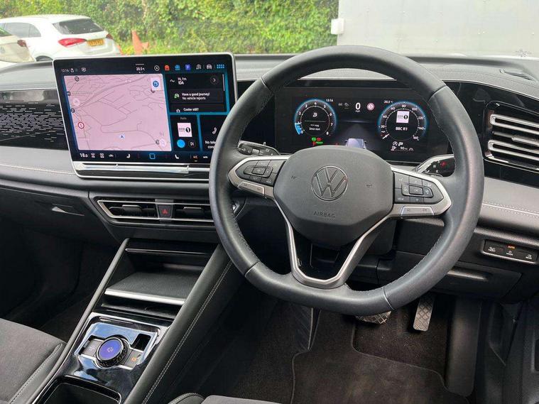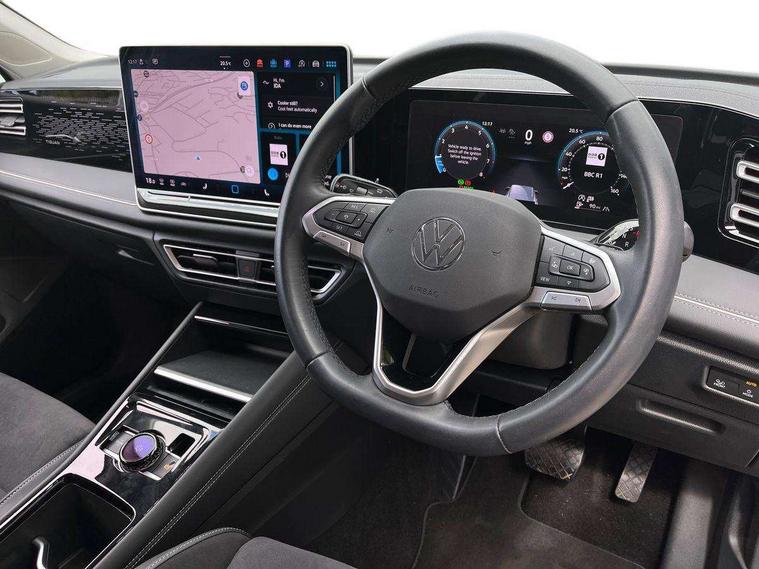 Adaptive cruise control ACC including speed limiter, Advanced driver attention and drowsiness monitor, App-Connect incl. App-Connect Wireless for Apple CarPlay and Android Auto, Area view camera [PAV], Bluetooth phone integration system, Comfort drive travel assist, Digital Cockpit Pro - 10.25" high resolution dash display screen with customisable menus and information, Dynamic road sign display, E-Sim card for online connectivity, eCall emergency call service, eCall emergency call system, Extended safety system (proactive passenger protection system), Full electric tailgate operation, Head up Display, Inductive smartphone charging without external antenna connection, Lane change system, Side assist, Rear traffic alert and Exit warning system, Lane keeping system Lane Assist, Multifunction front facing camera, Navigation system, Oncoming vehicle braking when turning including swerve support, Park assistance plus with front and rear parking sensors, Power assisted steering with speed sensitive, Rear view camera, Rev counter, Service interval indicator, Speed limit display, Start/stop system with regenerative braking, Trip computer, Voice control and enhancer, Warning signal and warning light for front and rear seatbelts not fastened, Wireless App-Connect, Front wheel drive, 15" Infotainment display, 8 Speakers, DAB radio, Diversity antenna for FM reception, Ambient lighting with logo projection, Auto dimming interior rear view mirror, Automatic headlight control system, Body colored bumpers in R-Line style, Body colour door handles, Body coloured door mirrors with integrated indicators, Chrome moldings on the side windows, Coming/leaving home lighting function, Dynamic headlight range control with dynamic cornering light, Exterior mirrors power folding, auto-dimming on drivers side with surround lighting and memory feature, Front and rear electric windows, Heat insulating darkened glass in side and rear windows, Heated windscreen washer jets, High Beam Assist, automatic sensing for switching between dipped and main beam, High level 3rd brake light, High-resolution matrix beam plus digital projection, Highway light, Illuminated door handle recesses, Illuminated lightline between headlamps and illuminated door handle recesses, IQ.Light - HD matrix headlamps with poor weather light, entry and exit lighting, Laminated safety glass from B-pillar backwards 90% tinted, Laminated safety glass windshield, heat and sound insulating, LED rear lights with welcome farewell lights with illuminated Volkswagen Logo, LED separate daytime running light, Rear fog light on one side, reversing light on both sides, Rear side wing doors, Rear wiper, Remote electrically foldable door mirrors, puddle lights and reverse activated passenger's door mirror, Silver roof rails, 12V outlet in center console rear and in luggage compartment, 12V socket in centre console, 2 USB-C ports in the front, 2 USB-C charging sockets on the centre console in rear, charging capacity up to 45 W, 3 bench rear seats in 2nd row, 3 rear headrests, 30 colours options interior ambient lighting, Air Care Climatronic 3 zone automatic climate control with enhanced air filter and controls in the rear, Carpet mats, front and rear, Centre console with illuminated storage compartment with sliding cover and two drinks holders, Door and side trim panel with leatherette insert, Door sill protectors, Drivers seat with manual adjustment of seat travel and height and backrest angle with thigh support longitudinally sliding, Front centre armrest, Front massage seats, Front sports comfort seats, Heated front seats, Heated steering wheel, Height adjustable front seats, ISOFIX anchors for child seats on outer rear seats and front passenger seat compatible with i-Size, Leather wrapped multifunction steering wheel with paddle shift, Mechanical rear seat release, Power adjustable lumbar support in front, Rear bench seat asymetrically split folding, longitudinally movable and folding with load-through hatch and center armrest, Safety optimised front head restraints, Single front passenger seat, Sun visors with illuminated vanity mirrors, Variable luggage compartment floor, 3 point seat belt for centre rear seats, 3 Point seat belts in front with pretensioners, 3 point seatbelts in outer rear with ECE label, Autonomous emergency braking front assist with pedestrian and cyclist monitoring, Driver/Front Passenger airbags, Electronic parking brake with auto hold, Front disc brakes, Front passenger airbag deactivation, Manual rear child locks, Rear disc brakes, Two tone horn, Tyre pressure loss indicator, Warning triangle, Anti theft alarm system with interior monitoring, backup horn and towing protection, Anti theft wheel bolts, Central locking system keyless entry, Chrome elements on the mirror switch and power window switches, door pulls interior door handle in matte chrome, Decorative inserts Cross in dash and front door panels, Tool kit for tyre mobility set,