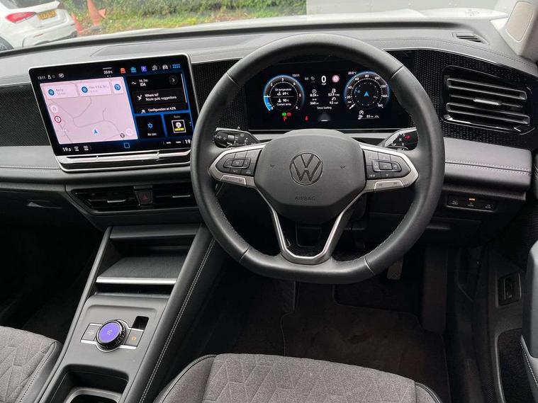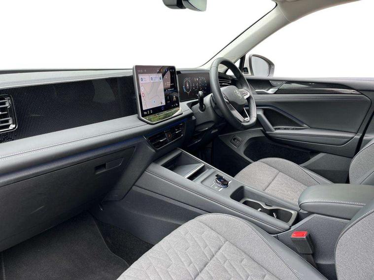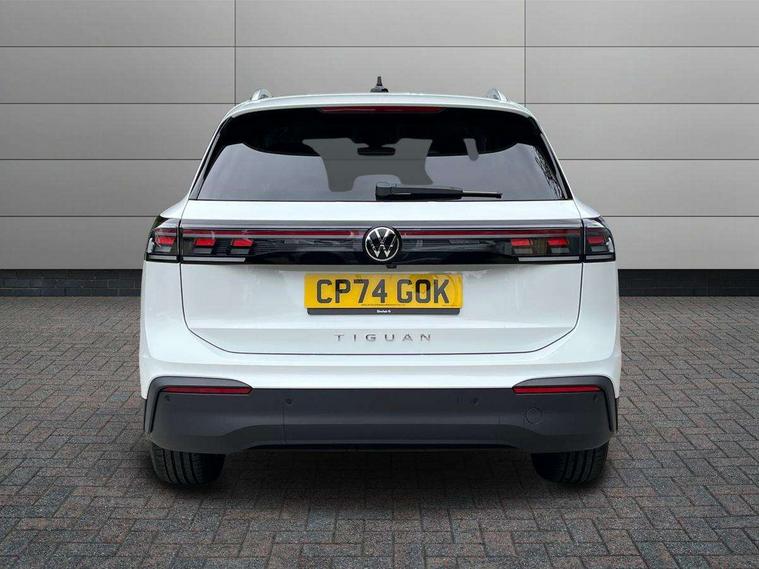 Adaptive cruise control (ACC), Advanced driver attention and drowsiness monitor, Bluetooth mobile phone interface, Car2X technology, Digital Cockpit Pro - 10.25" high resolution dash display screen with customisable menus and information, Dynamic road sign display, E-Sim card for online connectivity, eCall emergency call service, Front Assist - Autonomous emergency braking with pedestrian and cyclist monitoring, Lane change system, Side assist, Rear traffic alert and Exit warning system, Lane keeping system Lane Assist, Multifunction front facing camera, Oncoming vehicle braking when turning including swerve support, Park assistance plus with front and rear parking sensors, Power assisted steering with speed sensitive, Start/stop system with regenerative braking, Warning signal and warning light for front and rear seatbelts not fastened, Wireless App-Connect, Front wheel drive, Digital radio reception (DAB), Diversity antenna for FM reception, Ambient lighting with logo projection, Auto dimming interior rear view mirror, Automatic headlight control system, Body coloured bumpers and air intake with chrome trim, Body coloured door handles, Body-coloured exterior mirror housings, Coming/leaving home lighting function, Heat insulating glass in side and rear windows, Heat insulating windshield, Heated rear window, High level 3rd brake light, Illuminated door handle recesses, Illuminated lightline between headlamps, Rain sensor windscreen wipers, Rear fog light on one side, reversing light on both sides, Rear side wing doors, Rear wiper, 12V outlet in center console rear and in luggage compartment, 12V socket in centre console, 3 bench rear seats in 2nd row, Air care climatronic 3 zone air conditioning system with rear air conditioning control panel, Carpet mats, front and rear, Ceramique headlining, Door and side trim panel in foam film and woven fabric, Front centre armrest, ISOFIX anchors for child seats on outer rear seats and front passenger seat. Compatible with i-Size, Mechanical rear seat release, Power adjustable lumbar support in front, Rear bench seat, split folding, longitudinally movable and folding with load-through hatch and centre armrest, Safety optimised front head restraints, Single front passenger seat, Sun visors with illuminated vanity mirrors, Three rear head restraints, Variable luggage compartment floor, Comfort package incl. Memory feature for Park assist and Safelock - Tiguan, Design package - Tiguan, 3 point seat belt for centre rear seats, 3 Point seat belts in front with pretensioners, 3 point seatbelts in outer rear with ECE label, Driver and front passenger airbag with front passenger airbag deactivation, Electronic parking brake with auto hold, Front and rear curtain airbags, Front and rear side airbags, Front centre airbag, Front disc brakes, Hill start assist, Manual child proof rear door locks, Rear disc brakes, Two tone horn, Warning triangle, Anti theft wheel bolts, Soul instrument panel, Airstop tyres,