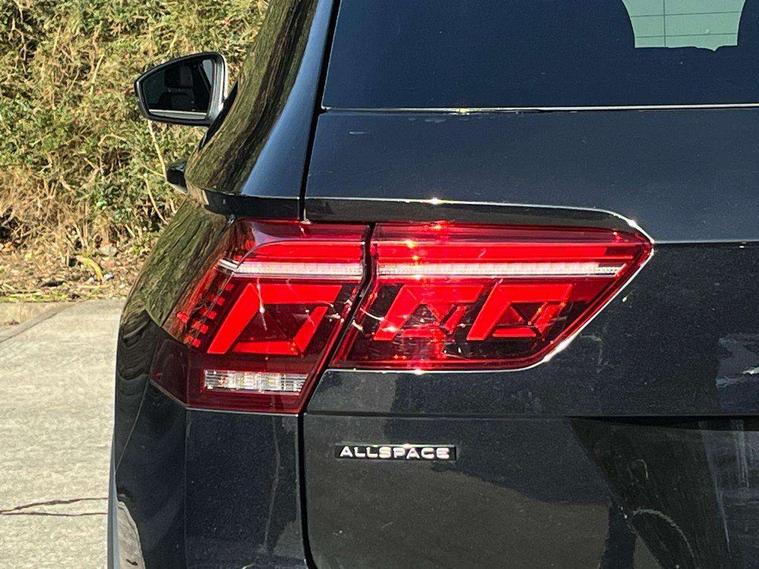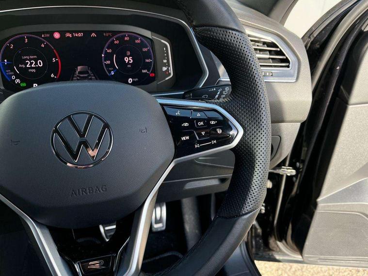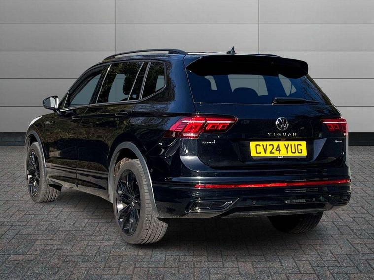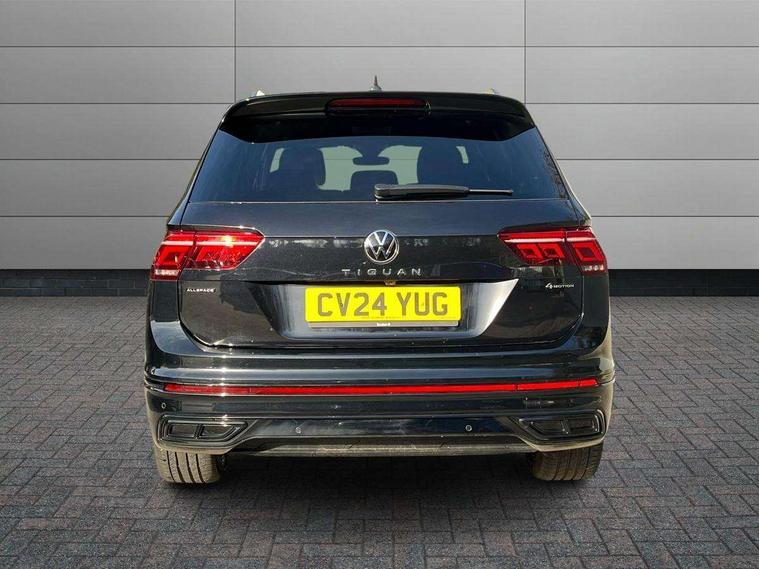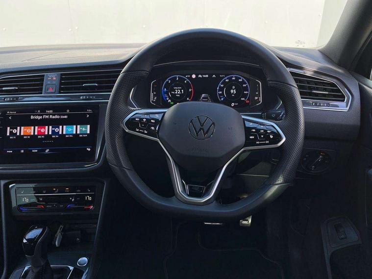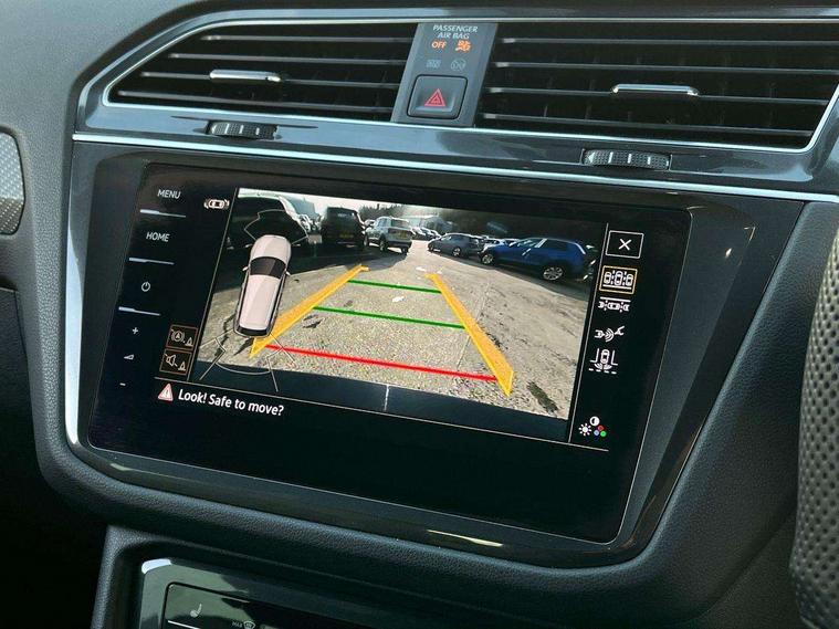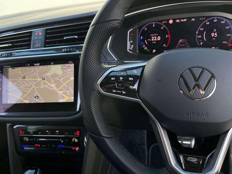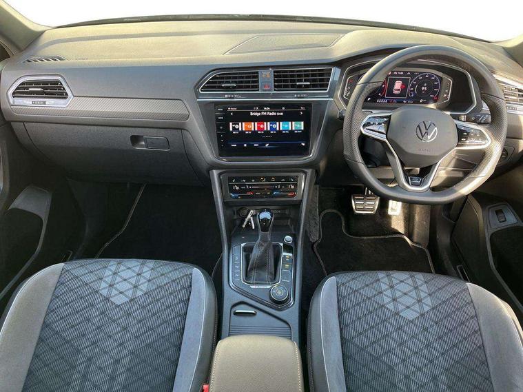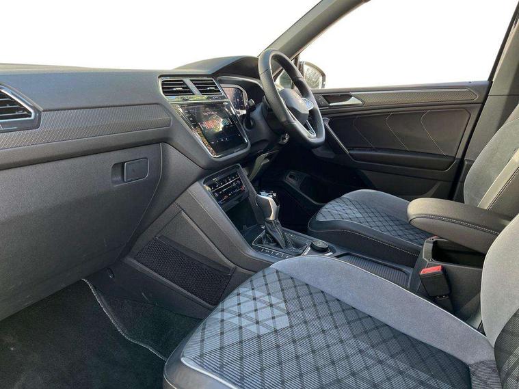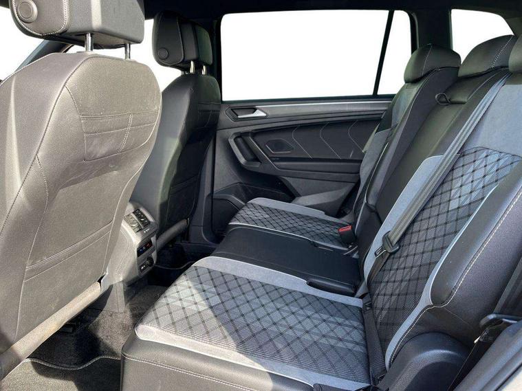 Adaptive cruise control, App-Connect, Digital cockpit pro, Driver alert system, Dynamic road sign display, eCall emergency call service, Electric boot lid, Lane change system side assist and rear traffic alert, Lane keeping system Lane Assist, Mobile phone interface comfort with inductive charging feature, Multifunction front facing camera, Progressive steering, Speedo and rev counter, electronic odometer, trip, service interval display and exterior temperature gauge, Diesel particulate filter, Start-stop system with battery regeneration (recuperation - energy recovery during braking), 2 USB-C ports in the front, 1 USB-C charging socket on the center console in the rear, DAB Digital radio, Diversity antenna for FM reception, Auto dimming interior rear view mirror, Automatic headlight control system, Chrome mouldings on side window, Coming/leaving home lighting function, Exterior badge deletion, Exterior mirror housings painted in silver, Heated windscreen washer jets, Rain sensor, Rear fog light, Rear side wing doors, Rear spoiler in R style, Rear wiper, Silver roof rails, Third brake light, 12-volt outlet in centre console rear and luggage compartment, 12V socket in centre console, 3 head restraints in rear, 3 individual folding 2nd row seats, 3rd row 2 individual seats, Air Care Climatronic 3 zone automatic climate control with enhanced air filter and controls in the rear, Black roof lining, Door and side trim panel with leatherette insert, Drawers under front seats, Driver and front passenger seat height adjustment, Foldable front passenger seat backrest, Front + rear carpet mats, Front centre armrest, Front footwell illumination, Heated front seats, Illuminated scuff plates, ISOFIX anchorage points for mounting 2 child seats on rear seats and i-Size child seats, Leather gearshift handle, Leather wrapped multi function sports steering wheel, heated, with touch control and shifting paddles, LED interior light with switch off delay/dimmer and 2 front/rear LED reading lights, Stainless steel pedals, Sun visors with illuminated vanity mirrors, Ambience pack - Tiguan Allspace R Line, Driver assistance plus package - Tiguan Allspace, 3 point seat belt for centre rear seat, 3 rear three point seatbelts, ABS+EBD+Brake assist, Driver and front passenger safety-optimised head restraints, Driver's and front passenger's airbag with front passenger's airbag deactivation switch, Electronic parking brake, Electronic Stability Control (ESC) inc EDL (Electronic Differential Lock) and ASR (Traction Control), Height adjustable front 3 point seatbelts + pretensioners, Manual rear child locks, Pedestrian monitoring, PreCrash preventive occupant protection Front and rear, Rear disc brakes, Side airbag in front and rear with curtain airbag, Two tone horn, Warning buzzer for seatbelts if unfastened, Anti theft alarm system with interior monitoring, backup horn and towing protection, Anti-theft wheel bolts, Electronic steering lock, Remote central locking with 2 remote folding keys,