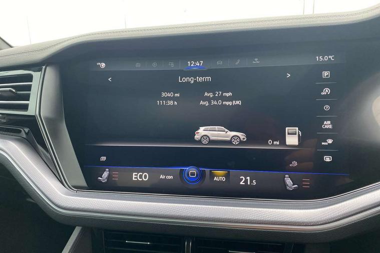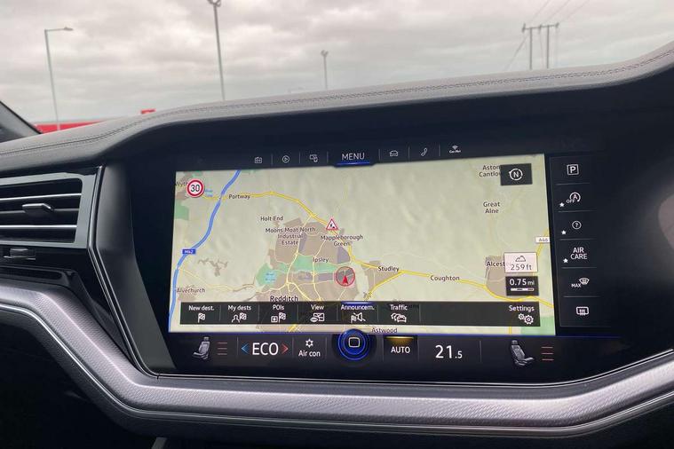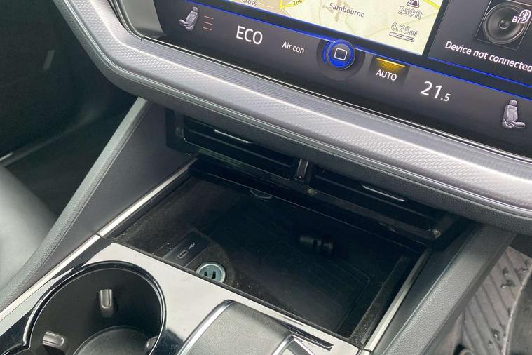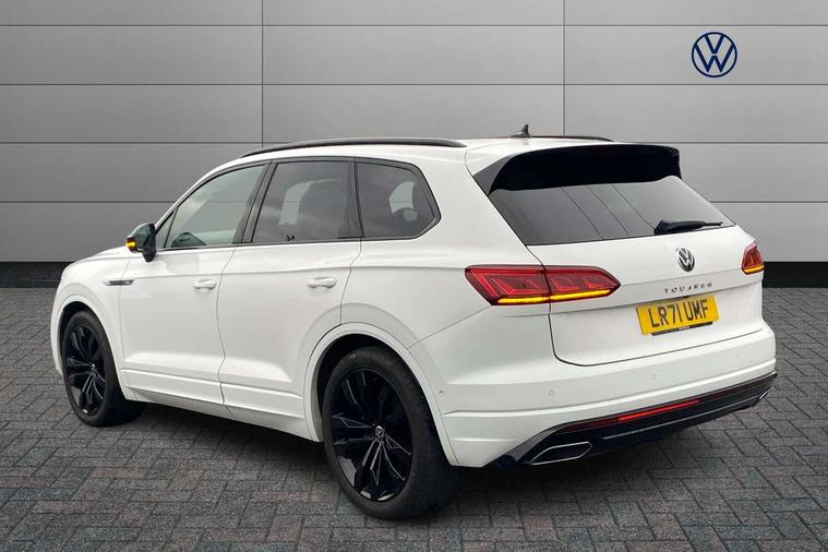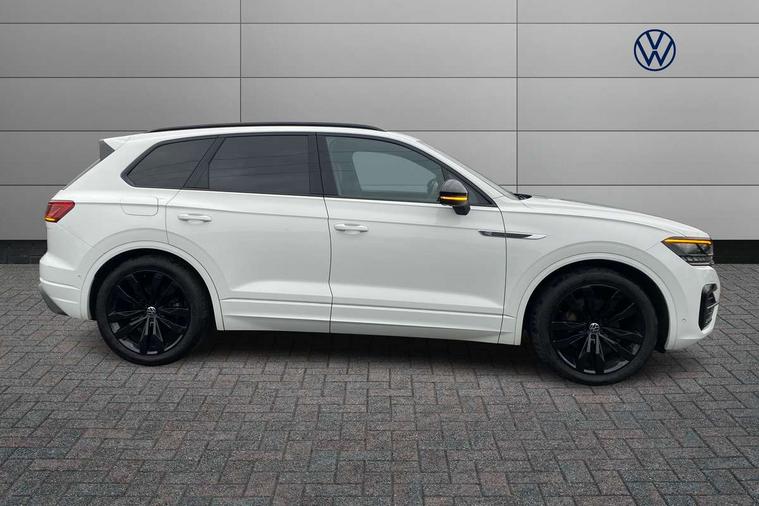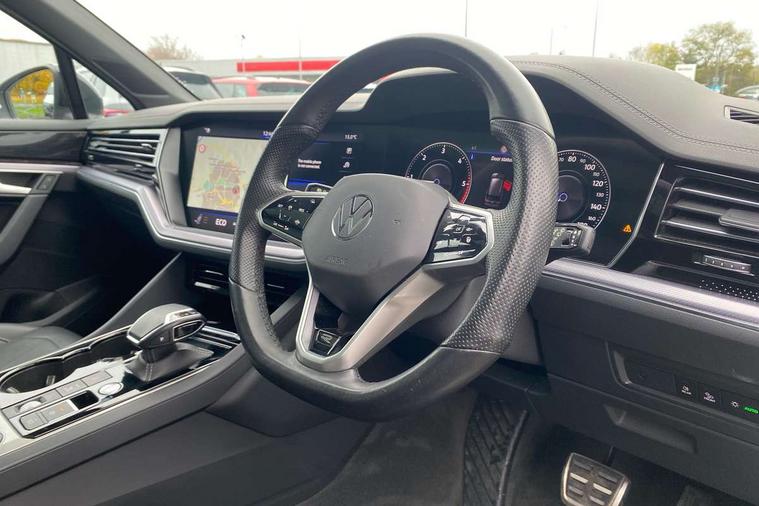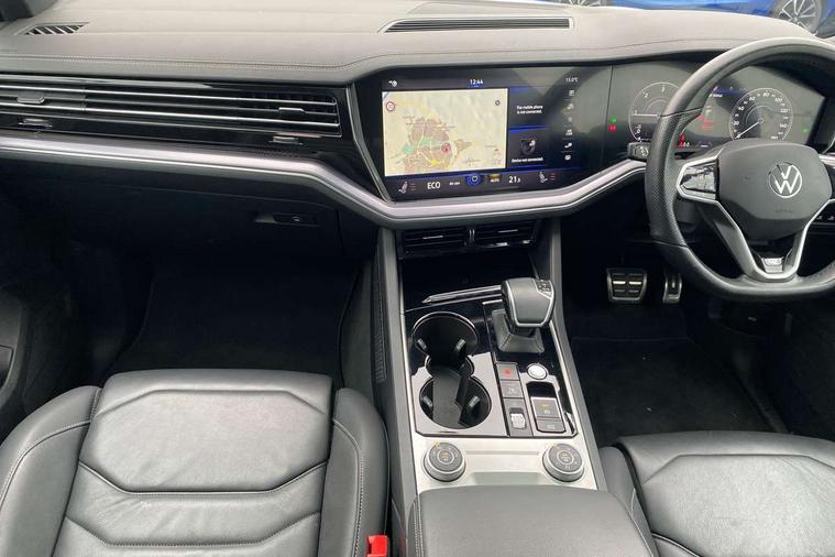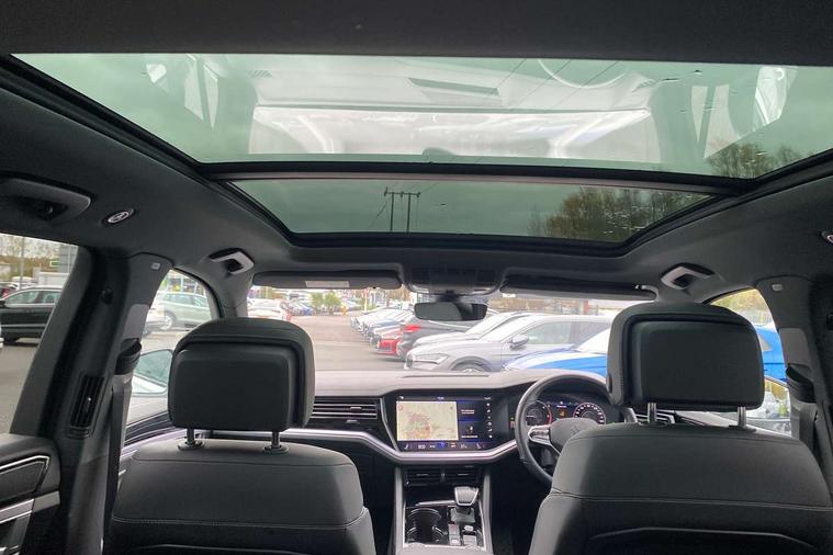 2D/3D map view, ACC - Adaptive cruise control with front assist, forward collision warning, distance monitoring, city emergency brake and speed limiter, Apple car play/Android Auto, Audible and visual fatigue detection system, Bluetooth hands free telephone connection, Car information display, Drive select with Damper control, Driver alert system, Dynamic road sign display camera controlled system with visual warning for traffic and road signs, eCall emergency system, Fully electric tailgate + keyless entry and start, Instrument cluster, MirrorLink, Multifunction camera with lane assist, Multifunction computer premium with 7" colour display, One touch indicators with repeat function, Service interval indicator, Speed sensitive power steering, Start/stop system with regenerative braking, Tailgate power latch, Think blue trainer driver tips and journey analysis, Traffic sign recognition, Voice control system, Wireless Smartphone charger, Torsen limited slip differential, DAB Digital radio, Dynamic navigation based on TMC+, Gesture control for infotainment system, Multi device interface (MDI) with illuminated USB-C connection, Music playback - MP3, WMA and AAC files, SD card slot, Simultaneous pairing of 2 compatible mobile devices, SMS functionality - read, compose and send SMS messages using touch-screen display, Title and cover art display, Volkswagen media control, Adaptive low beam for urban and motorway use, Auto dimming rear view mirror, Automatic coming/leaving home lighting function, Automatic headlights, Black anodised roof rails, Black door mirrors, Black rear diffuser, Black side window surrounds, Black upper and lower grille louvres extending into headlights and radiator grille, Body colour door handles, Body coloured wheel arches, C signature gloss black front air intake, Chromed tailpipe on the left and right integrated in the bumper with trapezoid design, Dusk sensor, Dynamic headlight range control, Electric front tilt/slide panoramic sunroof and fixed rear sunroof, Electrically power adjustable, heated, folding, auto dimming, front passenger exterior door mirror lowering function, Front and rear electric windows, Galvanised body, Gloss black finish B pillar, Gloss black rear diffuser, Headlight washers, Heat insulating darkened glass in side and rear windows, Heated windscreen washer jets, IQ.Light-LED matrix headlight, daytime running light with dynamic cornering light and indicator, LED rear fog light, LED rear number plate lights, Plastic scuff plates in door apertures, Poor weather light, Puddle lights, Rain sensor, Rear wiper, 12V socket in front and rear centre console and boot, 2 Coat hooks on B pillar, 3 rear head restraints, 3 spoke sport heated leather multi-function sports steering wheel with gear shift paddles - generation 2, 4 way adjustable front head restraints, 4 way electric lumbar support for driver and front passenger, 4 zone climate control, 40:20:40 split folding slide/recline rear seat, B pillar vents, Black lower edge of door extending sills, Branded points of interest, Double sun visor for drivier and passenger with LED illuminated vanity mirrors, Electric luggage compartment cover, Folding rear centre armrest with 2 cupholders, Front + rear carpet mats, Front centre armrest with storage box, Gear shift indicator, Height/reach adjust steering wheel, Illuminated air conditioned glovebox, Isofix preparation for 2 rear child seats, Jack and tool kit, Leather trimmed gear knob with gloss black inlay/aluminum trim, Leatherette door trim, LED luggage compartment lighting, Load through provision, Luggage compartment with load lashing rings, Plastic loading edge protection, Rear seat remote release levers, Soul black headlining, Stainless steel pedals, Innovision cockpit pack - Touareg, 3 point front seatbelts with pre-tensioners, ABS, Active bonnet, Automatic post collision braking system, Curtain airbags, Driver/Front Passenger airbags, EBD + Brake Assist, EDL, Electronic parking brake with auto hold, ESC with ASR, Front seat side impact airbags, Hill descent control, Hill start assist, Passenger airbag deactivate switch, Seatbelt warning lamp and buzzer, Three 3 point rear seatbelts, Two tone horn, Volkswagen roadside assistance, Warning triangle and first aid kit, Alarm with interior monitoring in cab, backup horn and towing protection, Child security locks for front and rear doors, Electronic engine immobiliser, Remote central locking, Black decorative trims on the side windows, High gloss black centre console,