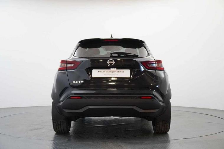 12.3" full colour TFT screen combimeter, Drive modes select (Eco, normal and sport), Emergency and breakdown call, Front parking sensor, Idle start/stop system, Intelligent driver alert system, Intelligent lane intervention, Lane departure warning system, Nissan connect 12.3" touch screen entertainment system, Nissan connect nav with TomTom traffic, Nissan connect services and Wifi connection, Outside temperature sensor, Power Steering, Rear parking sensor, Stop/start button, Traffic sign recognition, Trip computer, Voice recognition, Wireless Apple CarPlay and Google Android auto, Wireless Smartphone charger, 10 Bose speakers 6 speakers and 2 headrest speakers for driver/passenger seats, 2 X Rear console USB port, Bluetooth system, USB, Aux-in and 12V socket, Bose personal sound stage control, DAB Digital radio, Auto dimming frameless rear view mirror, Automatic hazard signal with emergency stop signal, Body colour door handles, Electrically adjustable door mirrors with integrated indicators, Follow me home headlights, Front and rear electric window with one touch driver window, Heated and auto folding door mirrors, High beam assist, LED 3rd brake light, LED daytime running lights, LED front fog lights, LED headlamps, LED rear fog lamp, LED rear lamps, One touch passenger window, Rain sensor windscreen wipers, Rear privacy glass, Rear side wing doors, Rear wiper, Roof spoiler, Shark fin roof antenna in solid Black, Three blink turn signal, 3 height adjustable rear headrests, 3 seat bench in 2nd row, 60/40 split folding rear seat, Automatic climate control, Card holder on driver sunvisor, Door ambient lighting, Driver seat back pocket, Driver side rear coat hanger, Driver/passenger sunvisors and vanity mirrors, Front and rear cabin lights, Front armrest, Front door pockets with bottle holders, Front head restraints, Front/rear passenger grab handles, Gear console ambient circle lighting, Height adjustable driver's seat, Internal chrome door handles, Leather gearshift knob, Leather steering wheel, Luggage board, Luggage space lighting, Monoform sporty seats, Multifunction steering wheel, Passenger seat back pocket, Rear door bottle holders, Single front passenger seat, Steering wheel mounted gearshift paddles, Synthetic leather kneepad, Synthetic leather upholstery, Telescopic steering wheel adjustment, Two cupholders in front centre console, Two rear isofix child seat anchorage points with top tether, Welcome light and console tray ambient lighting, Heat pack with height adjustable passenger seats - Juke, ProPilot pack - Juke Auto, ABS with EBD and brake assist, Active ride control, Active Trace Control, Driver and passenger airbags, Driver and passenger side airbags, Electric handbrake with auto hold function, Electronic Stability Programme (ESP), Front and rear curtain airbags, Height adjustable seatbelts, Hill start assist, Intelligent emergency braking with pedestrian and cyclist recognition, Rear door child safety locks, Seatbelt reminder for driver/front passenger and rear seats, Three 3 point rear seatbelts, Traction control, Tyre pressure monitoring system, VDC Dynamic Vehicle Control, Alarm, Immobiliser, Intelligent key and start push button with walk away lock and approach unlock functions, Remote central locking, 19" Alloy wheels,