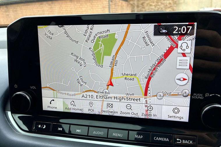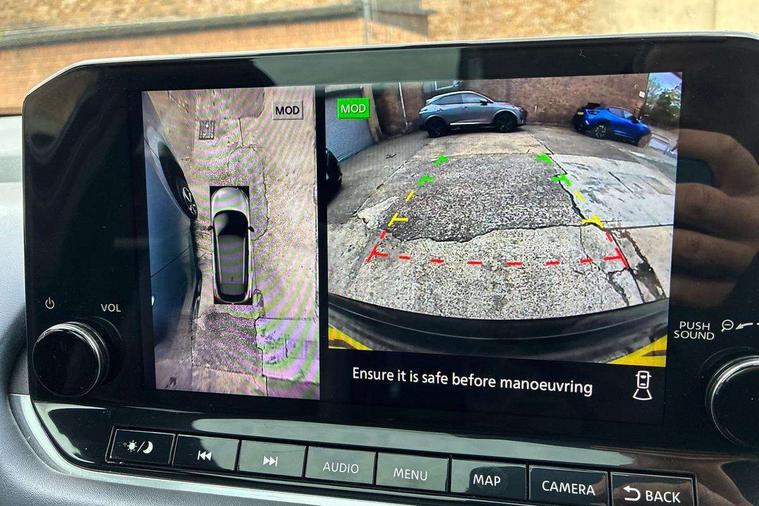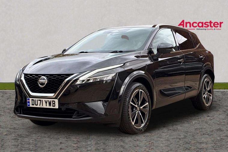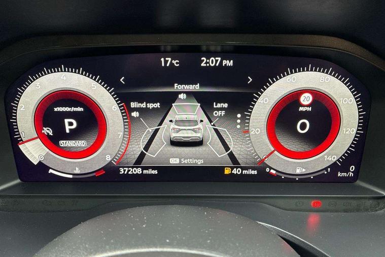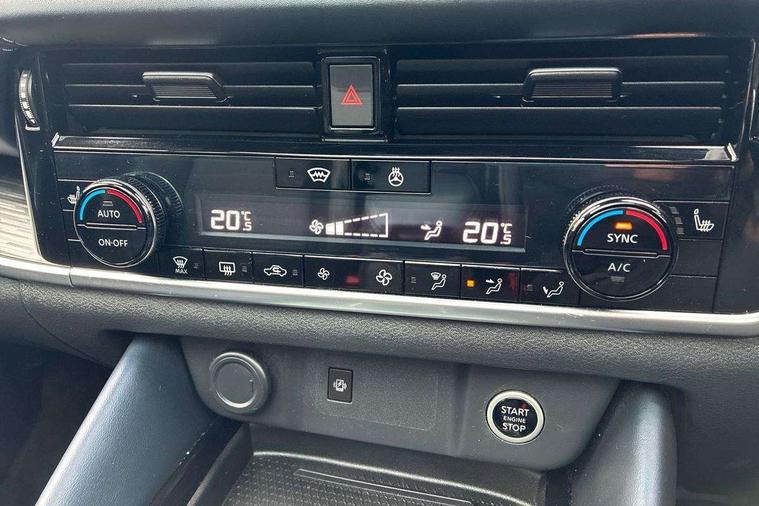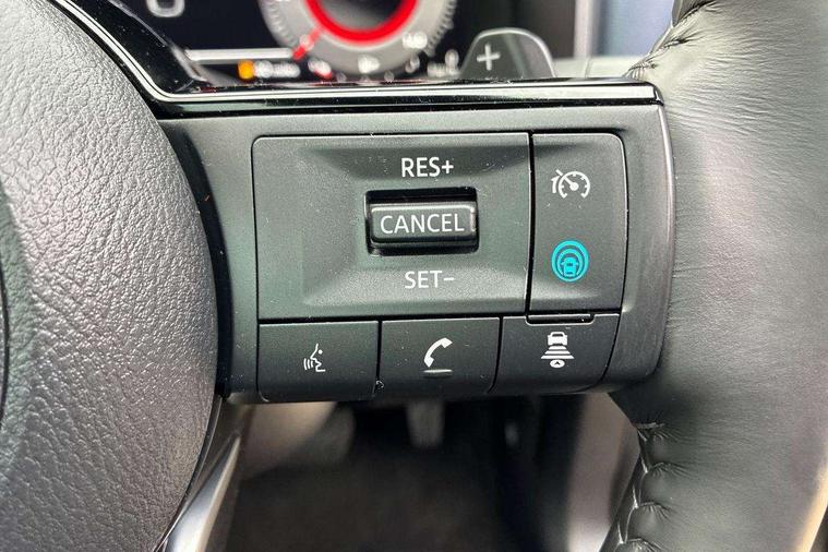 Blind spot warning, Drive modes (sport, normal, eco), Electric speed sensitive power steering, Emergency and breakdown call, Front and rear parking sensors, Full Digital 12.3" TFT Digital Combimeter, Hands free power tailgate, Idle stop/start system, Intelligent Cruise control (ICC), Intelligent driver alert system, Intelligent forward collision warning, Intelligent lane intervention, Lane departure prevention, Lane departure warning system, Moving object detection, Push button starter, Rear cross traffic alert, Traffic sign recognition with legal speed adjustment, Trip computer, 6 speakers, AM/FM audio system with DAB, Bluetooth audio streaming, Front USB connections (Type-A and Type-C), Rear USB charging only ports (Type-A and Type-C), Auto dimming rear view mirror, Auto rear wiper when reversing, Body colour mirror caps, Body coloured door handles, Bodyside mouldings, Chrome side window finisher, Electric auto folding door mirrors, Electrically adjustable and heated door mirrors with LED turn indicator, Fixed panoramic glass roof with electric sunshade, Follow me home headlights, Intelligent auto headlights, LED daytime running lights, LED signature rear lights, One touch front and rear electric windows with remote opening and closing, Partially body coloured bumpers, Privacy glass, Rear roof spoiler, Rear styling plate, Roof rails, Shark fin antenna, Splash free rain sensing wipers, Super UV and infrared cut glass, Three blink turn signal, 12v power socket in dashboard and luggage, 2 way electrical driver lumbar adjustment, 2x Rear coat hooks, 3 rear headrests, 4 grab handles, 6 Luggage hooks - 4 on floor, 2 on side, 60/40 split folding rear seat, 8 way electric adjustable drivers seat, Ambient lighting around centre console, Ambient lighting in front doors, Centre console storage tray, Chrome interior door handles, Cloth/syntech leather monoform upholstery, Dark headlining, Driver and front passenger sunvisors with illuminated vanity mirrors, Driver seat back pocket, Dual zone automatic climate control with pollen filter, Front centre console and armrest, Front cupholder, Front door with bottle holders, Glovebox with light, Hard trunk cover, Height adjustable front headrests, Leather steering wheel, Luggage board system, Luggage space lighting, Manual lumbar support on passenger seat, Manually adjustable passenger (slide recline + lifter), Multifunction steering wheel, Passenger seat back pocket, Rear armrest with 2 cupholders, Rear door bottle holders, Soft PVC kneepad, Steering wheel gearshift paddles, Steering wheel switches, Tilt/telescopic adjustable steering wheel, Two rear isofix child seat anchorage points with top tether, Welcome light and doors with console tray ambient lighting, Heat pack - Qashqai, Tech Pack (ProPILOT + HUD), 3x3 point rear seatbelt pretensioners + load limiters, ABS, ESP, EBD and brake assist, Active brake limited slip, Auto hold function, Child locks on rear doors, Curtain and front side, far side airbags, Driver and passenger airbags, Driver, passenger and 2nd row rear seat belt reminder, Electronic parking brake, Front seatbelt pretensioners + load limiters, Height adjustable front seatbelts, Hill start assist, Intelligent blind spot intervention, Intelligent front emergency braking with pedestrian, cyclist recognition and junction assist, Intelligent rear automatic braking, Tyre pressure monitoring system, Vehicle dynamic control, Capless fuel filler, Engine immobiliser, Nissan i-key, Remote central door locking with deadlocking, Thatcham Cat.1 alarm, 19" Alloy wheels,