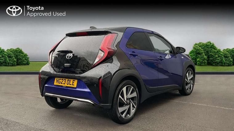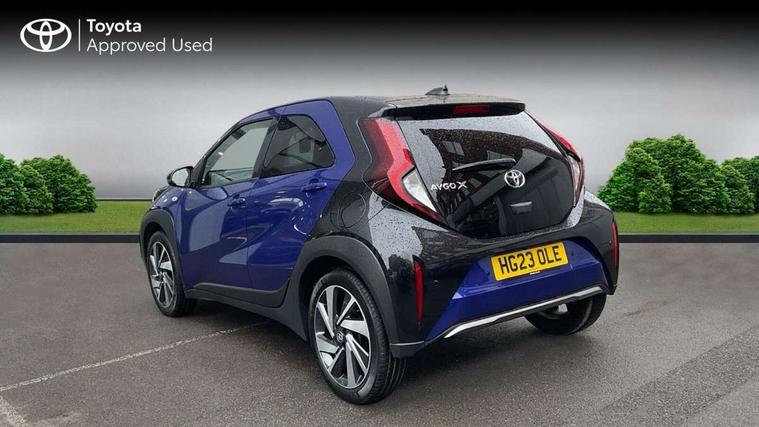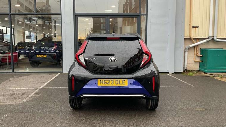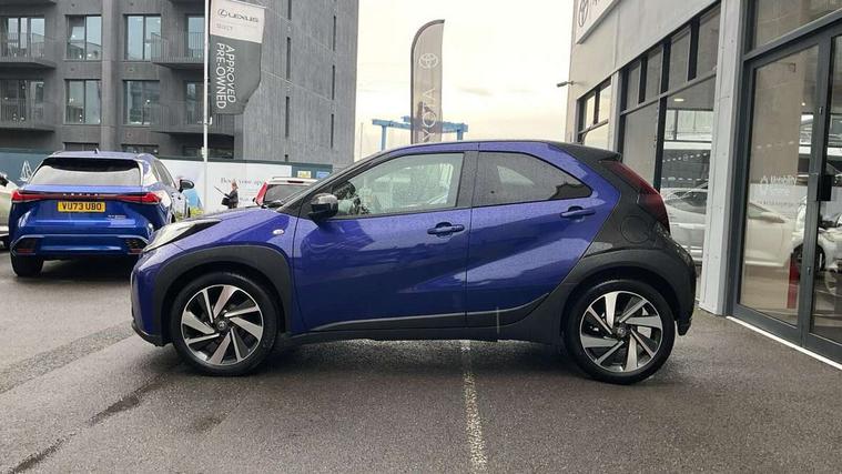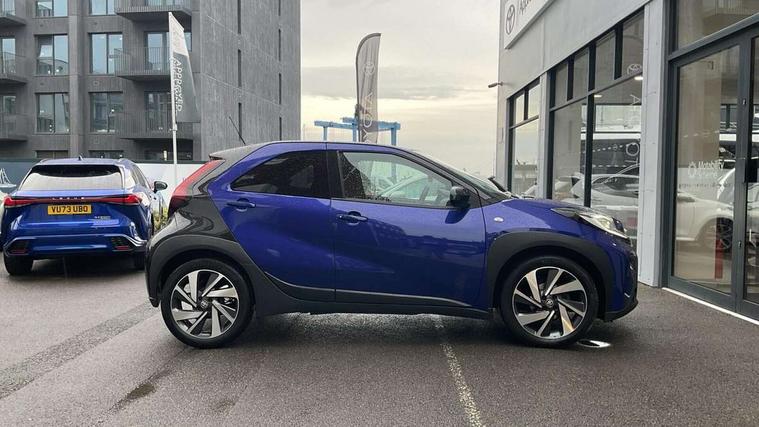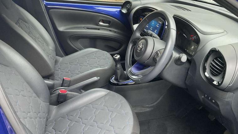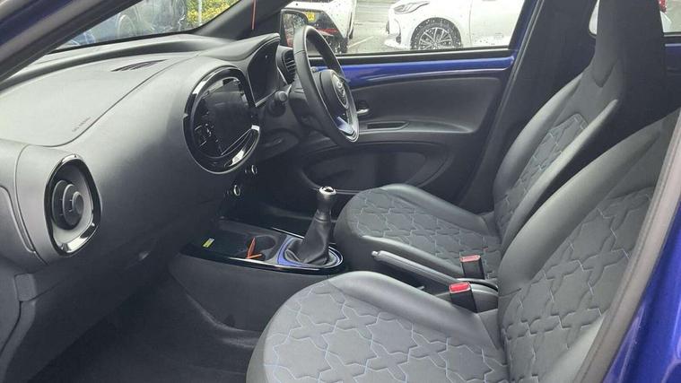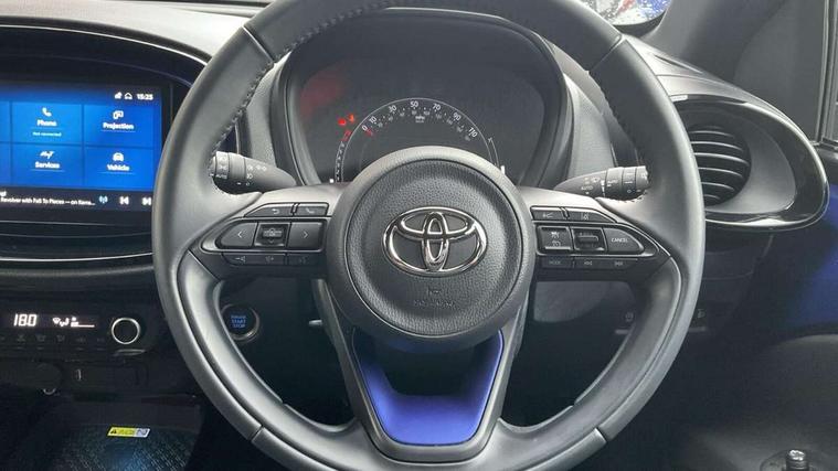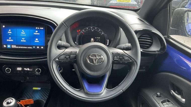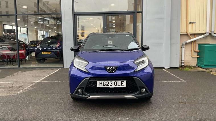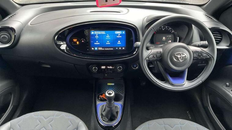 4.2" TFT colour screen, Adjustable speed limiter, Analogue speedometer, Bluetooth connectivity, Digital tachograph, Driver attention alert system, eCall emergency call system, Electric power steering, Front and rear parking sensors with auto brake, Intersection turn assist, Key reminder warning, Noise reduction kit, Pre collision system with emergency steering assist, Remote boot door release on key, Reversing camera with static guide lines, Smart entry and push button start, Speed limit display, Start and stop, Wireless charger, Wireless Smartphone Integration includes Apple CarPlay and Android auto, Vehicle Stability Control (VSC), 4 speakers, 9" HD multimedia display touch screen with Toyota smart connect, DAB digital audio broadcast, USB connector, Auto headlights, Auto wipers, Automatic headlights cut-off, Automatic high beam On/Off switch, Bicycle towing hook, Black fog light surrounds, Black side protection mouldings, Black wheel arch mouldings, Body colour door handles, Body coloured front bumper, Boot door scuff plate, Eclipse black rear bumper, Electric heated door mirrors, Follow me home headlights, Front and rear underruns in silver, Front fog lights, Front power windows, Gloss black door mirrors, Gloss black upper front grille, Headlight cut-off reminder, LED daytime running lights guide, LED front light guide, LED High mounted stop lamp, LED projector headlights, Manual day/night rear view mirror, Manual headlight levelling, Pagoda roof, Power adjustable door mirrors, Power back door, Privacy glass, Rain sensor, Rear combination lights LED bulb type, Rear side wing doors, Rear windscreen defogger, Rear windscreen wiper, Remote hazard lights system, Short antenna, Variable intermittent windscreen wipers, 12v power outlet - front, 2 seat bench in 2nd row, 3 spoke leather steering wheel, 50/50 split folding rear seat, Adhesive roof headlining, Adjustable speed limiter switch on steering wheel, Audio and telephone switches on steering wheel, Auto air conditioning, Black roof lining, Body colour satin anodised insert on steering wheel, Boot light, Centre room light, Chrome interior door handles, Chrome surround on air conditioning buttons, Clean air filter, Console box storage, Floor mats, Front and rear cup holders, Front head rest deco art, Front head restraints, Height adjustable driver seat, Intelligent adaptive cruise control switch on steering wheel, ISOFIX child restraint system on rear seats, Lane departure alert switch on steering wheel, Leather gearshift knob, Light blue ambient lighting in centre console, Manual tilt steering wheel, Manually reclining and sliding driver seat, Manually reclining and sliding front passenger seat, Multimedia switches on steering wheel, Partial synthetic leather upholstery, Pollen filter, Rear door pockets, Rear head restraints, Satin silver insert on gear shift knob, Single compartment glovebox with lights, Single front passenger seat, Soft tonneau cover, Sun visors with mirror on driver and passenger side, Voice recognition switch on steering wheel, Toyota safety sense pack - Aygo X, Anti lock braking system + Electronic brake force distribution, Child safety door lock, Emergency brake light signal (EBS), Hill start assist control (HAC), Passenger airbag on/off switch, Seat belt reminder for front and rear seats, Supplement restraints system (SRS) - 6 airbags, Traction control, Tyre pressure warning system, Immobiliser, Remote power door locks, Black wheel centre caps, Tyre repair kit,