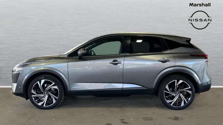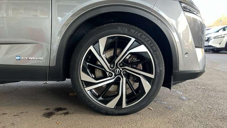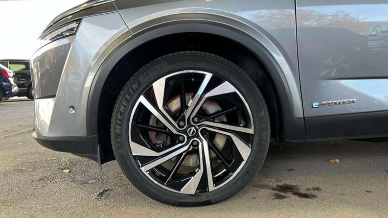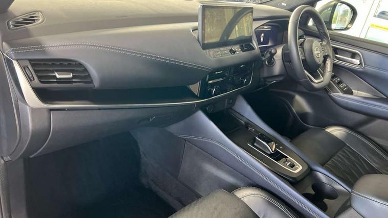 Advanced windscreen head up display, Blind spot warning, Drive modes (sport, normal, eco), e-Pedal step, Electric speed sensitive power steering, Emergency and breakdown call, Front and rear parking sensors, Full Digital 12.3" TFT Digital Combimeter, Google maps services - search, weather, 3D maps and Google street view, Hands free power tailgate, Idle stop/start system, Intelligent around view monitor, Intelligent Cruise control (ICC), Intelligent driver alert system, Intelligent forward collision warning, Intelligent lane intervention, Lane departure prevention, Lane departure warning system, Lane keep assist, Moving object detection, Nissan connect 12.3 inch touchscreen infotainment system, Nissan connect navigation, Pro pilot park assist, Push button starter, Rear cross traffic alert, Rear view camera, Remote control services - door locks, lights, horn and car locator, Telematics - notifications and connectivity services, TomTom live traffic services, Traffic sign recognition with legal speed adjustment, Trip computer, Virtual personal assistant and firmware over the air capability, Wireless Apple CarPlay and wired Android Auto, Wireless charging pad, 10 Bose speakers - 2 tweeters, 6 high and medium frequency door speakers and 2 in subwoofer, AM/FM audio system with DAB, Bluetooth audio streaming, Bose acoustimass bass box, Digital amplifier, Front USB connections (Type-A and Type-C), Rear USB charging only ports (Type-A and Type-C), Auto dimming rear view mirror, Auto rear wiper when reversing, Automatic hazard signal with emergency stop signal, Body colour mirror caps, Body coloured door handles, Bodyside mouldings, Chrome side window finisher, Door handle with button, Door mirror memory, e-POWER badging, Electric auto folding door mirrors, Electrically adjustable and heated door mirrors with LED turn indicator, Follow me home headlights, Front and rear LED turning signals, Headlights auto levelling system, Intelligent auto headlights, LED 3rd brake light, LED daytime running lights, LED front fog lights, LED headlights with adaptive driving beam, LED rear lights, One touch front and rear electric windows with remote opening and closing, Privacy glass, Rear bumper with graphite insert, Rear reversing light (bulb lighting), Rear roof spoiler, Rear side wing doors, Rear styling plate, Reverse tilting door mirrors, Shark fin antenna, Splash free rain sensing wipers, Super UV and infrared cut glass, Thermaclear heated windscreen, Three blink turn signal, 12v power socket in dashboard and luggage, 2x Rear coat hooks, 3 bench rear seats in 2nd row, 3 rear headrests, 4 folding assist grip, 6 Luggage hooks - 4 on floor, 2 on side, 60/40 split folding rear seat bench, Ambient lighting around centre console, Ambient lighting in front doors, Centre console storage tray, Chrome interior door handles, Dark black/blueish PVC wrapping, Dark headlining, Driver and front passenger sunvisors with illuminated vanity mirrors, Driver seat back pocket, Dual zone automatic climate control with pollen filter, e-POWER shifter, Electric 4-way lumbar support for drivers seat, Electric adjustable 4 way lumbar support for passenger seat, Electrically adjustable driver seat with massage and memory functions, Front and rear door storage, Front centre console and armrest, Front cupholders x 2, Front door with bottle holders, Glovebox with light, Hard trunk cover, Heated front seats, Heated steering wheel, Height adjustable driver's seat, Height adjustable front headrests, Height adjustable passenger seat, Leather steering wheel, Luggage board system, Luggage space lighting, Manually adjustable passenger (slide recline + lifter), Multifunction steering wheel, Passenger seat back pocket, Quilted premium leather upholstery, Rear armrest with 2 cupholders, Rear door bottle holders, Single front passenger seat, Soft PVC kneepad, Steering wheel switches, Tilt/telescopic adjustable steering wheel, Two rear isofix child seat anchorage points with top tether, Welcome light and doors with console tray ambient lighting, Glass roof pack with roof rails - Qashqai, 3x3 point rear seatbelt pretensioners + load limiters, ABS with EBD and brake assist, Active brake limited slip, Auto hold function, Child locks on rear doors, Curtain and front side, far side airbags, Driver and passenger airbags, Driver, passenger and 2nd row rear seat belt reminder, Electronic parking brake, Front seatbelt pretensioners + load limiters, Height adjustable front seatbelts, Hill start assist, Intelligent blind spot intervention, Intelligent front emergency braking with pedestrian, cyclist recognition and junction assist, Intelligent rear automatic braking, Tyre pressure monitoring system, Vehicle dynamic control, Advance intelligent key with driver memory storage (seats, mirrors, audio), Capless fuel filler, Engine immobiliser, Remote central door locking with deadlocking, Thatcham Cat.1 alarm, Interior instrumental panel C finisher, 20" Diamond cut alloy wheels, Tyre puncture repair kit,