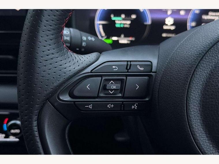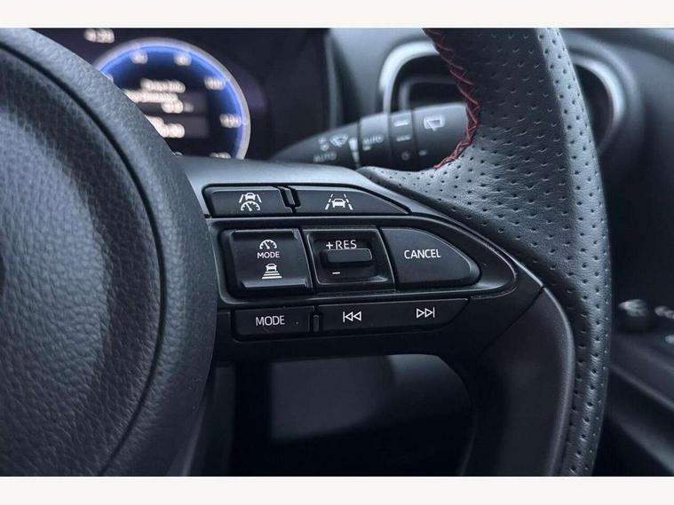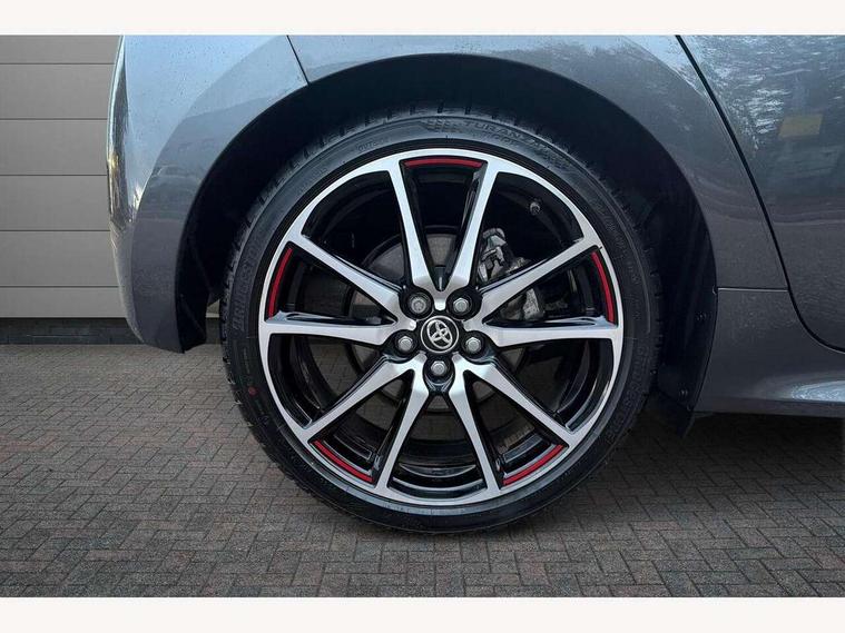 12.3" Digital Combimeter, Adaptive cruise control, Adjustable speed limit with speed warning, Bluetooth connectivity, Colour binocular inspired displays with digital speedometer, E-call, Electric power steering, Hybrid energy display, Multi information display switches on steering wheel, Reversing camera, Smartphone integration with Apple CarPlay and Android auto, Tailgate, Voice recognition, Vehicle Stability Control (VSC), 10.5" Toyota smart connect multimedia with wireless smartphone integration incl apple car play and cloud Navigation, 6 speakers, Toyota Touch 3 system with DAB radio, USB connection, Acoustic windscreen glass, Auto windscreen wipers, Automatic headlights, Dark chrome lower front grille, Electric adjustable heated door mirrors, Follow me home headlights, Front auto power windows with anti jam protection, Full LED rear lights, LED daytime running lights, LED front fog lights, LED front light guide, LED Headlights, LED High mounted stop lamp, LED Indicators, LED rear light guide, Manual headlight levelling, Painted chequered front grille with hot stamp in mesh design, Rain sensor, Rear auto power windows with anti jam protection, Rear privacy glass, Rear side wing doors, Rear spoiler, Rear wiper, Shark fin antenna, Turning signal integrated indicators in door mirrors, Variable front intermittent wipers, 3 adjustable rear headrests, 3 seat bench in 2nd row, 3 spoke leather steering wheel, 60/40 split folding rear seat, Active headrests, Adjustable boot height, Black roof lining, Coat hooks in rear grab handles, Cup holders (2 front & door), Data Communication Module (DCM) connected services, Dual zone automatic air conditioning, Front armrest, Front sport seats, Glovebox, Height adjustable driver's seat, Height adjustable passenger seat, Isofix seat fixing, Leather gearshift, Map pockets on the backs of the front seats, Pollen filter, Shopping bag hooks, Single front passenger seat, Suede upholstery, Tilt/telescopic steering column, 3 point seatbelts on all rear seats, ABS+EBD+Brake assist, Electronic parking brake, Emergency brake light system (EBS), Front passenger airbag on/off switch, Front seatbelt reminder, Hill start assist control (HAC), Rear child proof door locks, Rear seat belt reminder, Supplemental Restraint System (SRS) 8 airbags: Driver & passenger's airbags, dual side curtain airbags, side impact airbags, front centre airbag, Toyota Safety Sense 3 with over the air updates, Tyre pressure warning system, 2x Master key, Alarm/immobiliser, Keyless smart entry with push button start, Remote AC via MyT, Remote locking via MyT, Remote powered central double locking doors, GR Sport interior styling with accents and exterior styling, Piano black interior trim, Soft touch instrument panel, 18" Black Machined-face, 10 spoke alloys wheels, Space saver spare wheel,