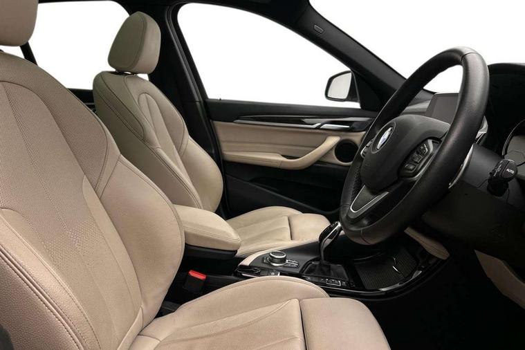 Active Guard incl speed limiting and lane departure functions with auto steering, and front collision warning with brake intervention, Ambient temperature display, Attentiveness assist, Automatic tailgate opening, BMW Online services, BMW remote services, BMW Teleservices, Lights on warning, On board computer, Outside temperature gauge, Real time traffic information, Service interval indicator, Servotronic PAS, Speed limiter, Stop/start button, Tyre puncture warning system, Electronic differential lock, Performance Control, BMW professional radio with CD player, DAB Digital radio, USB/audio interface, Adaptive LED Headlights, Adjustable headlights, Body colour bumpers, Body colour door handles, Body colour door mirrors, Electrically adjustable and heated door mirrors, Exclusive door sill finishers, Fingertip control / anti-trap function on electric window, Follow me home headlights, Front and rear electric windows, Front fog lights, Heat insulating tinted glass, Heated windscreen washer jets, LED daytime running lights, Rain sensor including auto headlights activation, Rear window wash/wipe, Twin chrome exhaust tailpipes x2, Welcome home function, 12v power point in centre console, 12V power socket in passenger footwell, 3 rear headrests, 3 spoke sport leather steering wheel, 4 grab handles, Black door sill finishers with BMW designation, Boot light, Centre console with cupholders, Dakota leather upholstery, Driver/passenger sunvisors with ticket holders, Drivers folding storage compartment, Dual zone automatic air conditioning, Front and rear door armrests, Front centre armrest/sliding cover, Front passenger isofix child seat attachment, Front/rear adjustable head restraints, Heated front seats, Illuminated glovebox, Isofix rear child seat preparation, Leather gearknob/gaiter/handbrake grip, LED ambient lighting in door trim, Luggage area underfloor compartment, Luggage compartment lighting, Multifunction steering wheel, Rake/reach adjustable steering wheel, Sliding/split/reclining 40/20/40 rear seat with 60/40 split rear seat base, Steering wheel gearshift paddles, Velour floor carpets, Extended storage package - X1, 3 rear 3 point seatbelts, ABS/EBD, Audio/visual collision warning system, Automatic Stability Control (ASC), BMW emergency call, Cornering brake control (CBC), Crash Sensor - activates hazard/interior lighting + unlocks doors, Driver/Front Passenger airbags, Driver/front passenger side airbags, DSC - Dynamic Stability Control, Dynamic brake control, Dynamic Traction Control - DTC, Electronic parking brake, Front and rear head airbags, Front passenger airbag deactivation, Front seatbelt force limiters, Hill start assist, Pyrotechnically pre-tensioned front seatbelts, Rear door child safety locks, Seatbelt warning, Tyre pressure monitor, Warning triangle and first aid kit, Auto door lock when driving, Central locking including boot and fuel flap with deadlocks, Engine immobiliser, Locking wheel nuts, Remote control Thatcham category 1 alarm, High gloss black centre console, Low rolling resistance tyres,