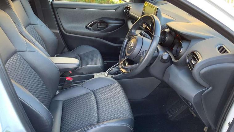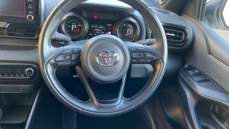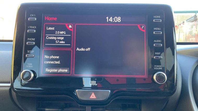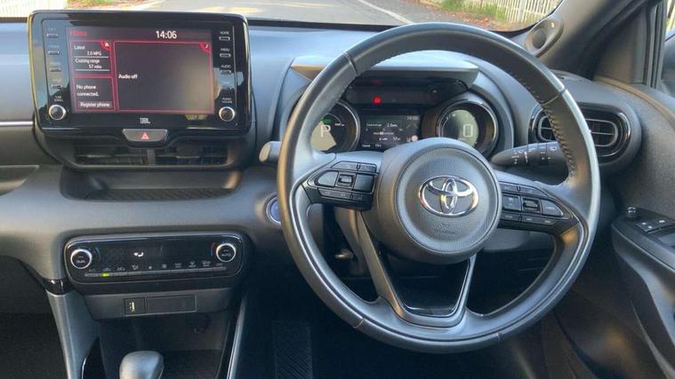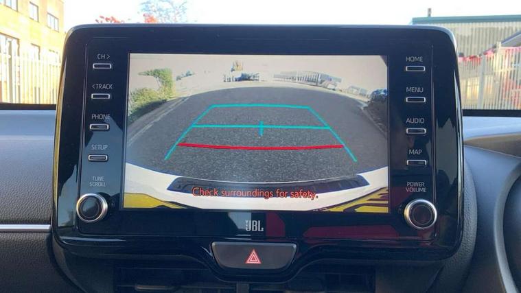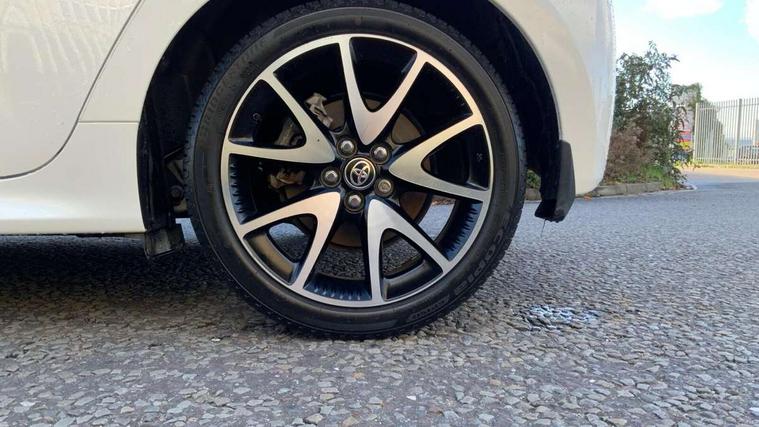 Adaptive cruise control, Adjustable speed limit with speed warning, Bluetooth connectivity, Colour binocular inspired displays with digital speedometer, E-call, Electric power steering, Hybrid energy display, Multi information display switches on steering wheel, Reversing camera, Smartphone integration with Apple CarPlay and Android auto, Vehicle Stability Control (VSC), 8" Multimedia display touch screen, JBL Premium sound system with 8 speakers, Toyota Touch 2 with DAB, USB connection, Acoustic windscreen glass, Auto windscreen wipers, Automatic headlights, Body coloured door mirrors, Electric adjustable heated door mirrors, Follow me home headlights, Front auto power windows with anti jam protection, Full LED rear lights, LED daytime running lights, LED front fog lights, LED Headlights, LED High mounted stop lamp, Painted front grille, Rear auto power windows with anti jam protection, Rear privacy glass, Rear spoiler, Shark fin antenna, Turning signal integrated indicators in door mirrors, 3 adjustable rear headrests, 3 spoke leather steering wheel, 60/40 split folding rear seat, Active headrests, Adjustable boot height, Coat hooks in rear grab handles, Cup holders (2 front & door), Data Communication Module (DCM) connected services, Dual zone automatic air conditioning, Fabric seat with partial synthetic leather upholstery, Front armrest, Front sport seats, Glovebox, Height adjustable driver's seat, Height adjustable passenger seat, Isofix seat fixing, Leather gearshift, Map pockets on the backs of the front seats, Pollen filter, Shopping bag hooks, Tilt/telescopic steering column, 3 point seatbelts on all rear seats, ABS+EBD+Brake assist, Electronic parking brake, Emergency brake light system (EBS), Front passenger airbag on/off switch, Front seatbelt reminder, Hill start assist control (HAC), Rear child proof door locks, Rear seat belt reminder, Supplemental Restraint System (SRS) 8 airbags: Driver & passenger's airbags, dual side curtain airbags, side impact airbags, front centre airbag, Toyota Safety Sense 2, Precollison + Night time Pedestrian & Cyclist Detection, Lane Trace Assist, Auto High Beam, Intelligent ACC & Road Sign Assist, Tyre pressure warning system, Alarm/immobiliser, Keyless smart entry with push button start, Remote powered central double locking doors, Piano black interior trim, Soft touch instrument panel, Space saver spare wheel,