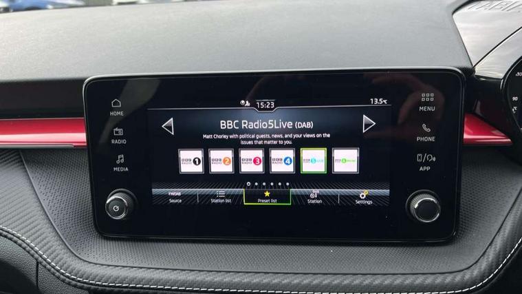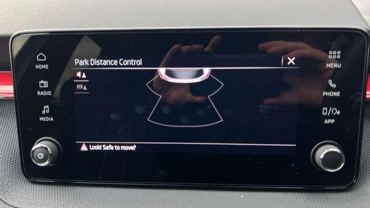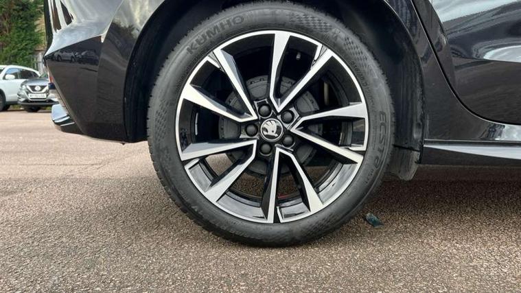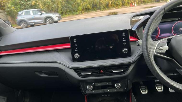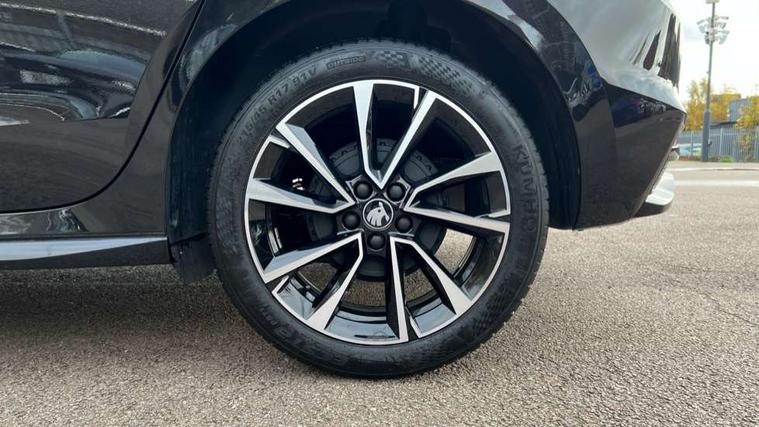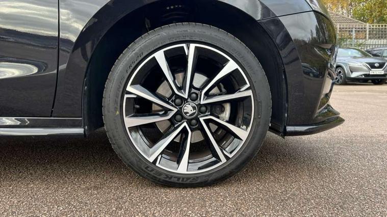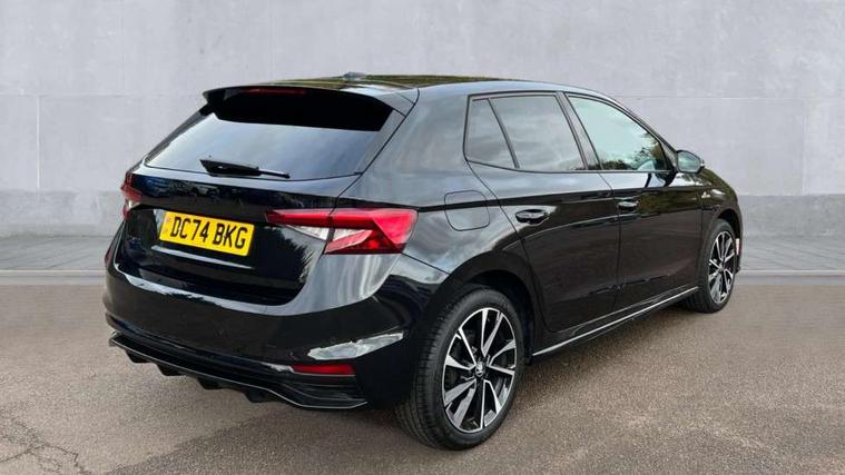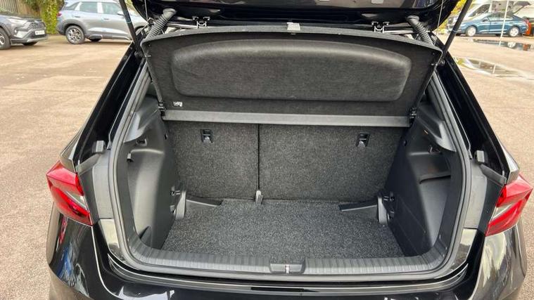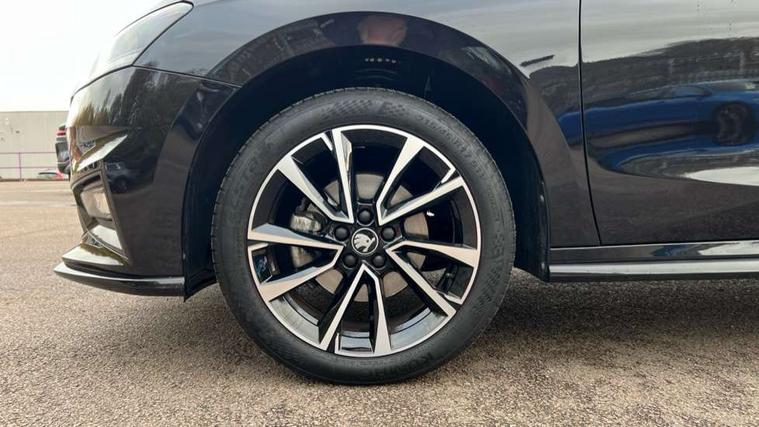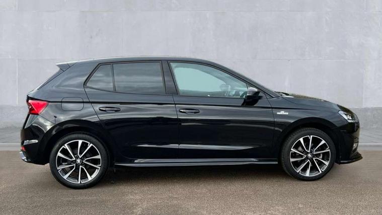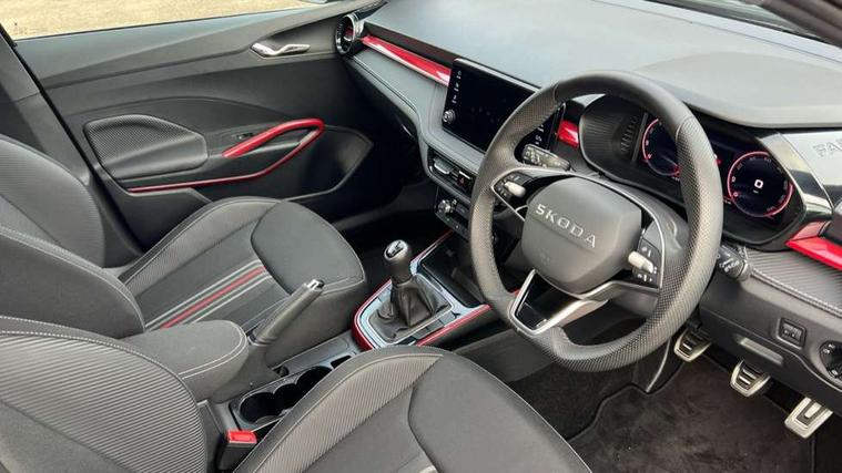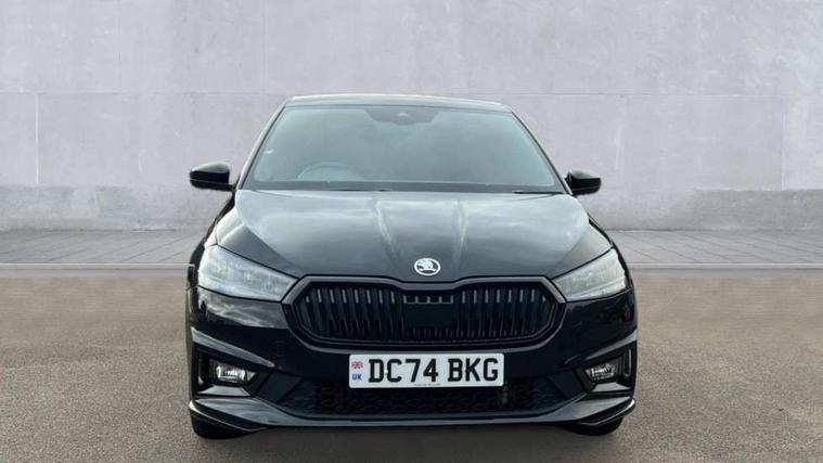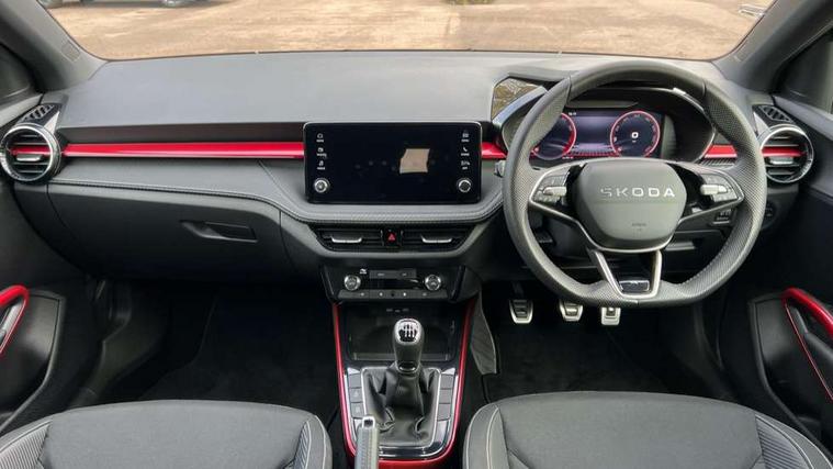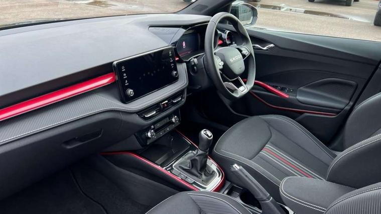 Advanced driver attention and drowsiness monitor, Bluetooth connection, Electromechanical power steering, Exterior temperature gauge, Service interval indicator, Traffic sign recognition, Virtual cockpit with 10.25" colour display, Wireless SmartLink for Apple CarPlay and Android Auto, 6 Speakers (4 in front and 2 in rear), Auxiliary socket for external MP3 player, DAB digital radio reception, Auto dimming rear view mirror, Black radiator grille, Body coloured bumpers, Door mirror integrated indicators, Front and rear electric windows, Front window wiper intermittent control, Headlight range control - Automatic, Ice scraper in fuel cap, LED daytime running lights with coming and leaving home feature, LED rear lights, Monte Carlo badging, Privacy glass, Rear LED fog light, Rear side wing doors, Rear window wiper with washing nozzles, Roof mounted spoiler, SKODA tailgate lettering in black, Sports bumpers, Third brake light, 2 reading lights in front and 2 reading lights in rear, 3 rear headrests, Aluminium pedals, Backrest split and folding, Black headlining, Central console with removable cup holder and storage box, Chrome handbrake release button, Door sills with fabia badging, Dual zone air conditioning with climatronic electronic control, Fabric/artificial leather upholstery, Front centre armrest, Front sports seats, Gearshift knob/handle in leather, Hand brake lever handle in leather, Height adjustable front headrests, Height adjustable front seats, Height adjustable steering wheel, ISOFIX and TopTether anchorage points to the outer rear seats, ISOFIX and TopTether on the front passenger seat, Luggage compartment lighting, Manually adjustable lumbar support in front seats, Metallic painted red central console cover, Metallic red interior door handles, Pollen filter, Rear seat bench unsplit, Single front passenger seat, Sun visors with mirror and airbag label on passenger side, Textile floor mats, Ticket holder, Umbrella in drivers door, 3-point height adjustable front seats belts with pretensioner and force limiter, Automatic warning lights in case of crash, Driver and passengers airbag with switch off function, e-Call+, ESC including ABS, MSR, ASR, EDS, HBA and XDS, Front and rear seat belt warning, FRONT ASSIST (AEB City and AEB Inter Urban), Front side airbags, Head airbags, One tone horn, Pedestrian protection, Three rear 3-points safety seat belts with pretensioner and force limiter including stop function for outer rear seat belts, Tyre pressure monitoring system, Anti-theft alarm system including immobiliser, interior monitoring, backup horn, and towing protection, Central locking with radio remote control, interior controls, SAFE function and 2 foldable keys, Carbon effect door and side trim panels, Carbon effect lower decorative trim with white stitching, Monte carlo air vents, Red metallic upper decorative trim, Anti-theft wheel bolts protection, Super-low rolling resistance tyres,