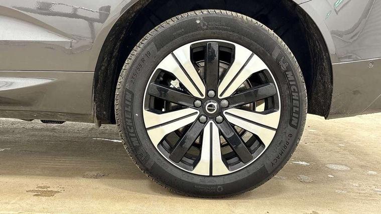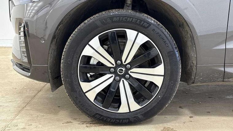 12.3" Progressive Driver Display, 360 degree surround view parking camera with side proximity sensors, 9" centre console touch screen, Adjustable steering wheel force, Apple carplay (wired), Bluetooth handsfree system, Drive mode settings, Driver alert control with lane keeping aid, Driver assistance (pilot assist and adaptive cruise control), Emergency services call system, Front and rear park assist, Google Automotive Services, Oncoming Lane Mitigation, PAS, Service interval indicator, Speed limiter, Speed sensitive steering, Trip computer, Volvo on call with App, Wireless/Inductive Mobile Phone Charging, 3.7 kW monophase on board charger, 7m 10amp charge cable with 3 pin plug and 6m 3 phase 16amp type 2/mode 3 charge cable, 8 speed automatic transmission with start/stop + manual change functions, Dynamic chassis, Electric rear axle drive, Recharging port located in nearside front wing, DAB Digital radio, Low speed exterior sound speaker, Premium Sound by Harman Kardon, dirac unison, dolby pro logic II surround sound, 13 speakers/600W output and fresh air subwoofer, Steering wheel remote infotainment controls, Adaptive brake lights with high level LED brake lights, Auto dimming interior + exterior mirrors, Automatic headlight levelling system, Automatic LED Headlights + Active high beam incorporating daytime running lights, Electric adjustable/heated/auto power folding door mirrors, Electric front+rear windows, Heated front windscreen, High gloss black door mirrors and window surround, High gloss black front and rear bumper decoratives, High gloss black mesh front grille with high gloss black surround, Home safe and approach lighting, Integrated roof rails in high gloss black, Power glass tilt and slide panoramic sunroof with sun curtain, Puddle lights, Rain sensor with automatic windscreen wiper activation, Rear side wing doors, Rear wiper, Roof antenna, Roof spoiler, Tinted windscreen, Visible VIN plate, 12V socket in front tunnel console and luggage compartment, 2 zone electronic climate control with Clean zone air quality system and pollen filter, 3 seat bench in 2nd row, A-pillar parking ticket holder, Air purifier particulate matter (PM) 2.5 filter, B Pillar ventilation, Bright metal luggage threshold, Centre console cupholders and storage, Charcoal floor mats, Front and rear courtesy lights, Front and rear door pocket illumination, Front cupholder illumination, Front footwell illumination, Front reading lights, Front seat cushion extensions, Glovebox compartment with illumination, Head restraints for all seats, Heated front seats, Heated steering wheel, Height/reach adjustable steering column, Illuminated luggage compartment, Illuminated vanity mirrors + ticket holder, ISOFIX attachment on outer rear seats, Load cover, Load protection net, Multi directional lumbar support, Power driver seat with memory + exterior mirrors memory, Power height adjustable passenger seat, Rear armrest with cupholder, Rear footwell and front and rear side step illumination, Rear seat concealed storage, Recharge aluminium tread plates, Single front passenger seat, Tailgate illumination and ambient door lighting, Underfloor stowage compartment, Versatile split folding rear seat - 60/40, 5 three point seatbelts, City safety with steering support with Pedestrian + cyclist + front collision warning with full auto brake and rear auto brake, Drivers knee airbag, Dual stage driver/passenger airbags, Electronic parking brake with auto hold, First aid kit, Front seats SIPS airbags, Hill descent control - Off-road drive mode, Hill start assist, IC (Inflatable Curtains) - Full Length, Passenger airbag cut-off device, Power child locks on rear doors, Road sign information display, Run off Road Mitigation, Run off Road Protection, Seatbelt reminder and pretensioners, SIPS (Side Impact Protection System), Slippery road and hazard light alert, Stability and Traction Control with Spin control, Engine Drag Control and Corner Traction Control, Tyre pressure monitoring system, Vehicle deceleration control with Anti-lock Brake System, Electronic Brake Distribution and Emergency Brake Assist, Warning triangle, WHIPS whiplash protection system - front, Anti-theft alarm including immobiliser/volume sensor + level sensor, Care key with user defined top speed, Key integrated remote control central locking + fuel flap with deadlocking system and auto open/close power windows, Keyless Drive (includes Keyless Entry and Keyless Start) with Handsfree Tailgate Opening/Closing, Locking wheel nuts, Private locking for tailgate, Tyre sealant kit + 12v compressor,