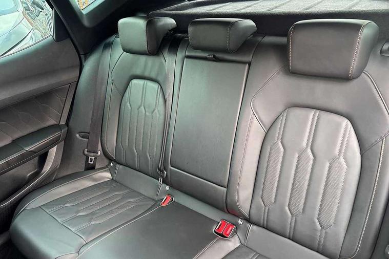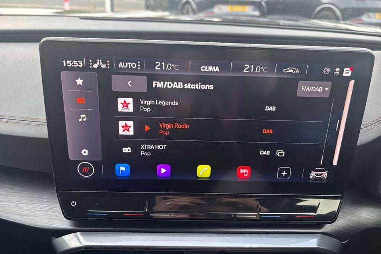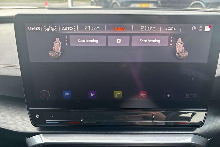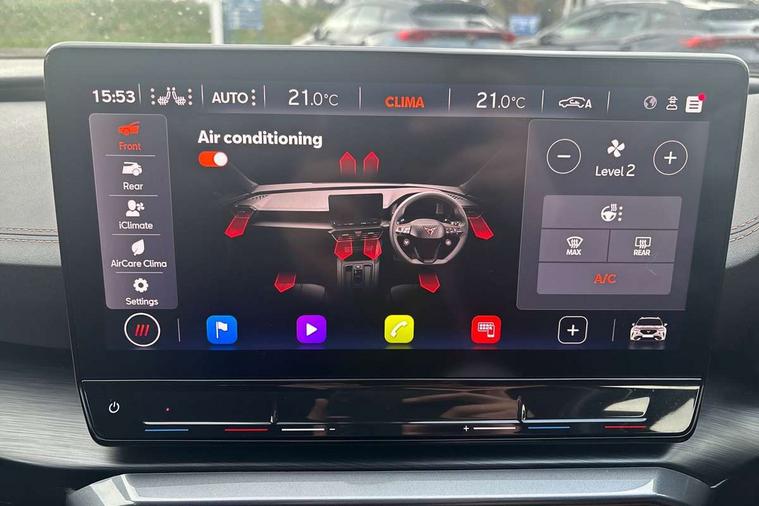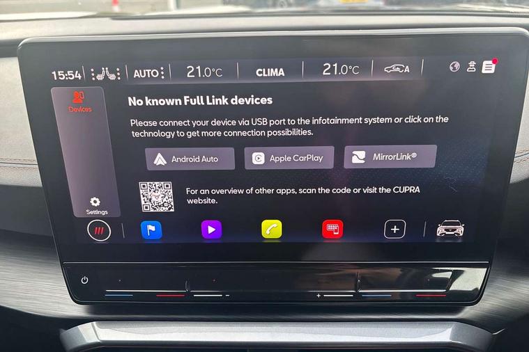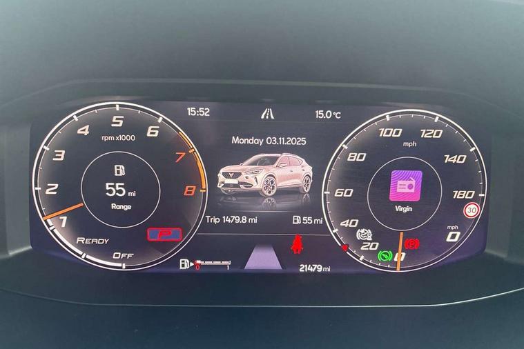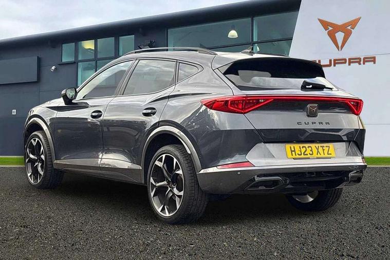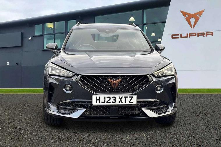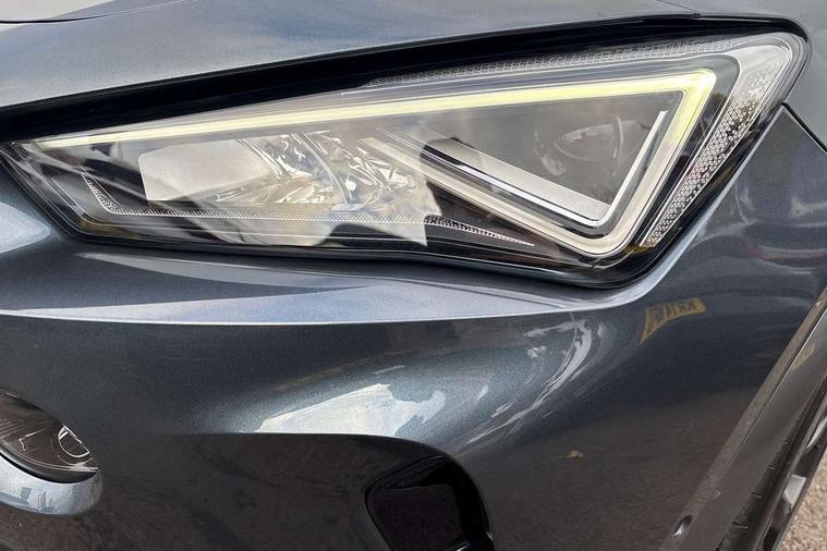 Digital cockpit and configurable dashboard, Driver alert system, Driving profile selection, Forward collision warning with automatic braking, Lane assist, Navigation system with 12'' Touchscreen Display, Park assist (inc front/rear parking sensors), PAS, Predictive adaptive cruise control with speed limiter, Rear view camera, RPM, trip computer, outside temp gauge, instrument light brightness, low fuel warning light, lights on reminder, gearshift indicator, Service interval indicator, Start/stop system with regenerative braking, Voice control system, Wireless apple carplay, Wireless phone charger, Electronic locking differential and dynamic traction support, Standard suspension, 2 front and 2 rear USB type C sockets, Auxiliary input socket, DAB radio, Auto dimming rear view mirror, Body colour door handles, Body coloured bumpers, Dark grey wing mirror, Daytime running light with automatic headlight control and coming home feature, Dynamic headlight range control, Electric front/rear windows, Electrically adjustable heated and folding door mirrors with memory function, Front fog lamps with cornering function, Gloss black roof rails and window surrounds, LED Headlights, LED Taillights with dynamic indicator, Rain sensing wipers, Rear diffuser with black simulated exhaust pipes, Rear side wing doors, Rear wash/wipe, Third brake light, Tinted rear windows, Welcome lights, 12v power supply in centre console, 12V socket, 12v socket in loadspace, 2 front and 2 rear reading lights, 230V socket, 3 seat bench in 2nd row, 60/40 split rear bench seat with armrest and mechanical seat release, Black headlining, Dust/pollen filter, Front and rear head restraints, Front centre armrest, Height/reach adjust steering wheel, Illuminated interior front door sills, Illuminated sunvisor with mirror, Isofix, Leather multi function heated steering wheel with gear shift paddles, Luggage tie-down hooks, Single front passenger seat, Three zone climate control with control panel in rear, Variable luggage/load compartment floor, Wraparound lighting, Genuine Nappa leather Pack - Cupra, 3 point seatbelts on all rear seats, ABS, Brake control system - ESC and brake booster, Child proof door locks, Driver and front passenger airbags with front passenger airbag de-activation, Electronic parking brake, Front and rear disc brakes, Front side curtain airbags, Hill hold control, Public e-call, Seat belt reminder for front and rear seats, Tyre pressure monitoring system, Anti theft alarm system, Keyless entry and start system (KESSY), Locking wheel bolts, Copper and aluminium interior detailing, 19" 'Exclusive' machined sport matte black and silver alloy wheels,