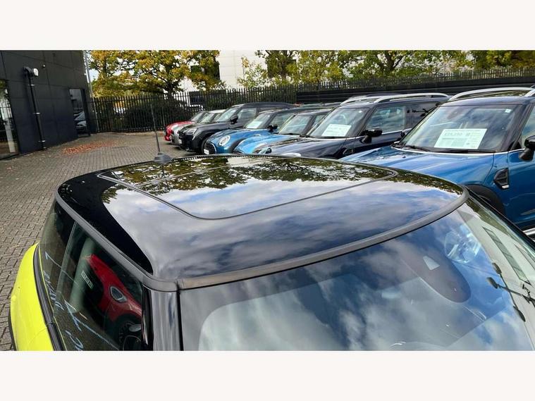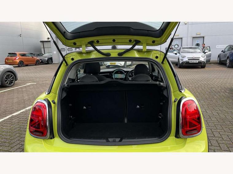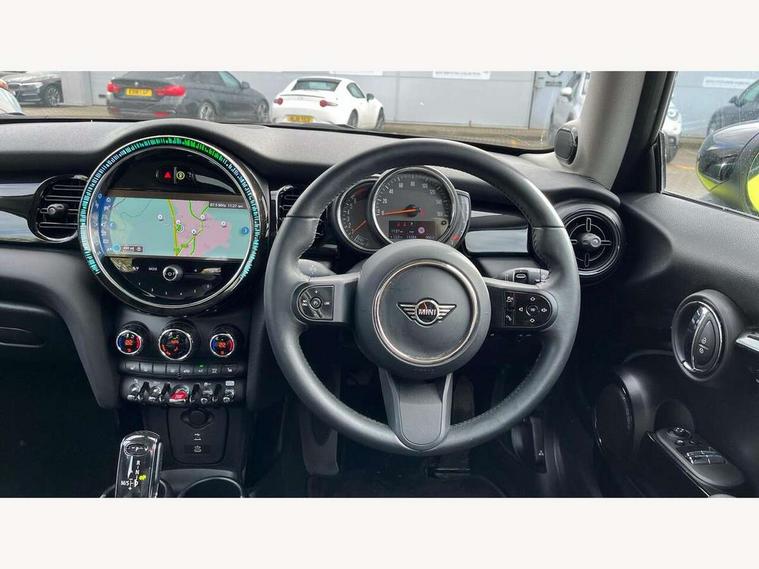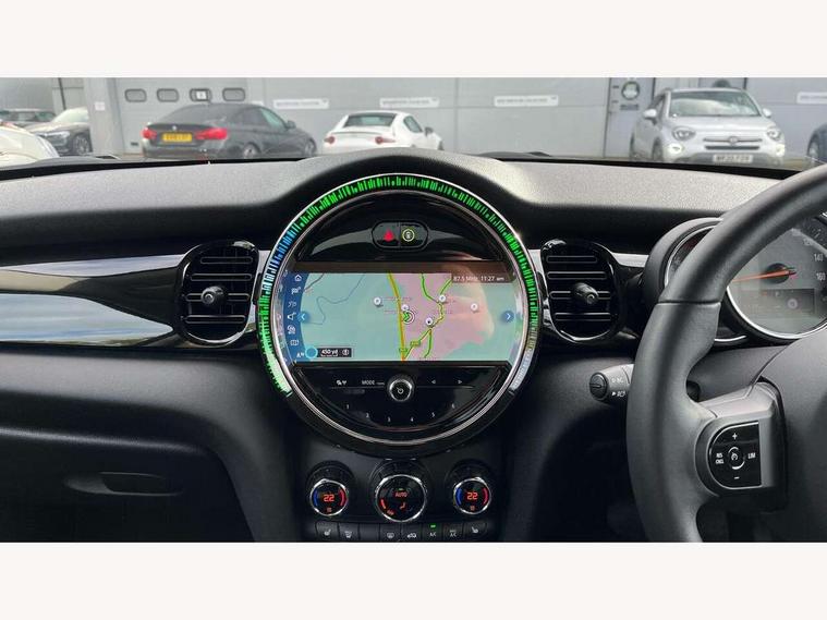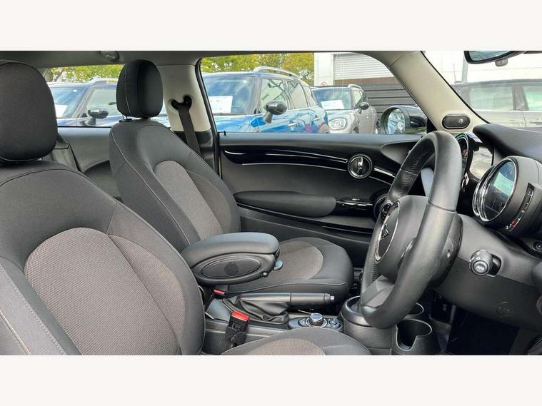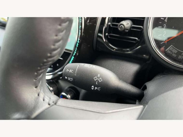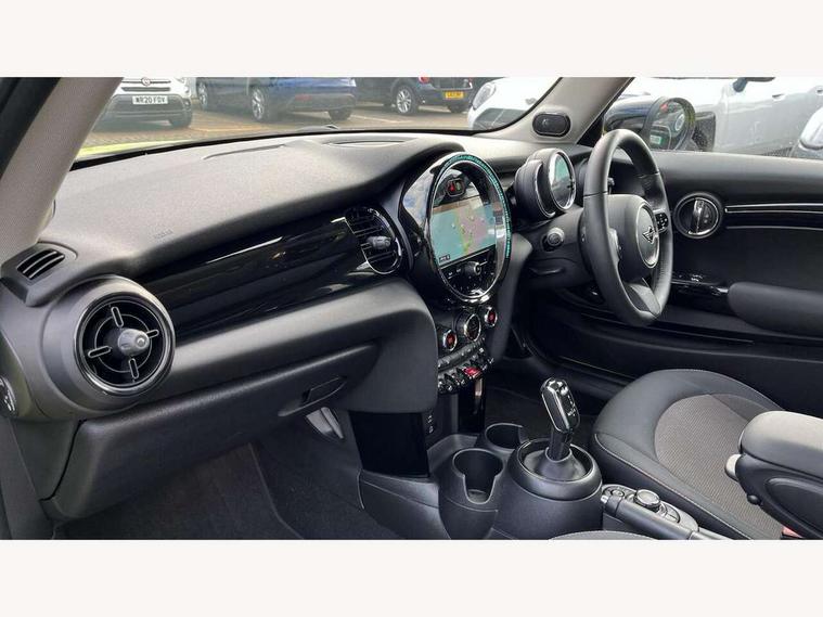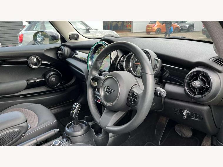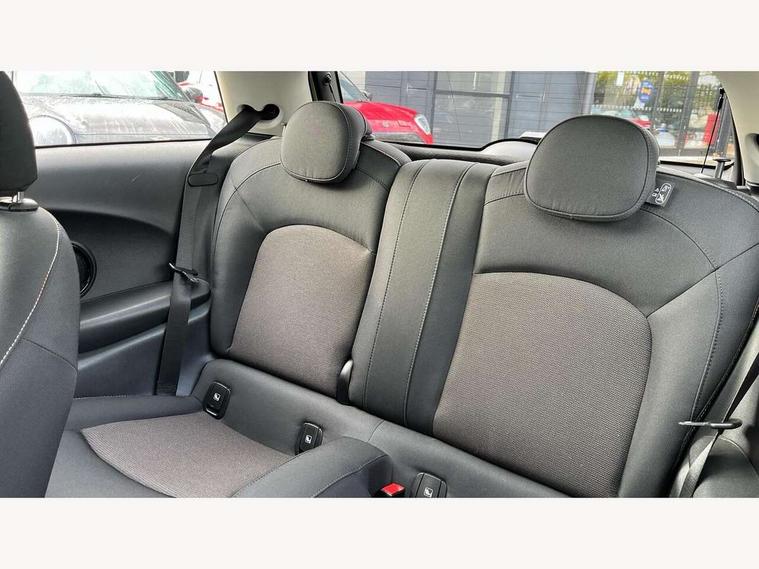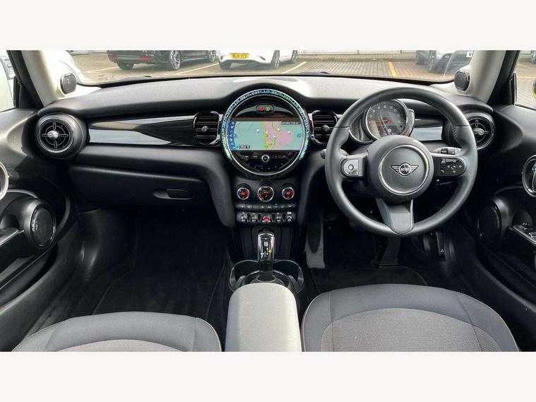 Apple CarPlay, Automatic start/stop function with brake energy recuperation, Compatible mobile phone bluetooth with audio streaming, Cruise control with brake assist, Electro-mechanical speed dependant steering assistance, Flexible car sharing preparation, Instrument cluster, Mini E-call, MINI TeleServices, On board computer, Service interval indicator, Double Vanos system, Fully variable valve control, High precision injection, Performance Control, Steptronic transmission with double clutch, 8.8" touchscreen with LED ring, FM tuner and DAB digital radio, 3rd brake light, Automatic headlight activation switch, Body colour fuel filler cap, Chrome border high gloss black slats radiator grille, Dynamic brake lights, Electric front windows, Exhaust tailpipe on left with chrome finisher, Heated rear window, Heated windscreen washer jets, LED headlight with closed ring and daytime driving lights, Metal door sill strips with MINI imprint, Model logo Cooper on right of tailgate, Rain sensor window wipers, Rear fog lights, Rear LED lights with union jack design, Rear window wiper, Side scuttle panel with integrated indicator, Sun/heat protection glass, White indicator lenses, 12V Accessory socket in centre console, 2 seat bench in 2nd row, 4 lashing eyes in luggage compartment, 60/40 split folding rear seat, Ambient lighting, Carbon black colour line - Knee roll and door armrest, Chrome interior highlights, Cupholders, Front and rear head restraints, Front and rear isofix with front passenger airbag deactivation, Front floor mats in velour, Glove compartment, Height and length steering column adjustment, Interior lighting with 12 different colours across the dashboard, underneath door bezel with illuminated laser-engraved design on central display, Leatherette gearshift lever and handbrake gaiters, LED reading lights, vanity mirror lights, front foot well light and spotlight on front seats, Manual air conditioning, Mechanical seat adjustment - forward/back & backrest for front seats and driver seat height adjust, Multifunction steering wheel, Passenger seat height adjuster, Satellite grey headlining including grab handles and clothes hooks, Single front passenger seat, Sport leather steering wheel with speed limiter and audio/communication controls, Storage compartments in doors, Sunvisors with vanity mirrors, 3 point seatbelts on all four seats, 6 Airbags - front, side, head and seat belt tensioners, Anti-lock braking system (ABS), DSC - Dynamic Stability Control, Front and rear disc brakes, Single tone fanfare horn, Tyre pressure monitoring system, Alarm system with tilt sensor, monitoring doors, bonnet interior and tailgate, Electronic vehicle immobiliser, Start/stop toggle with keyless go, Piano black interior trim, Tool kit, Tyre repair kit,