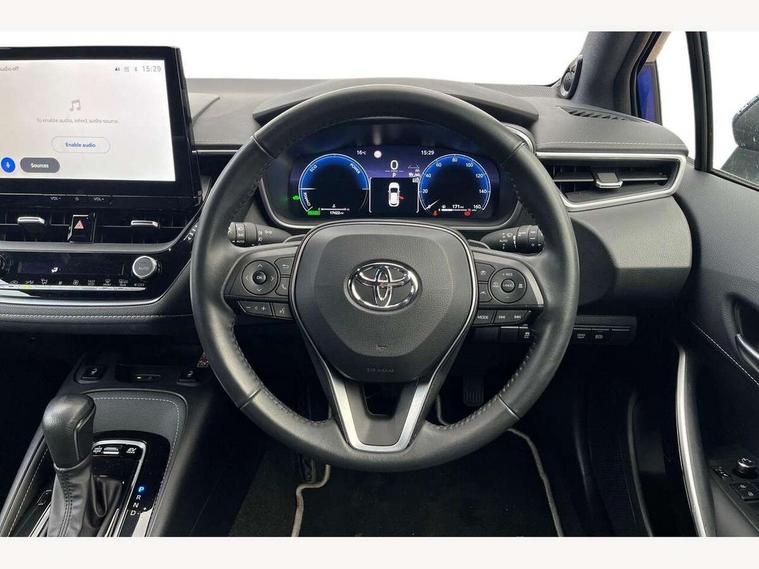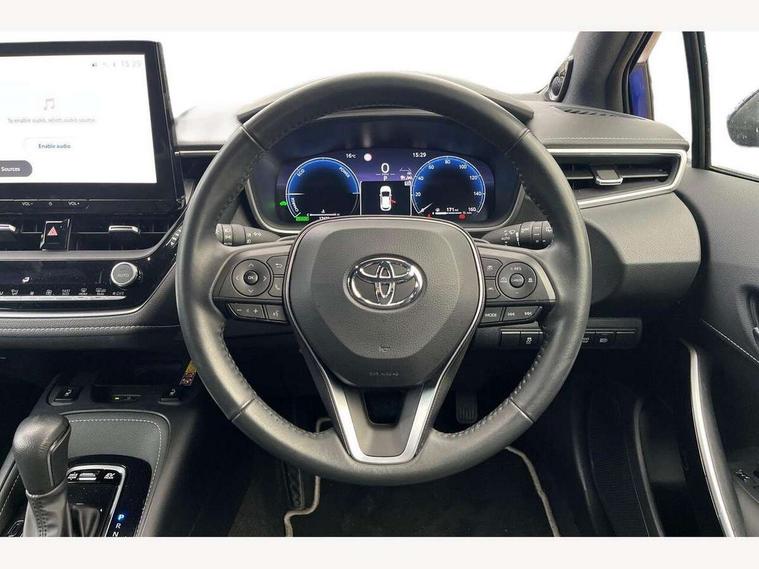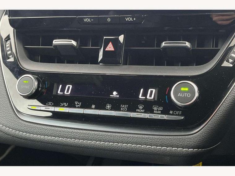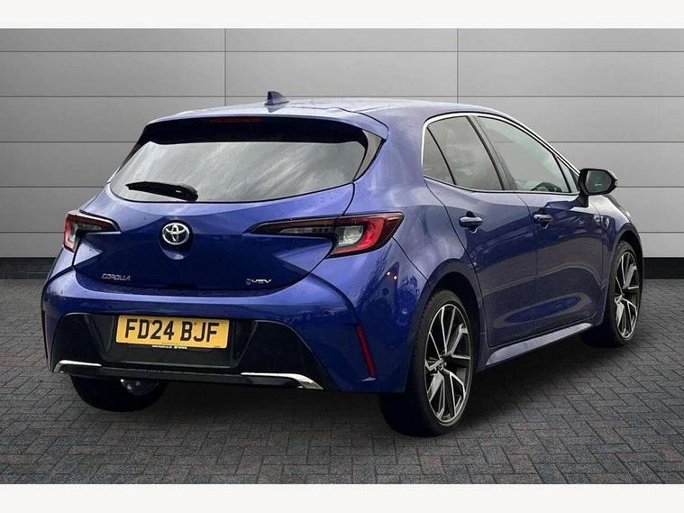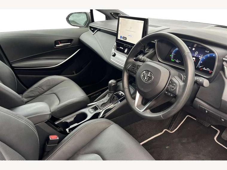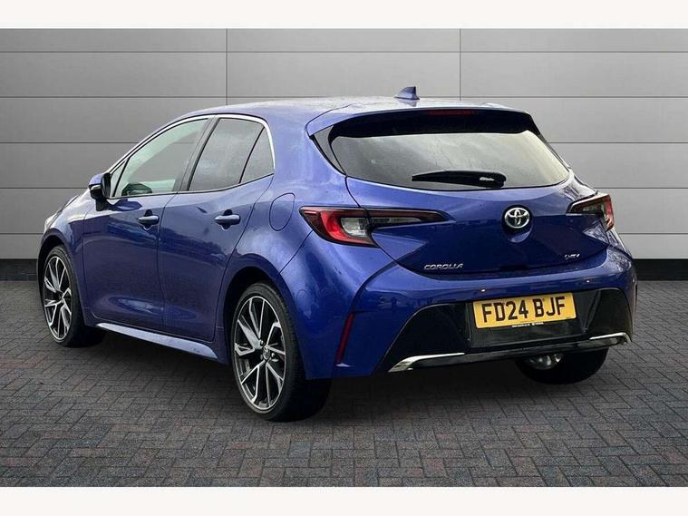 10.5" Multimedia display screen, Blind spot monitor and safe exit assist, Bluetooth telephone connectivity, Connected car functionality upgrade, tracker, remote status and e-care, Drive mode select (Eco, Normal), E-call, Electrically assisted power steering, EV drive indicator, Front and rear parking sensors with auto brake, Full Digital 12.3" TFT Digital Combimeter, Head up Display, Key reminder warning, Lane Departure Alert (LDA) switch on steering wheel, Memory on adjustable speed limiter, MyT connected services, Proactive driving assist (PDA), Rear cross traffic alert, Reversing camera, Smart entry and push button start, Smartphone integration with Apple CarPlay and wired android auto, Tailgate, Toyota remote services, Toyota smart connect navigation, Wireless charger, Gasoline particulate filter, Vehicle Stability Control (VSC), AM/FM radio, DAB Digital radio, Front USB-C in centre console, Front USB-C in dashboard, JBL Premium sound system with 8 speakers, Rear USB-C device charger, Smart voice assist/ Voice recognition, USB and Aux in connectors + 12V front outlet, Adaptive high beam system (AHS), Anti-jam protection on power windows, Auto headlight levelling system, Auto up and down function on all power windows, Automatic folding mirrors, Automatic headlights with high beam assist, Black centre and side air vents, Black metallic meshed front grille, Black toyota logo in front, Body coloured bumpers, Body coloured door mirrors, Body coloured front spoiler, Body coloured outside door handles, COROLLA alloy door scuff plates, Electrochromatic mirror, Follow me home headlights, LED daytime running lights, LED front fog lights, LED High mounted stop light, LED multi beam headlights, LED rear combi lights with LED lightguide, Noise reduction layer on windscreen, Piano black diffuser, Power adjustable heated door mirrors, Power front windows, Power rear windows, Privacy glass with UV filter, Rain sensing wipers, Rear bumper decoration with chrome plated inserts, Rear side wing doors, Rear under guard with chrome ornament, Rear window defogger, Rear window wiper, Reverse tilting door mirrors, Roof spoiler, Satin chrome insert on front air vents, Satin chrome insert on front door assist grips, Satin chrome inserts on rear passenger air vents, Shark fin antenna, Tailgate release with push button, Time adjustment on intermittent wiper, Turning signal integrated indicators in door mirrors, Unique grille pattern, Unique lower skirt, Unique side rocker with black insert, UV-filter on driver and passenger windows, 2 Shopping bag hooks in luggage compartment, 3 rear headrests, 3 seat bench in 2nd row, 3 spoke leather steering wheel with satin insert + gear knob, 4 tie down hooks in luggage compartment, 60/40 split folding rear seat, Adaptive cruise control (ACC) switch on steering wheel, Adjustable speed limiter switch on steering wheel, Audio, multimedia and telephone switches on steering wheel, Black armrest on centre console box, Black gear shift console, Boot light, Boot underfloor storage, Centre room light, Driver and front passenger personal light, Driver and passenger assist grip, Driver and passenger seatback pockets, Driver and passenger sun visor with mirror and light, Dual zone automatic air conditioning with ECO mode switch, Front and rear cup and bottle holders, Front door pockets, Front head restraints, Front passenger seat, Front sliding synthetic leather armrest, Heated seats, Illuminated entry system in room lamp, ISOFIX seat fixing (2 fixings on rear outer seats), Leather gear shift with satin chrome on gear shift console, Manual height adjustable for driver and front passenger seat, Manually tilt with sliding driver and front passenger seat, Nanoe-X air purifier, Paddle shifts, Parcel shelf, Perforated leather upholstery, Pollen filter, Power window switches with satin chrome inserts, Rear air conditioning, Rear armrest with 2 cupholders, Rear passenger coat hooks (2), Remote air conditioning, Satin chrome inside door handles, Satin chrome surround on heater control panel, Satin chrome surround on speedometer, Sliding armrest on centre console box, Slow opening glovebox with lights, Sports seats, Textile floor mats, Tilt/telescopic steering column, Voice recognition switch on steering wheel, Whiplash Injury Lessening (WIL) feature (active headrest) for seats, White ambient lighting on open tray and front cup holder, Toyota safety sense 3 pack - Corolla, 3x3 point rear seatbelts, Adjustable driver and front passenger seat belt extender to top anchor point, Anti lock braking system + Electronic brake force distribution, Brake assist function, Child locks on rear doors, Downhill Assist Control (DAC), Electronic parking brake, Emergency brake light signal (EBS), Front passenger airbag on/off switch, Front seatbelt reminder, HAC - Hill start assist control, Rear seat belt reminder, Seatbelt pretensioners and force limiters, Supplemental restraint system (SRS) 7 airbags - dual driver, dual side curtain, side impact and driver knee airbags, Traction control, Tyre pressure warning system, Acoustic vehicle alert system (AVAS), Alarm with motion sensor and immobilizer, Power passenger window lock, Remote central locking + deadlocks, Satin chrome dash trim, Soft touch texture on upper dashboard, Stitching on lower dashboard, Stitching on upper dashboard, 18" Dark grey machined face 5 double spoke alloy wheels, Tyre repair kit, Unique wheel finish with red wheel cap,