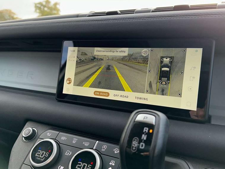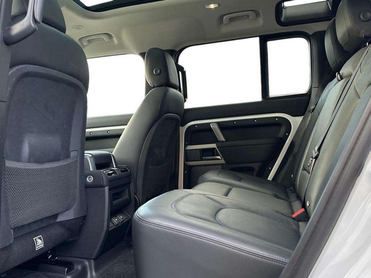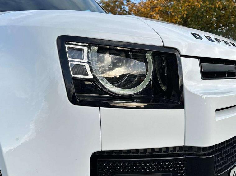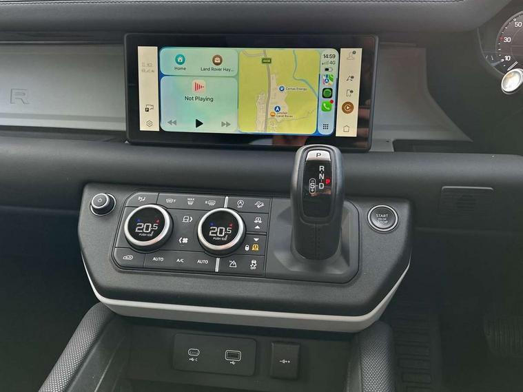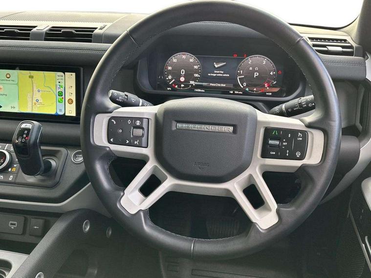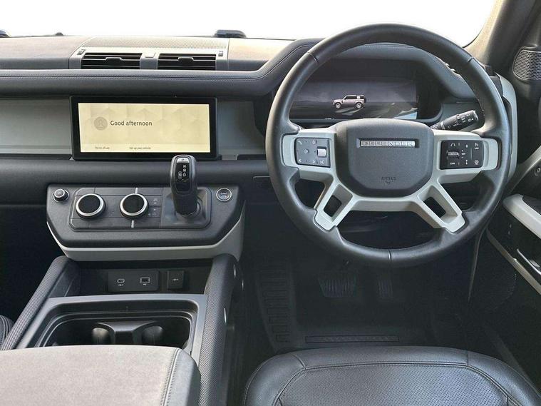 360 degree parking aid, 3D Surround Camera with 360 View, 180 Rear View, Front Traffic Detection, Forward Vehicle Guidance, Tow Hitch Assist and clear sight Ground View, Adaptive cruise control, Android Auto, Apple CarPlay, Assisted tailgate with soft close, Blind spot assist, Bluetooth system, Brake pad wear indicator, Clear exit monitor, Connected navigation pro, Driver condition monitor, Electric power assisted steering (EPAS), Interactive driver display, Lane keep assist, Push button start, Rear traffic monitor, Traffic sign recognition with adaptive speed limiter, Trip computer, Wade Sensing, 8 speed automatic transmission, All wheel drive system, Twin speed transfer box, DAB Radio (Digital Audio Broadcasting), Pivi pro connected, Auto dimming interior rear view mirror, Automatic headlight levelling, Automatic headlights, Centre high mounted stop light, Electric heated/power fold door mirrors with approach lights and auto dimming driver side, Electric windows with one touch open/close and anti-trap, Follow me home lighting, Heated rear window with timer, Heated windscreen, LED tail lights, Puddle lights, Rain sensing windscreen wipers, Rear fog lights, Rear side wing doors, Rear wiper, Side hinged tailgate, Trailer stability assist, 12V power socket in loadspace, 3 seat bench in 2nd row, Alpine lights, Configurable cabin lighting, Durable rubber cabin flooring, Durable rubber loadspace flooring, Footwell lights, Front passenger isofix child seat attachment, Loadspace cover, Loadspace Hook, Multifunction steering wheel, Overhead stowage for sunglasses, Premium cabin lighting, Rear headrests, Rear ISOFIX, Rear reading lights, Single front passenger seat, Standard seat configuration, Storage glovebox, Sunvisors with illuminated vanity mirrors, Online pack with data plan - Defender, 5 x 3 point seatbelts, ABS, Brake hold function, Cornering brake control (CBC), Customer configurable autolock, DSC - Dynamic Stability Control, EBD - Electronic brakeforce distribution, Electric parking brake (EPB), Emergency brake assist, Emergency braking, ESP + traction control, Front airbags with passenger seat occupant detector, HDC - Hill descent control, Hill launch assist, Low traction launch, Power operated child locks, Remote for (e-Call, Optimised assistance call, InControl app, Climate, beep and flash and door), RSC - Roll stability control, Seat belt reminder, TPMS (Tyre pressure monitoring system), Alarm, Immobiliser, Intrusion sensor, Keyless entry, Locking wheel nuts,