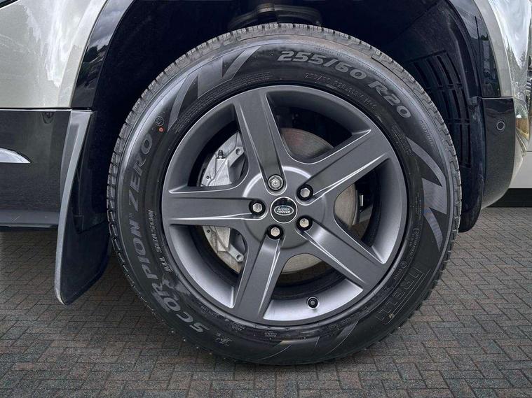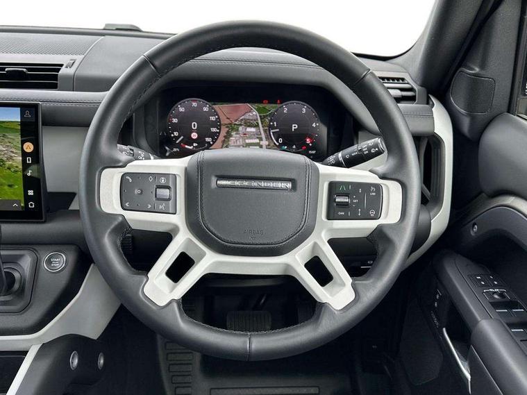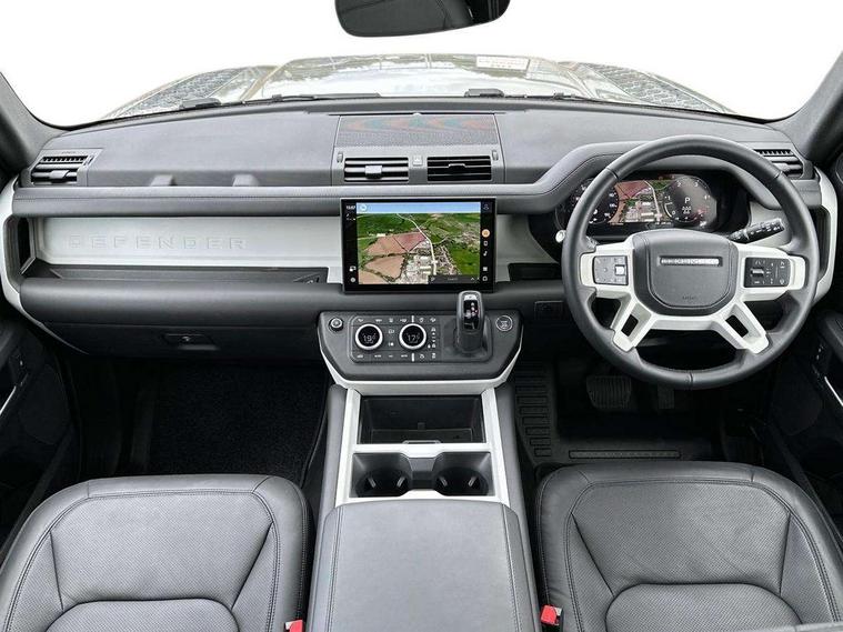 1 x USB-C (power only) & 1 x USB-C (power & data) in Row 1, 2 x USB-C in Row 2, 11.4" touchscreen, 2 x USB-C in Row 3, 360 degree parking aid, 3D Surround Camera with 360 View, 180 Rear View, Front Traffic Detection, Forward Vehicle Guidance, Tow Hitch Assist and clear sight Ground View, Adaptive cruise control, Android Auto, Apple CarPlay, Blind spot assist, Bluetooth system, Brake pad wear indicator, Clear exit monitor, Connected navigation pro, Driver condition monitor, Electric power assisted steering (EPAS), Interactive driver display, Lane keep assist, Push button start, Rear collision monitor, Rear traffic monitor, Traffic sign recognition with adaptive speed limiter, Trip computer, Wireless device charging, 8 speed automatic transmission, All wheel drive system, Twin speed transfer box, DAB Radio (Digital Audio Broadcasting), Meridian 700w surround sound audio system with 15 speakers, Pivi pro connected, Automatic headlight levelling, Automatic headlights, Black exposed rear recovery eyes, Body coloured bonnet, Centre high mounted stop light, Electric heated/power fold door mirrors with approach lights and auto dimming driver side, Electric windows with one touch open/close and anti-trap, Follow me home lighting, Front fog lights, Heated rear window with timer, Heated windscreen, Illuminated metal treadplates with brand name script, LED tail lights, Matrix LED headlights with signature DRL, Privacy glass, Puddle lights, Rain sensing windscreen wipers, Rear fog lights, Rear side wing doors, Rear wiper, Side hinged tailgate, Sliding panoramic roof, Standard tail door, Trailer stability assist, X-Dynamic badge, 12V power socket in loadspace, 2 seat bench in 3rd row, 3 seat bench in 2nd row, Alpine lights, Configurable cabin lighting, Durable rubber cabin flooring, Durable rubber loadspace flooring, Electric reach + rake adjustable steering column, Electrically adjustable steering column, Extended leather upgrade, Footwell lights, Front head restraints, Front passenger isofix child seat attachment, Heated steering wheel, Loadspace cover, Loadspace Hook, Multifunction steering wheel, No flat load floor storage, Overhead stowage for sunglasses, Rear headrests, Rear ISOFIX, Rear reading lights, Single front passenger seat, Soft close tail door, Storage glovebox, Sunvisors with illuminated vanity mirrors, Twin front cupholders, Air suspension pack - Defender SE/HSE/X-Dynamic SE/X-Dynamic HSE, Non-smoker package, Online pack with data plan - Defender, 7 three point seatbelts, ABS, Brake hold function, Cornering brake control (CBC), Customer configurable autolock, Driver and passenger airbags, DSC - Dynamic Stability Control, EBD - Electronic brakeforce distribution, Electric parking brake (EPB), Emergency brake assist, Emergency braking, ESP + traction control, Front airbags with passenger seat occupant detector, HDC - Hill descent control, Hill launch assist, Low traction launch, Power operated child locks, Remote for (e-Call, Optimised assistance call, InControl app, Climate, beep and flash and door), RSC - Roll stability control, Seat belt reminder, TPMS (Tyre pressure monitoring system), Alarm, Immobiliser, Intrusion sensor, Keyless entry, Locking wheel nuts, Secure tracker pro,