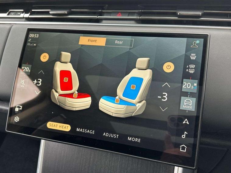 13.1" Touchscreen, 3D surround camera inc frwd traffic detection, vehicle clearance guidance, 3D view, clearsight ground view, manoevure light, 360 parking aid, wade sensing, All Terrain Info Centre, All wheel steering, Android Auto, Apple car play, Blind spot assist, Bluetooth connectivity streaming, Configurable programs, Driver condition response, Eco mode, Electric power assisted steering (EPAS), Emergency call service, Front and rear parking aid, Head up Display, Interactive driver display, Lane keep assist, Rear collision monitor, Rear traffic monitor, Remote, Traffic sign recognition with adaptive speed limiter, Wi-Fi Enabled with data plan, Wireless device charging with phone signal booster, 7 kW onboard charger, 8 speed automatic transmission, Active damper technology system, Adaptive dynamics, Adaptive off-road cruise control, All Wheel Drive (AWD), Automatic access height, Electronic active differential with torque vectoring by braking, Home charging cable 5m Mode 2 including plugs, Public charging cable 5m Mode 2 including plugs, Terrain Response 2 Auto, Twin speed transfer box, Digital Audio Broadcast radio-DAB, Pivi pro including smart settings, Connected navigation pro, nuance speech, USB socket, Acoustic laminated windscreen, Animated directional indicators, Automatic headlights, Automatic levelling headlights, Centre high mounted stop light, ClearSight interior rear view mirror, Electric windows with one touch open/close and anti trap, Engine cover, Flush deployable exterior door handles, Front and rear recovery eyes, Front fog lights, Headlamp power wash, Heated rear window, Heated washer jets, Illuminated metal treadplates with Autobiography script, Laminated front and rear side glass, LED tail lights, Power fold, auto-dimming, heated door mirrors with approach lights, Rain sensing windscreen wipers, Rear boot, Rear fog lights, Rear side wing doors, Side repeater indicators in mirror, Solar attenuating windscreen, Trailer stability assist, Winter wiper park position, 12V power sockets, 3 seat bench in 2nd row, Air quality sensor, Auto folding loadspace cover, Bright metal pedals, Cabin air purification pro, Cabin lighting, Customer configurable single point entry, Driver and passenger front seat armrests, Easy boot loading, Ebony Carpet, Electric rear side window sunblinds, Front and rear cupholders, Front and rear grab handles, Front head restraints, Gearshift paddles, Heated steering wheel, Hook in load space, Loadspace light, Luggage tie down in loadspace, Multifunction steering wheel, Rear centre armrest, Rear head restraints, Rear ISOFIX, Single front passenger seat, SV bespoke carpet mats, Twin blade sunvisors with Illuminated vanity mirrors, Upper and lower glovebox, Versatile loadspace floor in tailgate, Online pack with data plan - Range Rover, 3x3 point rear seat belts, Anti-lock braking system (ABS), Black brake calipers, Brake hold function, Cornering brake control (CBC), Customer configurable autolock, DSC - Dynamic Stability Control, Electronic brake force distribution, Electronic parking brake, Electronic traction control, Emergency brake assist, Emergency braking, Front airbags with passenger seat occupant detector, Front side airbags, Hill descent control, Hill launch assist, Illuminated seat belt buckles, Low traction launch, Occupant protection assist, Power operated child locks, Roll stability control, Tyre pressure monitoring system (TPMS), Immobiliser, Intrusion sensor and alarm, Keyless entry, Locking wheel nuts, Remote central locking, Noble chrome controls,