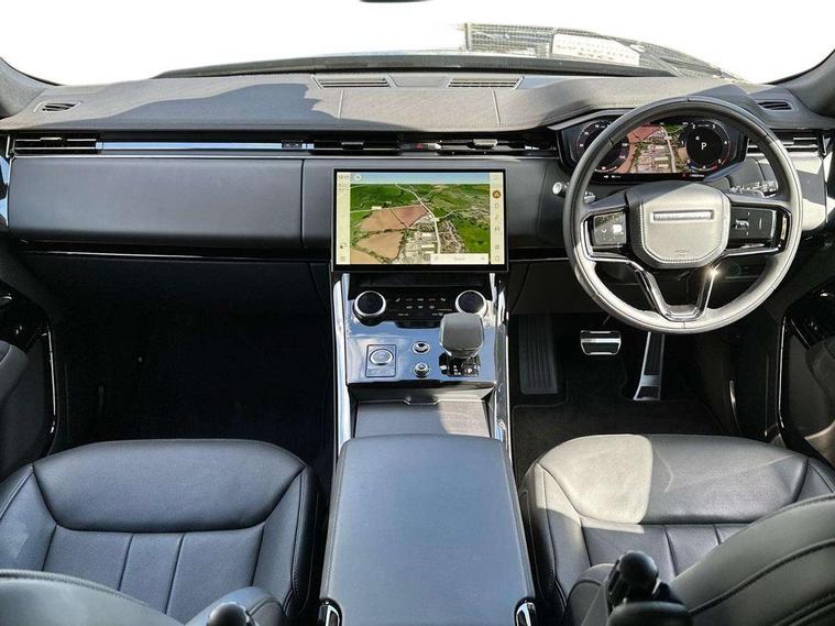 13.1" Touchscreen, 3D 360 degree surround camera with wade sensing, Adaptive cruise control with steering assist, Android Auto, Apple car play, Blind spot assist, Bluetooth connectivity streaming, Driver condition response, Eco mode, Electric power assisted steering (EPAS), Interactive Driver display instrument cluster, Lane departure warning system, Lane keep assist, Push button start, Rear collision monitor, Rear traffic monitor, Remote, Traffic sign recognition with adaptive speed limiter, Trip computer, Wireless device charging, 8 speed automatic transmission, Adaptive dynamics, All wheel drive system, Automatic access height, Dynamic air suspension, Terrain Response 2, DAB Radio (Digital Audio Broadcasting), Incontrol protect - SOS emergency call with automatic collision detection, optimised assistance call and Incontrol remote app essential, Pivi pro connected, USB/aux input socket, Adaptive brake lights, Automatic headlight levelling, Automatic headlights, Centre high mounted stop light, Electric heated/power fold memory door mirrors with approach lights and auto dimming driver side, Electric windows with one touch open/close and anti trap, Flush deployable exterior door handles, Follow me home lighting, Front and rear recovery eyes, Headlight power wash, Heated rear window, Heated washer jets, Heated windscreen, LED tail lights, Metal load space scuff plates, No badges, Rain sensing windscreen wipers, Rear animated directional indicators, Rear fog lights, Rear side wing doors, Rear wash/wipe, Remote window closing, Side repeater indicators in mirror, Trailer stability assist, Winter wiper park position, 3 seat bench in 2nd row, 60:40 seats with power recline and loadthrough, Air quality sensor, Auto air recirculation, Bright metal foot pedals, Centre console with armrest, Customer configurable single point entry, Driver's footrest, Easy boot loading, Ebony console door armrests and seatbelts, Electric adjustable steering column, Extended leather upgrade, Front and rear cupholders, Front door storage space, Front head restraints, Front map lights, Front seat back map pockets, Front stowage pocket, Front/rear passenger grab handles, Gearshift paddles, Heated steering wheel, Isofix child seat preparation, Loadspace cover, Loadspace Hook, Loadspace light, Loadspace mounting provisions, Lockable glovebox, Luggage tie-downs in loadspace, Multifunction steering wheel, Pollen filter, Power socket, Rear centre armrest, Rear head restraints, Rear ISOFIX, Single front passenger seat, Three 12V accessory power outlets, Upper secondary glovebox, Online pack with data plan - Range Rover Sport, 3 point seatbelts on all seats, Anti-lock braking system (ABS), Brake pre-fill technology, Configurable autolock, Cornering brake control (CBC), DSC - Dynamic Stability Control, EBD - Electronic brakeforce distribution, Electric parking brake, Electronic traction control, Emergency braking, Front seatbelt pretensioners, Front side airbags, Height adjustable front seatbelts, Hill descent control, Hill launch assist, Low traction launch, Occupant protection assist, Passenger seat occupant detector with front airbags, Power operated child locks, Roll stability control, Seatbelt warning, TPMS (Tyre pressure monitoring system), Immobiliser, Intrusion sensor, Keyless entry, Locking wheel nuts, Perimetric and volumetric anti theft alarm, Remote locking, Moonlight noble chrome interior finishers,