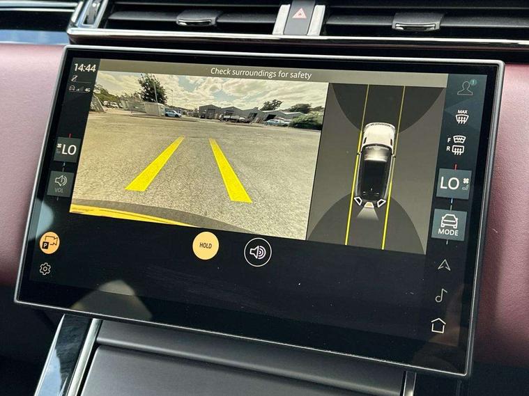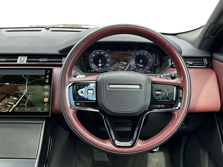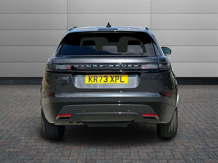Adaptive cruise control with steering assist, Android Auto, Apple CarPlay, Blind spot assist, Bluetooth connectivity, Brake pad wear indicator warning light, Driver condition monitor, eCall emergency call system, Front and rear parking aid, InControl remote, Land Rover InControl apps, Lane keep assist, Pivi pro with connected navigation, Rear collision monitor, Rear traffic monitor, Service indicator, Speed proportional electronic power assisted steering (EPAS), Traffic sign recognition with adaptive speed limiter, Trip computer, Voice control system, 8 speed automatic transmission, Adaptive dynamics, All terrain progress control, Open differential with torque vectoring by braking, Single speed transfer box, DAB radio, Steering wheel mounted controls, 3rd brake light, Acoustic laminated windscreen, Auto dimming interior rear view mirror, Automatic headlamp levelling, Automatic headlights, Black roof rails, Body coloured bumpers, Boot protection plate, Electric windows with one touch open/close and anti trap, Flush deployable exterior door handles, Follow me home headlights, Heated rear window with timer, Heated washer jets, Metal front tread plates, Metal load space scuff plates, Pixel LED headlights with signature DRL, Power fold, auto-dimming, heated door mirrors with memory and approach lights, Rain sensor windscreen wipers, Rear animated directional indicators, Rear fog lights, Rear side wing doors, Rear wash/wipe, Tailgate/boot lid spoiler, Trailer stability assist, Velar badge, 3 seat bench in 2nd row, Ambient lighting, Bright metal pedals, Carpet mats, Driver/passenger sunvisors with illuminated vanity mirrors, Ebony morzine headlining, Electrically adjustable steering column, Heated steering wheel, Isofix system on outer rear seats, Loadspace cover, Overhead lighting console, Overhead stowage for sunglasses, Passive front headrests, Rear air vents, Rear centre headrest, Single front passenger seat, Twin front cupholders, Twin sliding front centre armrest, Online pack with data plan - Velar, Power socket pack 2 - Velar, 355mm Front and 325mm Rear brakes, 3x3 point rear seatbelts, Anti-lock braking system (ABS), Cornering brake control, Curtain airbags, Customer configurable autolock, Door side intrusion beams, Driver airbag, DSC - Dynamic Stability Control, Electronic brake force distribution, Electronic parking brake, Electronic traction control, Emergency braking, Front and rear seatbelt reminder, Hill descent control, Hill launch assist, Low traction launch, Passenger airbag, Power operated child locks, Rear airbags, Roll stability control, Side airbags, Tyre pressure monitoring system (TPMS), Global lock and unlock switch on driver door, Immobiliser, Intrusion sensor, Keyless entry, Lock only switch on front passenger door, Locking wheel nuts, Perimetric alarm, Remote central locking,