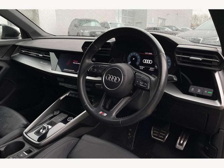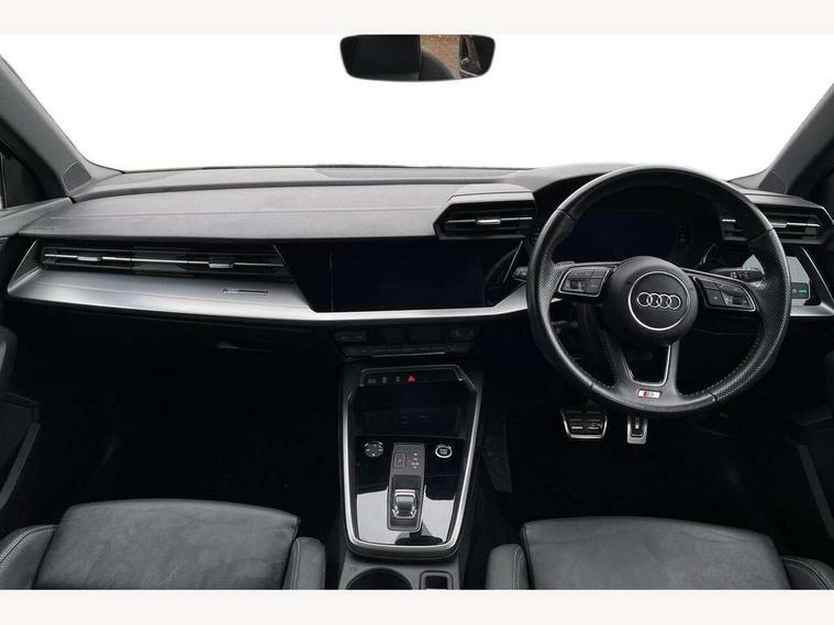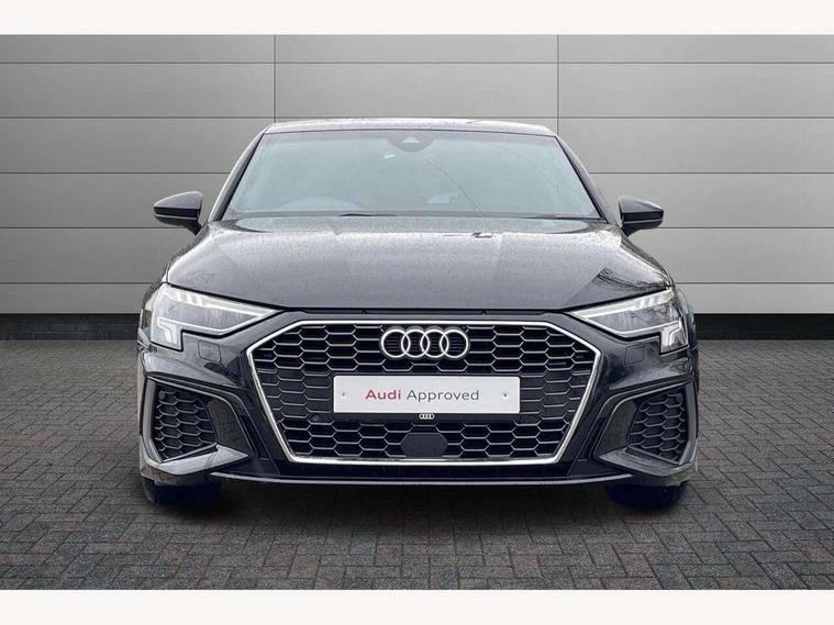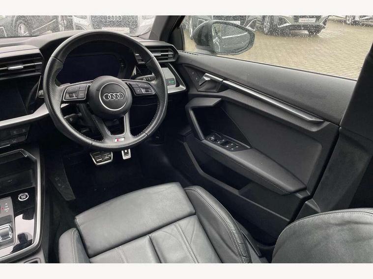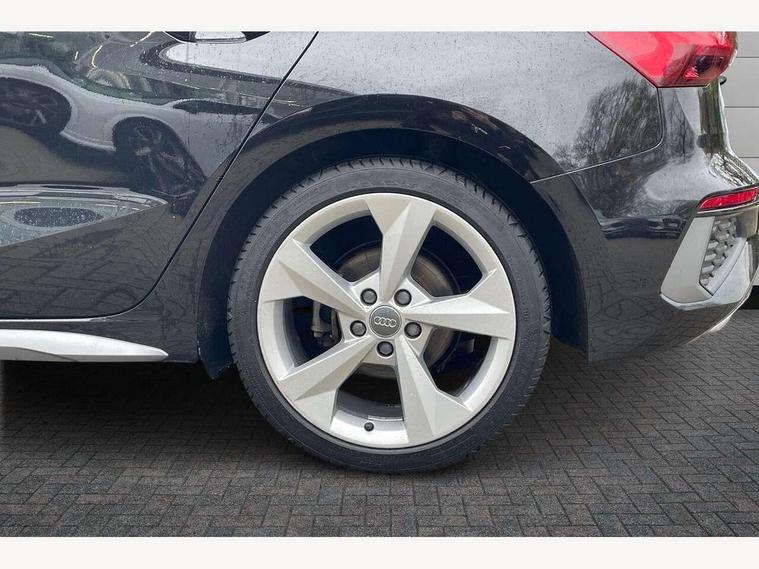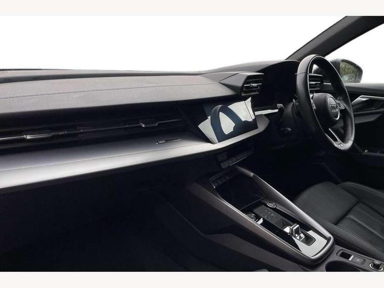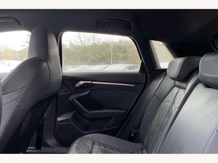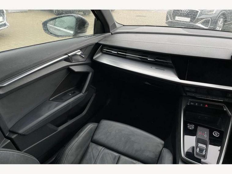 Audi connect emergency call and service, Audi drive select (Auto, Comfort, Dynamic, Efficiency and Individual), Audi smartphone interface, Audi Virtual Cockpit - 10.25" digital and colour instrument cluster, Automatic start/stop system with recuperation, Bluetooth interface, Collision avoidance assistant, Electromechanical power speed sensitive steering, Lane departure warning system, MMI Navigation Plus with high resolution 10.1" colour touch screen display, Service indicator, Trip computer, Voice control system with natural language interaction, 2xUSB-C connection with data and charging functions, 6 passive loudspeakers, DAB Digital radio, Acoustic glass windscreen, Aluminium window trim, Auto dimming frameless rear view mirror, Body colour exterior mirrors, Electrically adjustable/heated/folding/dimming door mirrors with kerb view includes integrated LED indications + kerb view function for passenger side, Front electric windows, Illuminated aluminium inserts front door sills with S logo, LED daytime running lights, Light and rain sensors, Privacy glass - dark tinted rear window, rear door and side windows, Rear electric windows, Rear side air outlets in grained matt black, Rear wiper, S line bumpers, S roof spoiler, 12V socket and storage compartment in front centre console, 40/20/40 split folding rear seat bench with cupholder, Black cloth headlining, Dual zone electronic climate control, Front and rear centre armrest in leather, Front and rear headrests, Front/rear floor mats, Height and reach adjustable steering wheel, Interior lighting - glove compartment light and right hand side, Luggage compartment floor covering, Manual boot compartment lid, Manually adjustable front seats, Seat side bolsters, Stainless steel pedals and front footrest, Twin leather upholstery with front sports seats S embossed logo, Aluminium interior elements pack - A3 Sportback, S line styling pack - A3 Sportback, 3x3 point rear seat belts, Driver and front passenger airbag with passenger airbag deactivation, Electronic Stabilisation Control (ESC) including ABS, ASR and EDL, First aid kit with warning triangle and 2 safety vests, Front side airbags with head airbags and interaction airbag, Hill hold assist, Pre-sense front with pedestrian and cyclist detection, Seatbelt monitoring, Tyre pressure loss indicator, Anti theft alarm, Anti-theft wheel bolts, Electronically operated child lock, Immobiliser, Remote control central locking, Accent surfaces in the dashboard and centre console in platinum grey silk effect paint finish, Dark spectrum aluminium inlays,