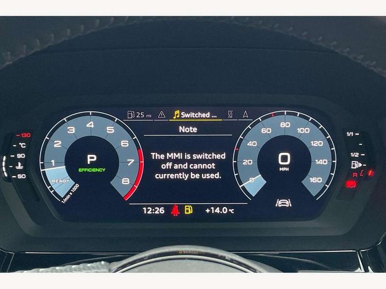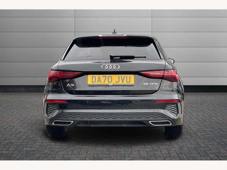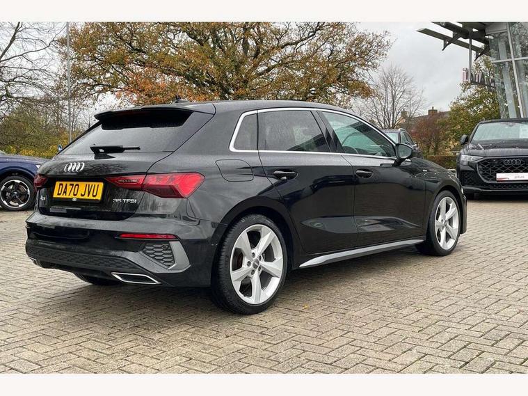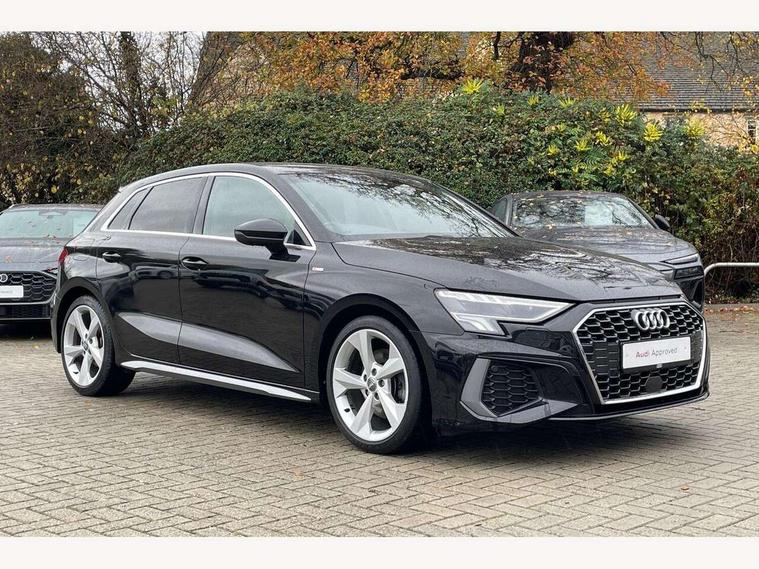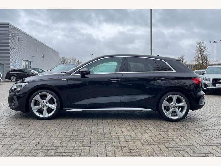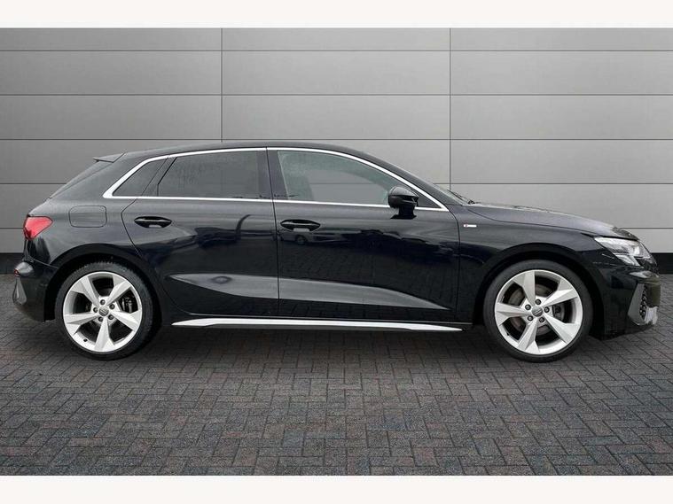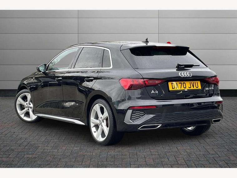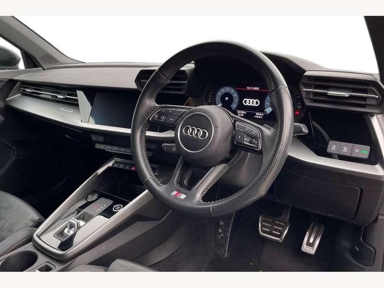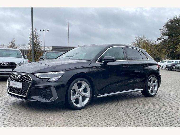 Audi connect emergency call and service, Audi drive select (Auto, Comfort, Dynamic, Efficiency and Individual), Audi smartphone interface, Audi Virtual Cockpit - 10.25" digital and colour instrument cluster, Automatic start/stop system with recuperation, Bluetooth interface, Collision avoidance assistant, Electromechanical power speed sensitive steering, Lane departure warning system, MMI Navigation Plus with high resolution 10.1" colour touch screen display, Service indicator, Trip computer, Voice control system with natural language interaction, 2xUSB-C connection with data and charging functions, 6 passive loudspeakers, DAB Digital radio, Acoustic glass windscreen, Aluminium window trim, Auto dimming frameless rear view mirror, Body colour exterior mirrors, Electrically adjustable/heated/folding/dimming door mirrors with kerb view includes integrated LED indications + kerb view function for passenger side, Front electric windows, Illuminated aluminium inserts front door sills with S logo, LED daytime running lights, Light and rain sensors, Privacy glass - dark tinted rear window, rear door and side windows, Rear electric windows, Rear side air outlets in grained matt black, Rear wiper, S line bumpers, S roof spoiler, 12V socket and storage compartment in front centre console, 40/20/40 split folding rear seat bench with cupholder, Black cloth headlining, Dual zone electronic climate control, Front and rear centre armrest in leather, Front and rear headrests, Front/rear floor mats, Height and reach adjustable steering wheel, Interior lighting - glove compartment light and right hand side, Luggage compartment floor covering, Manual boot compartment lid, Manually adjustable front seats, Seat side bolsters, Stainless steel pedals and front footrest, Twin leather upholstery with front sports seats S embossed logo, Aluminium interior elements pack - A3 Sportback, S line styling pack - A3 Sportback, 3x3 point rear seat belts, Driver and front passenger airbag with passenger airbag deactivation, Electronic Stabilisation Control (ESC) including ABS, ASR and EDL, First aid kit with warning triangle and 2 safety vests, Front side airbags with head airbags and interaction airbag, Hill hold assist, Pre-sense front with pedestrian and cyclist detection, Seatbelt monitoring, Tyre pressure loss indicator, Anti theft alarm, Anti-theft wheel bolts, Electronically operated child lock, Immobiliser, Remote control central locking, Accent surfaces in the dashboard and centre console in platinum grey silk effect paint finish, Dark spectrum aluminium inlays,