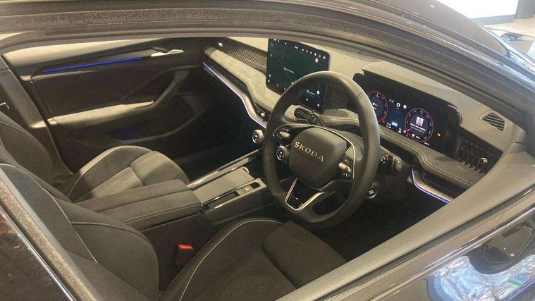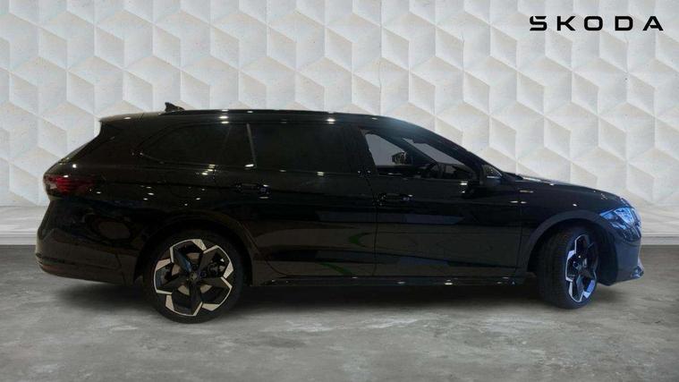 13" touchscreen display with satellite navigation, 4x USB-C ports (2x in front centre console and 2x in rear) (45W), Adaptive cruise control with speed assist, lane assist plus and traffic tram assist, Blind spot detection with door exit warning, Bluetooth system, CareConnect and Emergency Call, ChatGPT functionality, Drive mode selection, Driver fatigue sensor, Front assist with extended predictive pedestrian protection, Front cross traffic assist, PAS, Quick start all heating software functionality, Stop/start engine system, Traffic sign recognition, Turn assist with evasive assistance, Virtual Cockpit - 10.25" digital display, Voice control system, Washer for rear camera, Wireless charging for one smartphone (15W) with cooling function, Wireless smartlink apple carplay, SmartLink+ android auto, Dynamic chassis control plus with progressive dynamic steering, Mode 3 charging cable, DAB Digital radio, Display cleaner, FM radio connection, Web radio connection, Acoustic side windows and interior noise suppression, Backdrop lighting, Black exterior styling window and grille surrounds, Black roof rails, Body colour door handles, Dynamic range control with poor weather light and integrated fog light, Electrically adjustable, heated, folding and driver side auto-dimming door mirrors with memory function, integrated indicators and logo projection, Frameless auto-dimming rear view mirror with USB-C, Gloss black door mirrors, Ice scraper in fuel tank cap, LED 3rd brake light, Light assist with High beam control, Light assistant (coming/leaving home/tunnel light), Privacy glass, Rear fog lights (x2), Rear roof spoiler, Rear side wing doors, Rear windscreen wiper, Skoda lettering in black, Sportline badging, Sports bumpers, Windscreen wipers with rain sensor, 12V socket 1x centre console 1x boot, 14-way electrically adjustable, memory, front seats with 4-way pneumatic lumbar support, and extendable thigh support with smart comfort entry aid, 2x cargo elements in boot, 2x light in boot, 3 seat bench in 2nd row, 4x foldable bag hooks in boot, 60:40 Split folding rear seats, Aluminium pedals, Bottle holders in the front doors 1.5 litre bottle and rear 1.5 litre bottle, Cup holder in front with easy open mat, Front armrest with storage box, Front sports seats, Heated and ventilated front seats, Height adjustable front and rear head restraints, Illuminated glovebox, Interior lights with control switches, Isofix child seat fittings in outer rear and front passenger seats, LED front and rear reading lights, Single front passenger seat, Skoda lettering on steering wheel, Storage compartment with cover, Storage pockets on back of front seats, Sun visors with illuminated vanity mirrors, Ticket holder on A Pillar, Tri zone climate control, Umbrella in driver's door, Light and view package - Superb, Transport package - Superb Estate, 3 rear seatbelts, 8 Airbags - Front driver and passenger, front side driver and passenger, centre, curtain front and rear, drivers knee, Crew protect assist, Driver and passenger seatbelts with warning light, Electronic parking brake, ESC including ABS, EBV, MSR, ASR, EDS, HBA, DSR, RBS, CBC, multi-collision brake (MKB) and Auto hold, Hill hold assist, Power operated child lock in rear doors, Alarm with interior monitoring tilt sensor and back up horn, Backrest remote release from trunk, Electronic engine immobiliser, Keyless start/stop, Remote central locking with SAFE system, Third key, Walk away locking, Decorative front door sills, 19" Torcular polished black alloy wheels with anti theft wheel bolts, Tyre repair kit,