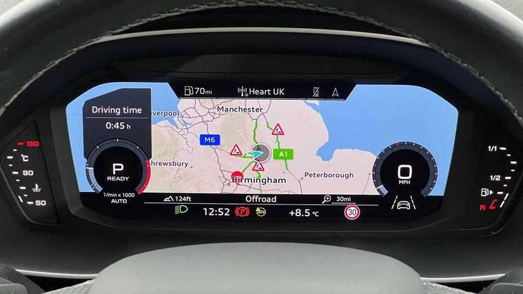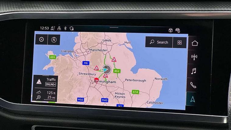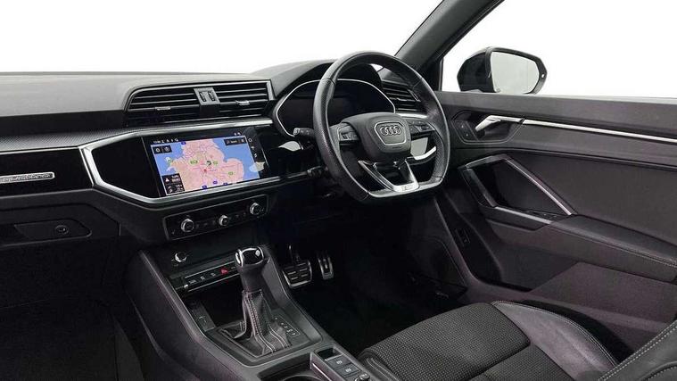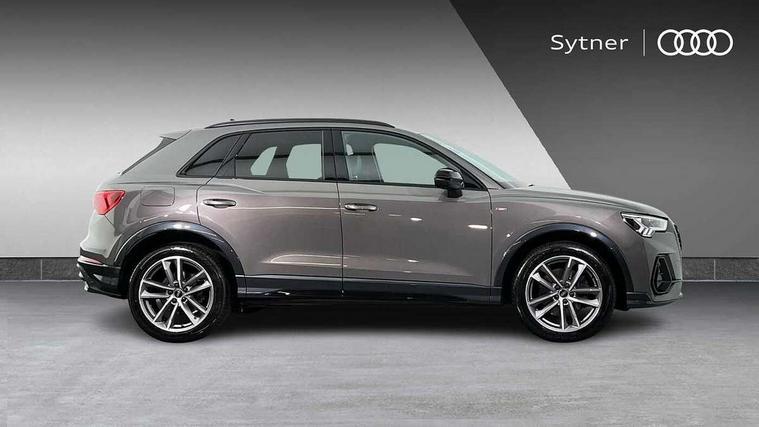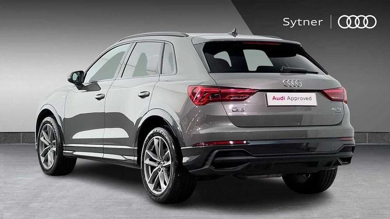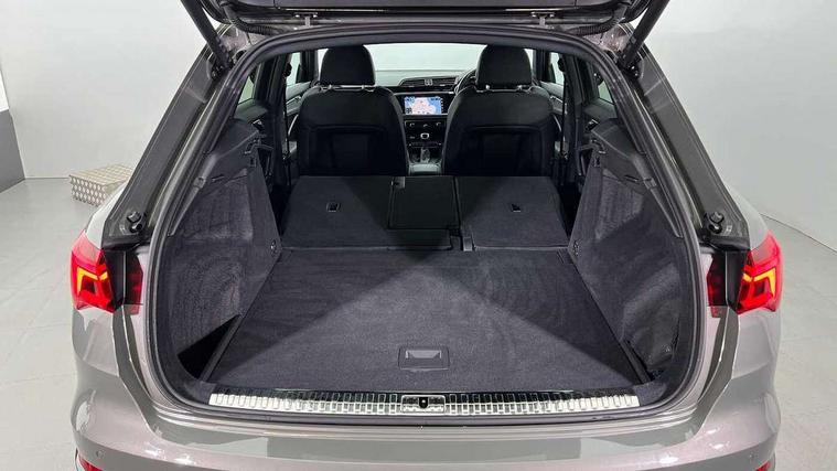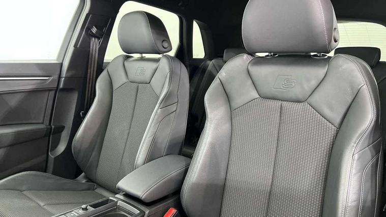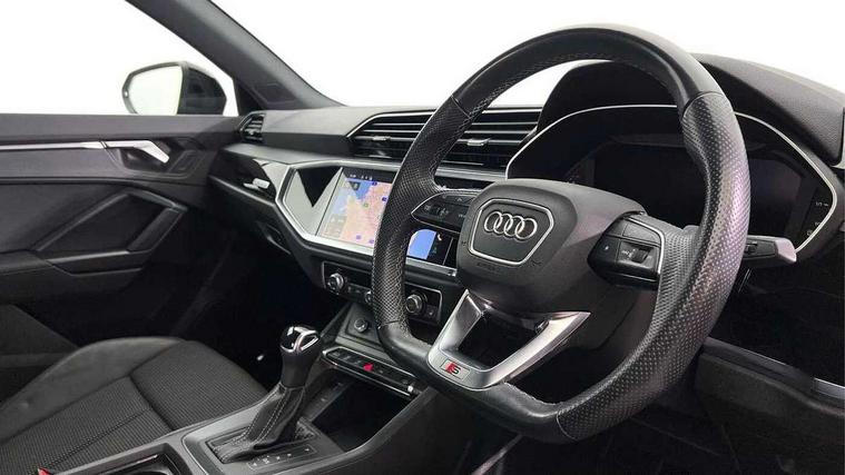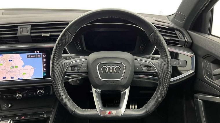 Amazon alexa Integration, Audi drive select, Audi lane departure warning, Audi smartphone interface includes wireless Apple carplay/Android Auto, Audi Virtual Cockpit - 10.25" display, Bluetooth interface, Camera based traffic sign recognition, Legal emergency call, MMI Navigation Plus with high resolution 10.1 inch touchscreen colour display, Power operated tailgate, Progressive steering, Service interval indicator, Start stop system with recuperation, Voice control system with natural language interaction, Diesel particulate filter, Sports suspension, 2 USB-C ports with charge and data functions, 6 passive loudspeakers, DAB digital radio module, Acoustic windscreen, Auto dimming frameless rear view mirror, Black roof rails, Electrically folding, adjustable and heated door mirrors with integrated LED side indicators and kerb view function for passenger side, Front and rear electric windows, Front fog lights, Grille vertical bars in aluminium silver/Matt, High gloss black finish B and C pillars, LED Dynamic rear indicators, LED headlights with LED daytime running lights, LED rear lights, LED third brake light, Privacy glass dark tinted rear and rear-side windows (from B-pillar backwards), Rain and light sensors, Rear diffuser grille in grained matt black, Rear diffuser strip in matt anthracite black, Rear side wing doors, Rear wiper, S line bumpers in contrasting Manhattan grey, Variable front intermittent wipers, 12V socket in rear centre console, 3 seat bench in 2nd row, 40:20:40 folding with manual adjustment for 60:40 forwards/backwards position and backrest angle, Adjustable rear seat bench/backrest with centre armrest and cupholder, Black cloth headlining, Dual zone electronic climate control, Front and rear black floor mats with contrast stitching in rock grey, Front and rear headrests, Front and rear roof module including reading lights, Front centre armrest, Glove compartment lighting, Height and reach adjustable steering wheel, Illuminated door sill trims with S logo, ISOFIX child seat mounting for front passenger with airbag deactivation and outer rear seat including top tether attachment point for outer rear seats, Luggage compartment light, Manual front seats with height adjustment, Perforated leather gearknob, Single front passenger seat, Stainless steel luggage compartment sill finisher, Stainless steel pedals, Ambient lighting pack - Q3, Black styling pack - Q3, Non smoking pack - Q3, 3x3 point rear seatbelts, 6 airbags - Driver, front passenger, curtain and side windows, Audi pre-sense front with pedestrain and cyclist recognition, Electrically operated child locks on rear doors, Electromechanical parking brake, Electronic stabilisation control including ABS, ASR and EDL, Front seatbelt reminder, Hill descent control, Hill hold assist, Pre sense basic, Seatbelt monitoring, Tyre pressure warning, Warning triangle and first aid kit, Anti theft alarm, Anti theft wheel bolts, Immobiliser, Remote central locking, Aluminium look interior elements, Detail dashboard around MMI touch colour display in glass look, black with surround in aluminium look, Leatherette door armrest, Piano black inlay, 19" 5 twin arm design diamond cut audi sport alloy wheels in matt grey look,