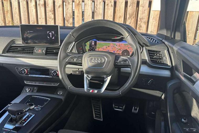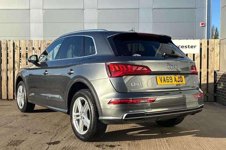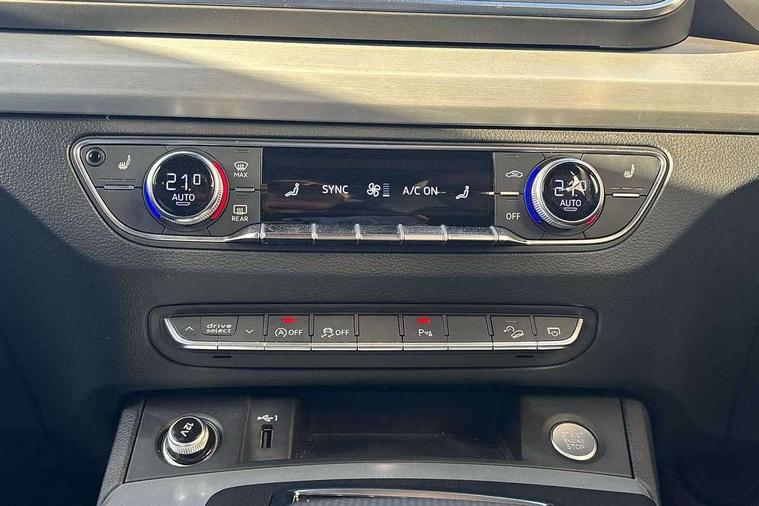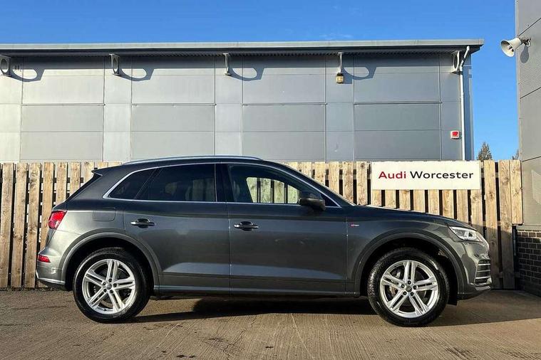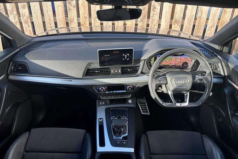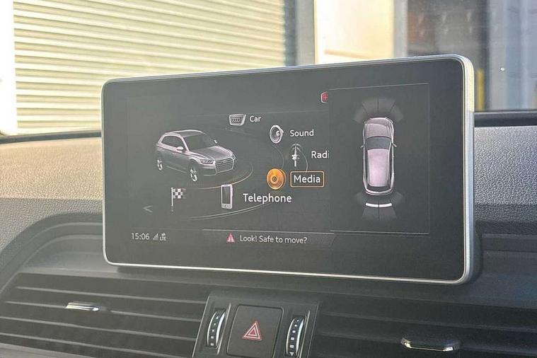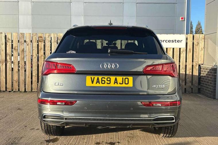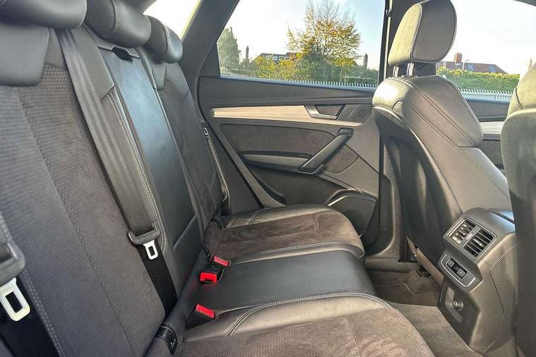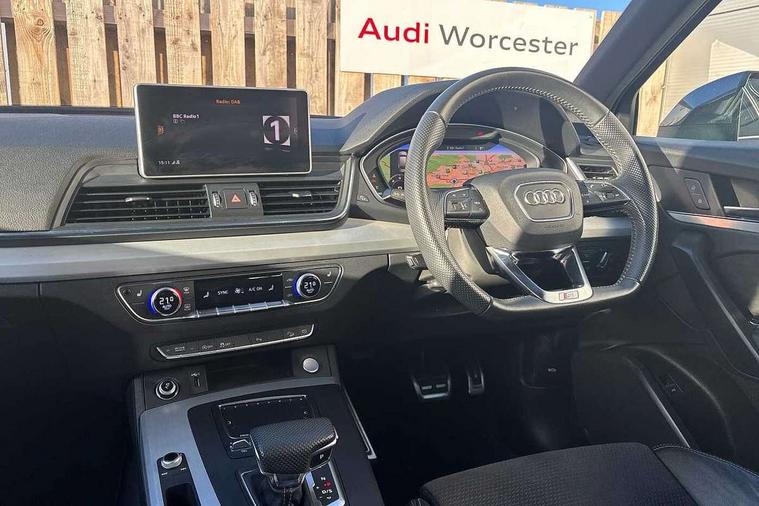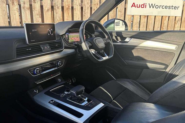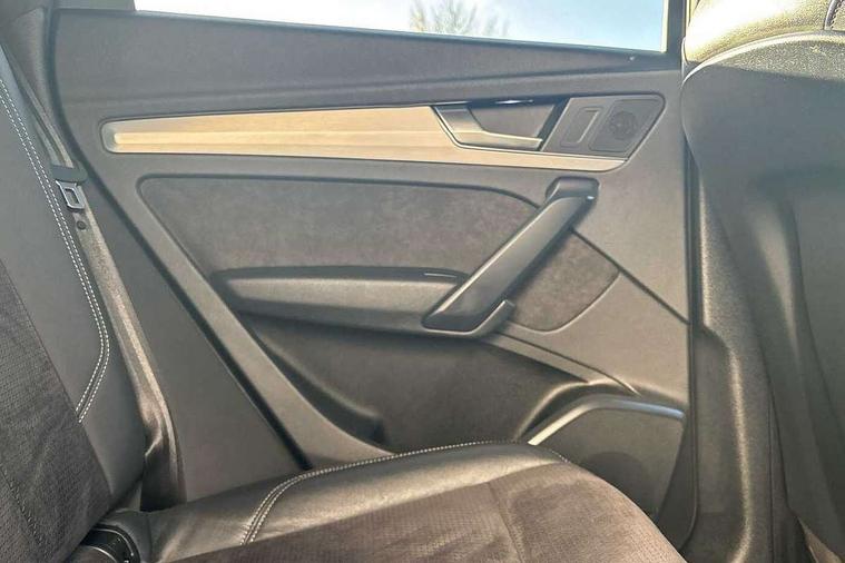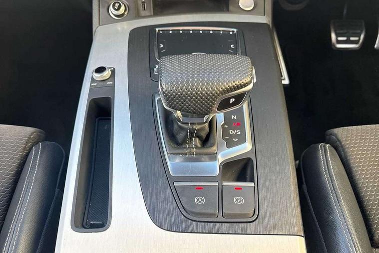 Matt brushed aluminium inlays, High gloss pack - Q5, LED interior light pack - Q5, Non Smokers pack, Anti theft alarm, Anti-theft wheel bolts, Keyless Go access/ignition system, Remote central locking, 2x SD card slot, CD player, DAB Digital radio, MMI radio plus with 7" colour MMI screen and MMI controller, 3 point seatbelts on all seats, 6 airbags - Driver, front passenger, curtain and side airbags, Electromechanical parking brake, Electronic stabilisation control including ABS, ASR and EDL, Front passenger airbag deactivation, Hill descent control, Hill hold assist, Multi collision brake assist, Pop-up bonnet for pedestrian protection, Pre sense city, Seat belt force limiter, Seatbelt monitoring, Tyre pressure warning, Warning triangle and first aid kit, Acoustic windscreen, Air inlets in matt titanium black with blades in matt aluminium silver, Aluminium roof rails, Auto dimming rear view mirror, Automatic headlight levelling, Body colour bumpers, Body colour door mirrors, Body colour rear diffuser with matt aluminium silver surrounds, Body colour S Line side skirts, Body colour underbody protection, Chrome exhaust tailpipe, Electric adjustable/heated/folding door mirrors, Front and rear electric windows, High beam assistant, LED headlights with LED rear lights + dynamic rear indicators, Light and rain sensor for auto activation of lights and windscreen wipers, Loading sill protector in stainless steel, Privacy glass with front acoustic glazing, Rear wiper, S front and rear bumpers, S Line badges on the front wings, S Line rear spoiler, Twilight grey matt radiator grille with matt aluminium horizontal chrome struts, 2 x USB charging port with aux input socket, 3 rear headrests, 40:20:40 split folding rear seat with rear centre armrest, Black cloth headlining, Contrast stitching on seats, steering wheel and gear lever gaiter, Deluxe 3 zone electronic climate control, Front centre armrest, Front sport seats with S embossed logo, Front/rear floor mats, Heated front seats, Height adjustable front head restraints, Height/reach adjustable steering column, Illuminated door sill trims with S logo, ISOFIX child seat mounting and top tether, Luggage compartment carpet, Manual seat adjustment with 4-way electric lumbar support, Perforated leather gearknob, Removable luggage compartment floor, Stainless steel pedals, Sunvisors with vanity mirrors, Tool kit, Trunk roller cover, 7" Colour driver information system, Audi connect safety and service (e-call), Audi drive select, Audi parking system plus with front and rear sensors, Audi Pre sense collision avoidance, Audi smartphone interface, Automatic start-stop system with coasting functionality and efficiency programme, Cruise control + speed limiter, Electro - mechanical power assisted steering, MMI Navigation, Mobile telephone preparation - bluetooth interface, Power tailgate, Service interval indicator, Voice control system, Diesel particulate filter, Dynamic suspension, Quattro on demand,