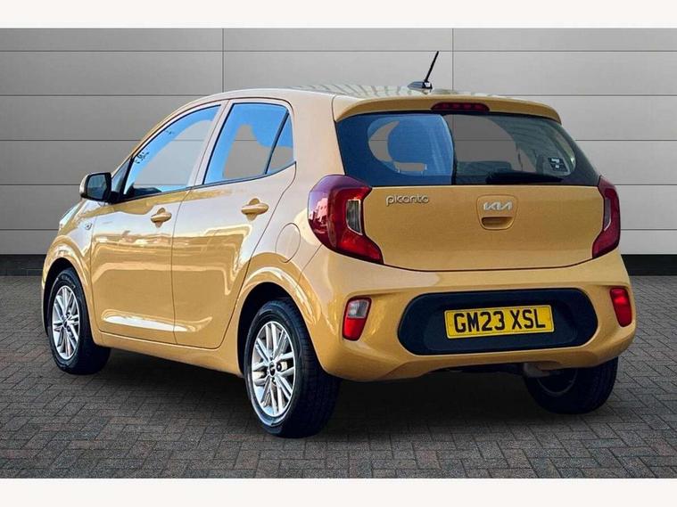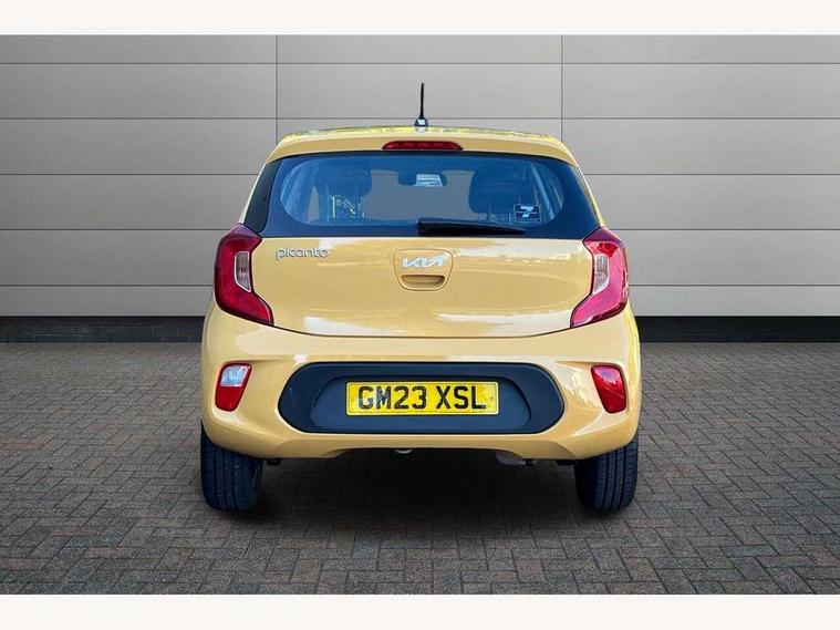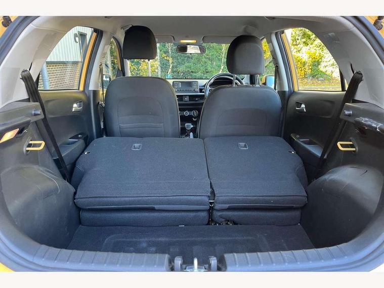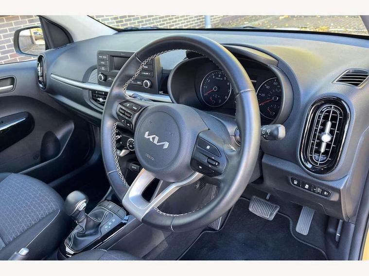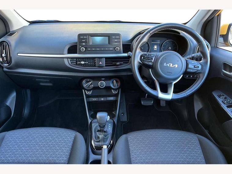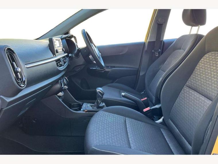 3.8" monochrome audio display with RDS and DAB, 4.2" supervision monochrome cluster display, Emergency call service, Emergency stop signalling system, External temperature gauge, Forward Collision-Avoidance Assist (FCA) - City, Motor driven power steering, Tachometer, Tailgate, Trip computer, 4 speaker audio system, Bluetooth with music streaming, Steering wheel mounted controls, USB ports for connection of a media device, Automatic headlight control system, Black radiator grille with chrome surround, Body colour bumpers, Body colour mirrors and door handles, Day/night rear view mirror, Daytime running lights, Electric adjustable heated door mirrors, Front and rear electric windows with drivers's auto up/down function, Headlamp levelling, Heated rear window, High mount brake light, MFR - Multi Focus Reflector halogen headlights with black bezel, Rain sensor, Rear fog lights, Rear side wing doors, Rear wash/wipe, Speed variable front wipers, Tinted glass, Visible VIN plate, Welcome and follow-me home light functionality, 1 x rear coat hook, 12V power point front, 2 seat bench in 2nd row, 3 x passenger assist grips, 60/40 split/folding 2nd row of seats, All round height adjustable headrests, Cupholders in centre console, Driver and front passenger sunvisor with vanity mirror, Driver seat height adjust, Front cabin lights, Glovebox, High gloss lower centre fascia trim, door armrest and air vents, ISOFIX Child seat top tethers and anchor fixings, Leather trimmed steering wheel and gearshift, Luggage area light, Luggage area parcel shelf, Manual air conditioning, Passenger front seatback pockets, Premium cloth upholstery, Silver paint finished interior door handles, Single front passenger seat, Slide/reclining front seats, Tilt adjustable steering wheel, Advanced Driver Assistance Pack - Picanto, 2 x 3-point rear seatbelts, ABS/EBD, Automatic unlocking of doors in case of impact, ESC + BAS + VSM + HAC, Front passenger airbag cut-off switch, Front seatbelt height adjusters, Front seatbelt pretensioners, Hill hold control, Hill start assist control (HAC), Knee airbags, Rear child proof door locks, Seatbelt warning, Side impact protection, Torque vectoring brake based and straight line stability (SLS), Traction control, Twin curtain airbags, Twin front airbags, Twin front side airbags, Tyre pressure monitoring system, Anti theft alarm, Engine immobiliser, Folding key, Locking wheel nuts, Remote central door locking, 14" alloy wheels, Tyre mobility kit,