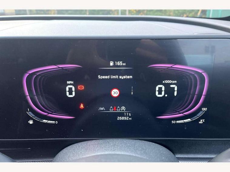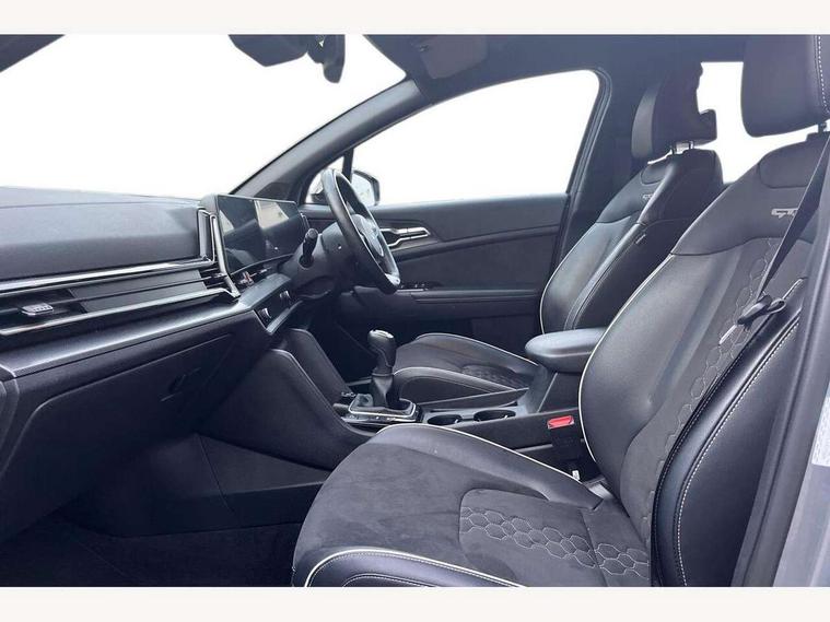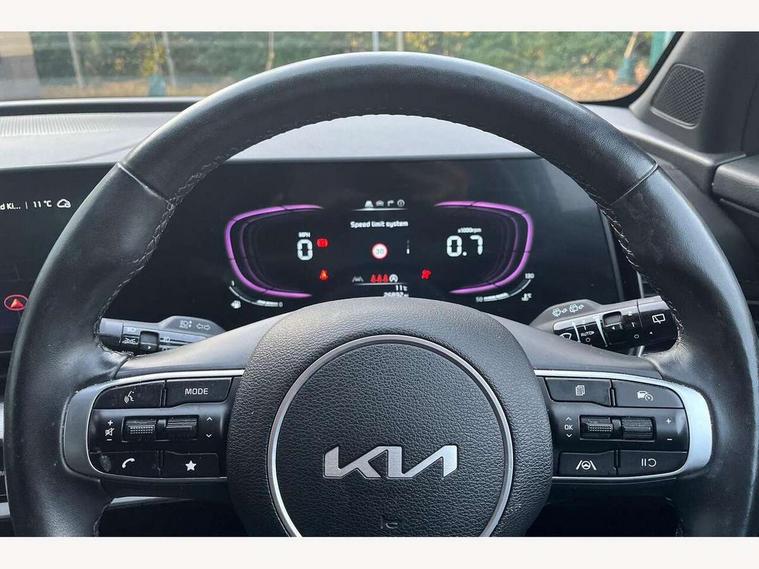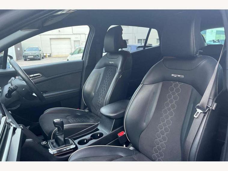 12.3" Display with navigation, 4.2" supervision colour cluster display, Apple car play/Android Auto with voice control, Cruise control + speed limiter, Drive mode selector, E-call, Forward collision avoidance assist (FCA) - city/pedestrian/cyclist/junction covering, Front and rear parking sensors, Intelligent speed limit assist, Kia Connect (UVO), Lane Following Assist (LFA), Lane keep assist, Low washer fluid warning, Rear view monitor, Reversing camera system integrated into centre fascia screen, Speed sensitive power steering, Trip computer, Windscreen washer level indicator, Intelligent Stop and Go, 6 speaker audio system, Bluetooth audio streaming, DAB Radio with MP3, Rear USB port, Steering wheel mounted audio controls, USB C type charging ports on centre console, USB C type charging ports on side of front seats, USB port for connection of a media device, All round electric windows with drivers and front passenger auto up/down function, Automatic headlight control system, Automatic window defogger, Backlite glass heated with timer, Black bumpers, Body colour and black bumper with silver accents, Body colour exterior door handles, Body colour radiator upper garnish and door garnish, Electrically adjustable/heated/folding door mirrors with LED indicators, Front and rear chrome skid plates, Gloss black door mirrors, Gloss black radiator grille, Gloss black side sill and wheel arch body mouldings, Glossy black roof rack, High beam assist, Interior electrochromic mirror, LED daytime running lights, LED front fog lamps, LED headlamps (low and high beam - MFR type), LED High mounted stop light, LED rear combination lamp, Rain sensing wipers with aero blades, Rear fog lamp, Rear privacy glass, Rear side wing doors, Rear spoiler, Rear wiper, Satin finished beltline, Silver coloured inserts to bumpers, Tinted rear glass, Trailer stability assist, 12V power socket in front centre fascia and luggage compartment, 2nd row personal lamps, 3 seat bench in 2nd row, 3 x passenger assist grips, 40/20/40 split folding rear seat, All-round height adjustable headrests, Black headlining, Centre console storage box, Cupholders in rear armrest, D-Shaped sports leather steering wheel and perforated inserts with GT-Line logo, Door courtesy lamps, Drink holder at centre armrest, Driver and front passenger side sunvisors with illuminated vanity mirrors, Driver's seat manual height adjust, Drivers seat power lumbar support, Front and rear door storage, Front seat and rear pockets, Front/rear centre armrests, Gear shift indicator, Glovebox illumination, Heated front seats, Heated steering wheel, Interior door lock/unlock function, ISOFIX Child seat top tethers and anchor fixings outer rear seats, Luggage area light, Luggage area load cover, Luggage net with hooks, Metal paint interior door handles, Overhead console lamp, Rear cabin light, Rear coat hooks, Single front passenger seat, Sports pedals, Suede leather upholstery, Three zone climate control, Tilt/telescopic adjustable steering wheel, Ventilation ducts to rear compartment, Active front headrests, All round 3-point seatbelts, Anti-lock braking system (ABS), Dual front side airbags, Dual horn, Electronic parking brake, Electronic stability control with downhill brake control, Front passenger airbag cut-off switch, Front seatbelt pretensioners + load limiters, Height adjustable front seatbelts, Hill start assist control (HAC), Impact sensing auto door unlocking, Multi collision brake assist, Rear door child safety locks, Rear seat alert system, Traction control, Twin curtain airbags, Twin front airbags, Tyre pressure monitoring system, Advanced anti-theft system including immobiliser and alarm, Door deadlocks, Engine Start/Stop Button with Smart Entry System, Locking wheel nuts, Speed sensitive auto door locking, Visible vehicle identification number, Aluminium pattern finish centre fascia and door garnish, 19" GT-Line alloy wheels, Tyre mobility kit,