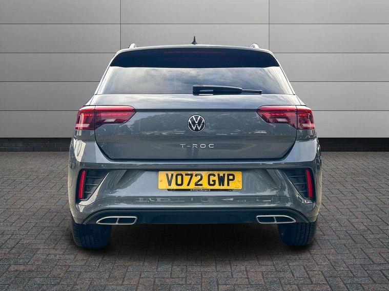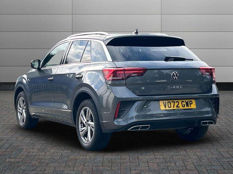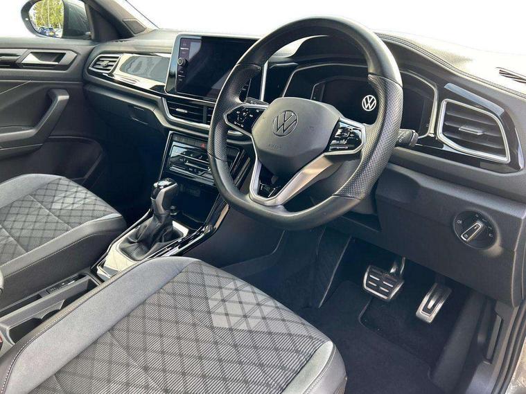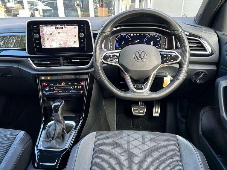 10.25" Digital cockpit pro, Bluetooth mobile phone interface, Driver alert system with fatigue detection, Driver tips and journey analysis, Emergency call service, Lane keeping system Lane Assist, Modified key software - reduce switch off time for key status change to Long no motion, Online services, Park assist including front and rear parking sensors, Service interval indicator, Tailgate/trunk lid release from outside, Think blue trainer driver tips and journey analysis, Warning sound and light for front seatbelts unfastened, Wireless app connect, Battery regeneration during braking, Start/stop function with battery regeneration, Diversity antenna for FM reception, Front and rear 6 speakers, Music playback - MP3, WMA and AAC files, Premium USB cable in choice of either Apple or Android smartphone compatibility, SD card slot, Simultaneous pairing of 2 compatible mobile devices, Title and cover art display, We Connect and We Connect Plus functionality, 3rd brake light, Auto dimming interior rear view mirror, Automatic hazard lights activation under emergency braking, Automatic headlight control with LED separate daytime running lights with coming/leaving home function, Extended roof spoiler, Exterior mirrors aspherical on driver side, convex on front passenger side, External USB type C socket and charging sockets, Front windscreen wiper with intermittent wipe and 4 position delay, Heated rear window, LED Plus headlamps, LED rear combination lamps, LED rear number plate lights, LED tail lamp rear comination lamps, Power windows with comfort operation and circuit breaker, R-Line design body coloured bumpers, Rain sensor, Rear exhaust tailpipe, Rear fog light on one side and reversing lights on both sides, Rear side wing doors, Rear wash/wipe with intermittent wipe setting, Remote electrically foldable door mirrors, puddle lights and reverse activated passenger's door mirror, 12V power socket in centre console, 3 rear head restraints, 3 seat bench in 2nd row, 4 load lashing points in luggage compartment, Air care climatronic air conditoning system with active combination filter and 2-zone temperature control, Black roof lining, Chrome plated radiator grille inserts, air vent surrounds and light switch surrounds, Door and side trim panel with leatherette insert, Drawer under drivers seat, Front + rear carpet mats, Front centre armrest, Front cupholders x 2, Front footwell illumination, Front reading light, Front scuff plates with R logo, Instrument lighting, white adjustable panel illumination, Interior ambient lighting and surround lighting, Interior light delay, Isofix child seat preparation, Leather gearshift handle, Load-through provision with cup holder when folded down ('Unsplit rear seat bench, split folding backrest, with centre armrest), Luggage compartment lighting, Single front passenger seat, Stainless steel pedals, Storage compartment in left and right luggage area, Storage compartment in rear doors, Storage compartments in driver and front passenger doors, Sunvisors with illuminated vanity mirrors, Variable boot floor, height adjustable and removable, Driver assistance pack without proactive passenger protection - T-Roc, 3 point height adj front seatbelts + pretensioners, 3 point seatbelts in outer rear with ECE label, ABS, Child locks on rear doors, Driver and front passenger airbag with front passenger airbag deactivation, Driver and front passenger safety-optimised head restraints, Drivers seatbelt reminder, Electronic parking brake, Electronic Stability Control (ESC) inc EDL (Electronic Differential Lock) and ASR (Traction Control), Front and rear passengers curtain airbag system including front side airbags, Front assist with city emergency braking and pedestrian monitoring, Front seat side impact airbags, Hill start assist, Predictive pedestrian protection, Rear disc brakes, Single tone horn, Tyre pressure loss indicator, Volkswagen roadside assistance, Alarm with interior protection, Anti-theft alarm system with interior monitoring, backup horn, and towing protection, Remote central locking with SAFELOCK, radio remote control with 2 remote control folding keys, Trims for alloy wheels,