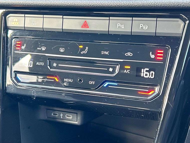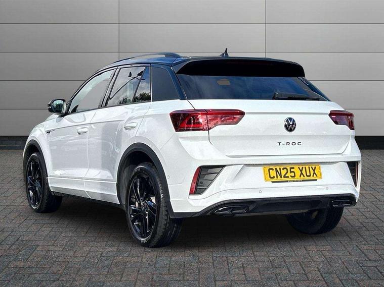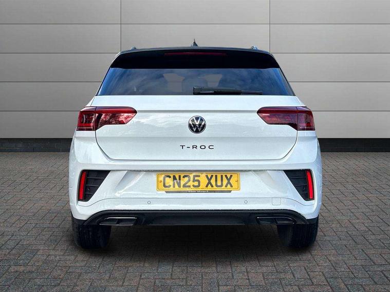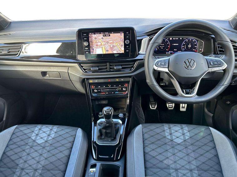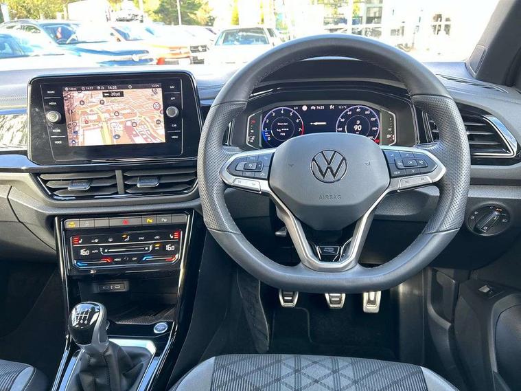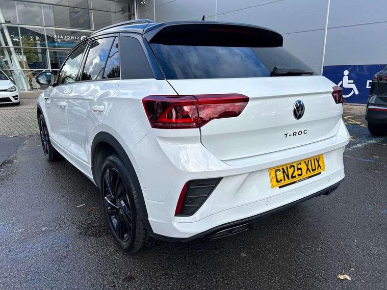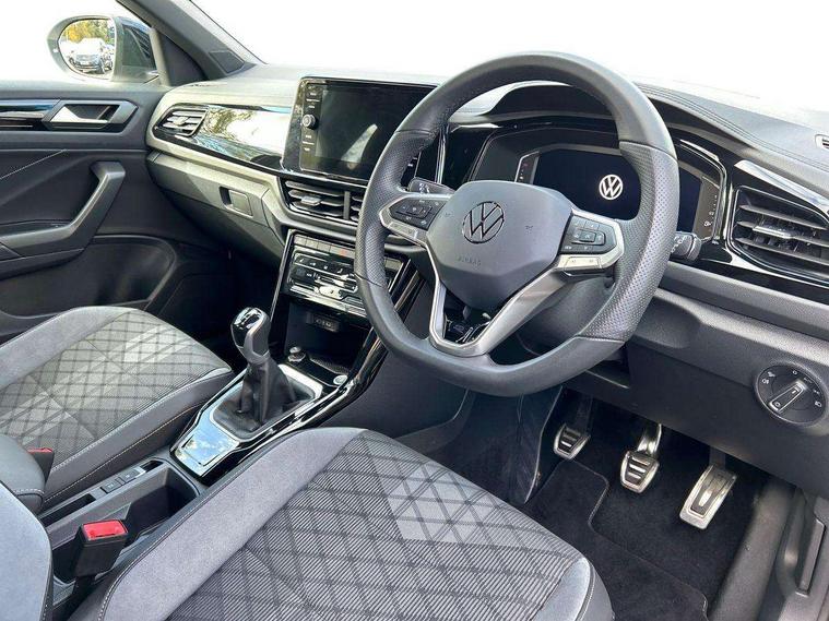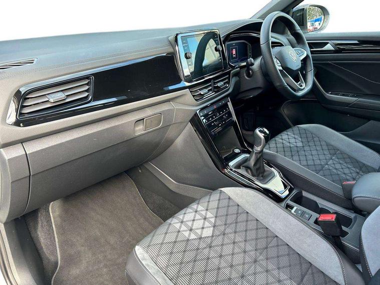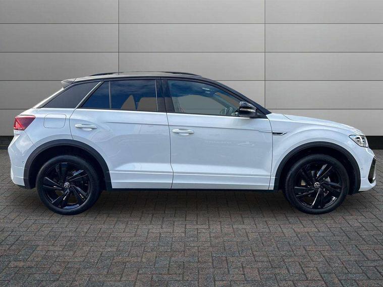 10.25" Digital cockpit pro, Advanced driver attention and drowsiness monitor, Emergency call service, Lane keeping system Lane Assist, Mobile phone interface, Modified key software - reduce switch off time for key status change to Long no motion, Online services, Park assist including front and rear parking sensors, Power assisted speed sensitive steering, Service interval indicator, Tailgate/trunk lid release from outside, Think blue trainer driver tips and journey analysis, Warning sound and light for front seatbelts unfastened, Wireless app connect, Battery regeneration during braking, Rear shock absorption chassis with increased ride height, Start/stop function with battery regeneration, DAB Digital radio, Diversity antenna for FM reception, Front and rear 6 speakers, Music playback - MP3, WMA and AAC files, Premium USB cable in choice of either Apple or Android smartphone compatibility, SD card slot, Simultaneous pairing of 2 compatible mobile devices, Title and cover art display, We Connect and We Connect Plus functionality, Auto dimming interior rear view mirror, Automatic hazard lights activation under emergency braking, Automatic headlight control with LED separate daytime running lights with coming/leaving home function, Dynamic cornering light, Electrically adjustable and heated door mirrors, Extended roof spoiler, Exterior mirrors aspherical on driver side, convex on front passenger side, External USB type C socket and charging sockets, Front windscreen wiper with intermittent wipe and 4 position delay, Heated rear window, Illuminated front grille, IQ LED matrix headlights, LED 3rd brake light, LED rear number plate lights, LED rear tail lights with dynamic turn signal, Light mode for poor weather, rain, fog or snow, Power windows with comfort operation and circuit breaker, R-Line design body coloured bumpers, Rain sensor, Rear exhaust tailpipe, Rear fog light on one side and reversing lights on both sides, Rear side wing doors, Rear wash/wipe with intermittent wipe setting, Remote electrically foldable door mirrors, puddle lights and reverse activated passenger's door mirror, 12V power socket in centre console, 3 rear head restraints, 3 seat bench in 2nd row, 4 load lashing points in luggage compartment, Air care climatronic air conditoning system with active combination filter and 2-zone temperature control, Artvelours cloth upholstery, Black roof lining, Chrome plated radiator grille inserts, air vent surrounds and light switch surrounds, Door and side trim panel with leatherette insert, Drawer under drivers seat, Driver seat height adjust, Driver's seat lumbar support, Front + rear carpet mats, Front centre armrest, Front comfort sports seats, Front cupholders x 2, Front footwell illumination, Front reading light, Front scuff plates with R Line logo, Front seat back storage pockets, Glove compartment door with light, Instrument lighting, white adjustable panel illumination, Interior ambient lighting and surround lighting, Interior light delay, Isofix child seat preparation, Leather gearshift handle, Load-through provision with cup holder when folded down ('Unsplit rear seat bench, split folding backrest, with centre armrest), Luggage compartment lighting, Non-folding front passenger seat backrest, Passenger seat height adjuster, Passenger seat lumbar support, Single front passenger seat, Stainless steel pedals, Storage compartment in left and right luggage area, Storage compartment in rear doors, Storage compartments in driver and front passenger doors, Sunvisors with illuminated vanity mirrors, Variable boot floor, height adjustable and removable, Winter pack without heated windscreen washer jets - T-Roc, 3 point height adj front seatbelts + pretensioners, 3 point seatbelts in outer rear with ECE label, ABS, Child locks on rear doors, City emergency braking and pedestrian monitoring, Driver and front passenger airbag with front passenger airbag deactivation, Driver and front passenger safety-optimised head restraints, Drivers seatbelt reminder, Electronic parking brake, Electronic Stability Control (ESC) inc EDL (Electronic Differential Lock) and ASR (Traction Control), Front and rear passengers curtain airbag system including front side airbags, Front disc brakes, Hill start assist, Predictive pedestrian protection, Rear disc brakes, Two tone horn, Tyre pressure loss indicator, Volkswagen roadside assistance, Tool kit, Trims for alloy wheels, Tyre mobility kit including compressor and sealing foam,