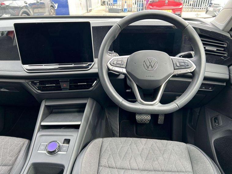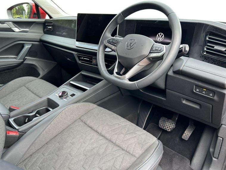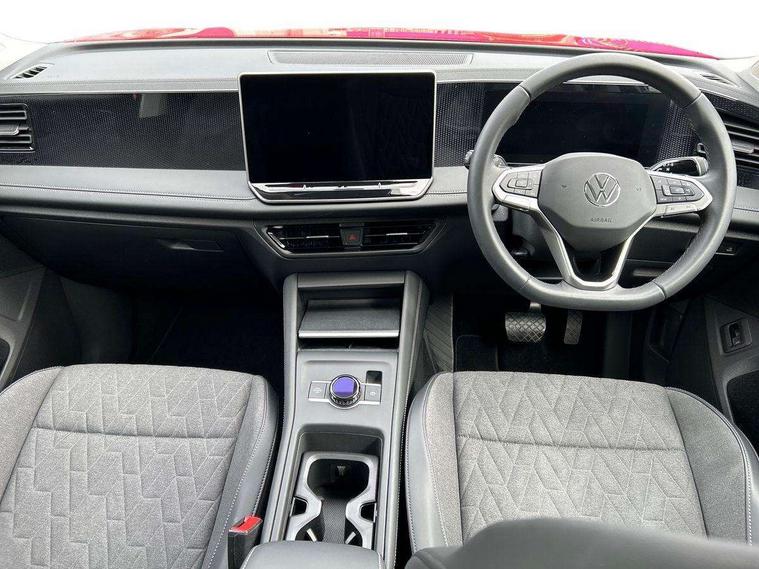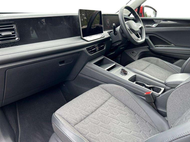 Adaptive cruise control (ACC), Advanced driver attention and drowsiness monitor, Bluetooth mobile phone interface, Car2X technology, Digital Cockpit Pro - 10.25" high resolution dash display screen with customisable menus and information, Dynamic road sign display, E-Sim card for online connectivity, eCall emergency call service, Front Assist - Autonomous emergency braking with pedestrian and cyclist monitoring, Lane change system, Side assist, Rear traffic alert and Exit warning system, Lane keeping system Lane Assist, Multifunction front facing camera, Oncoming vehicle braking when turning including swerve support, Park assistance plus with front and rear parking sensors, Power assisted steering with speed sensitive, Start/stop system with regenerative braking, Warning signal and warning light for front and rear seatbelts not fastened, Wireless App-Connect, Front wheel drive, Digital radio reception (DAB), Diversity antenna for FM reception, Ambient lighting with logo projection, Auto dimming interior rear view mirror, Automatic headlight control system, Body coloured bumpers and air intake with chrome trim, Body coloured door handles, Body-coloured exterior mirror housings, Coming/leaving home lighting function, Heat insulating glass in side and rear windows, Heat insulating windshield, Heated rear window, High level 3rd brake light, Illuminated door handle recesses, Illuminated lightline between headlamps, Rain sensor windscreen wipers, Rear fog light on one side, reversing light on both sides, Rear side wing doors, Rear wiper, 12V outlet in center console rear and in luggage compartment, 12V socket in centre console, 3 bench rear seats in 2nd row, Air care climatronic 3 zone air conditioning system with rear air conditioning control panel, Carpet mats, front and rear, Centre console with illuminated storage compartment with sliding cover and two drinks holders, Ceramique headlining, Door and side trim panel in foam film and woven fabric, Front centre armrest, ISOFIX anchors for child seats on outer rear seats and front passenger seat compatible with i-Size, Mechanical rear seat release, Power adjustable lumbar support in front, Rear bench seat, split folding, longitudinally movable and folding with load-through hatch and centre armrest, Safety optimised front head restraints, Single front passenger seat, Sun visors with illuminated vanity mirrors, Three rear head restraints, Variable luggage compartment floor, Comfort package with park assist plus and Safelock - Tiguan, Design package - Tiguan, 3 point seat belt for centre rear seats, 3 Point seat belts in front with pretensioners, 3 point seatbelts in outer rear with ECE label, Driver and front passenger airbag with front passenger airbag deactivation, Electronic parking brake with auto hold, Front and rear curtain airbags, Front and rear side airbags, Front centre airbag, Front disc brakes, Manual child proof rear door locks, Rear disc brakes, Two tone horn, Warning triangle, Anti theft wheel bolts, Soul instrument panel,