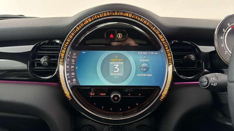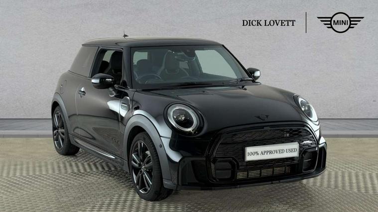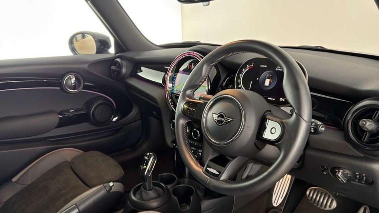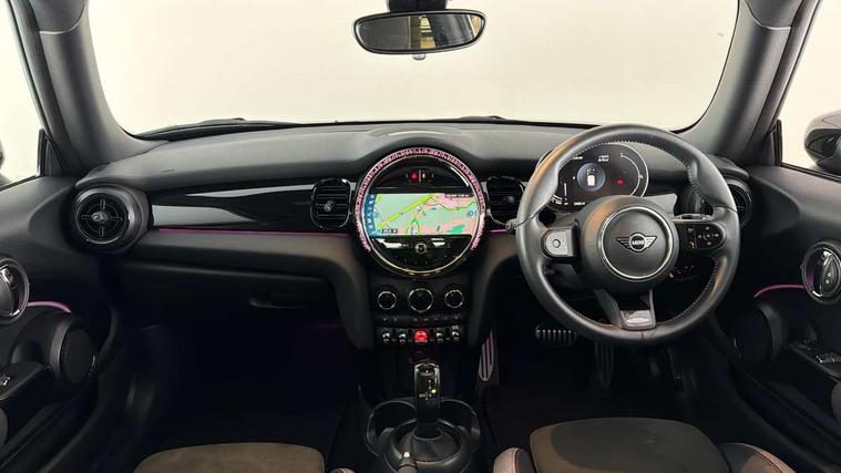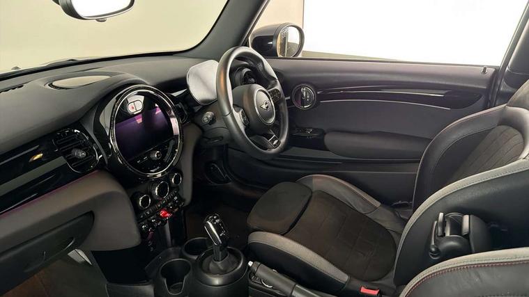 Apple CarPlay, Automatic start/stop function with brake energy recuperation, Compatible mobile phone bluetooth with audio streaming, Digital dashboard display, Electro-mechanical speed dependant steering assistance, Flexible car sharing preparation, Instrument cluster, Mini E-call, MINI TeleServices, On board computer, Service interval indicator, Double Vanos system, Fully variable valve control, High precision injection, Intelligent adaptive suspension, Performance Control, Steptronic transmission with double clutch, 4 speakers in front door trims and underneath front seats, 8.8" touchscreen with LED ring, FM tuner and DAB digital radio, 3rd brake light, Automatic headlight activation switch, Dynamic brake lights, Electric front windows, Heated rear window, Heated windscreen washer jets, JCW Aerodynamic kit - Front and rear bumpers with sporty JCW styling and part-painted side sills with MINI John Cooper Works door sill finishers, John Cooper Works rear spoiler, LED headlight with closed ring and daytime driving lights, Metal door sill strips with MINI imprint, Model logo Cooper on right of tailgate, Rain sensor window wipers, Rear fog lights, Rear LED lights with union jack design, Rear window wiper, Side scuttle panel with integrated indicator, Sun/heat protection glass, White indicator lenses, 12V Accessory socket in centre console, 2 seat bench in 2nd row, 4 lashing eyes in luggage compartment, 60/40 split folding rear seat, Anthracite headliner including grab handles and clothes hooks, Carbon black colour line - Knee roll and door armrest, Chrome interior highlights, Cupholders, Front and rear isofix with front passenger airbag deactivation, Front floor mats in velour, Glove compartment, Height and length steering column adjustment, Integrated headrests, adjustable thigh support for seats, Interior lighting with 12 different colours across the dashboard, underneath door bezel with illuminated laser-engraved design on central display, Leatherette gearshift lever and handbrake gaiters, LED reading lights, vanity mirror lights, front foot well light and spotlight on front seats, Mechanical seat adjustment - forward/back & backrest for front seats and driver seat height adjust, Multifunction steering wheel, Passenger seat height adjuster, Single front passenger seat, Storage compartments in doors, Sunvisors with vanity mirrors, Walknappa leather steering wheel with grey seam and John Cooper Works badge on Piano Black lower steering wheel spoke, Driving assistant pack - Mini Hatchback, Piano black exterior pack - Mini Hatchback Cooper, Premium pack - Hatchback, 3 point seatbelts on all four seats, 6 Airbags - front, side, head and seat belt tensioners, Anti-lock braking system (ABS), DSC - Dynamic Stability Control, Front and rear disc brakes, Single tone fanfare horn, Tyre pressure monitoring system, Alarm system with tilt sensor, monitoring doors, bonnet interior and tailgate, Electronic vehicle immobiliser, Start/stop toggle with keyless go, Piano black interior trim, Tool kit,