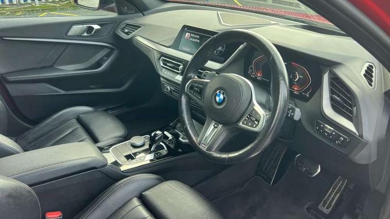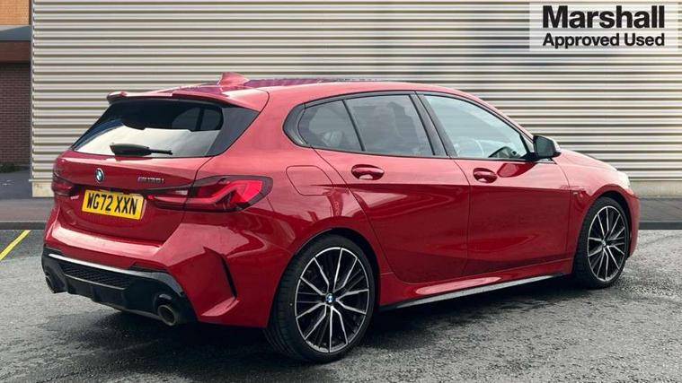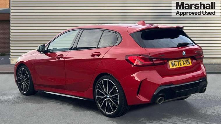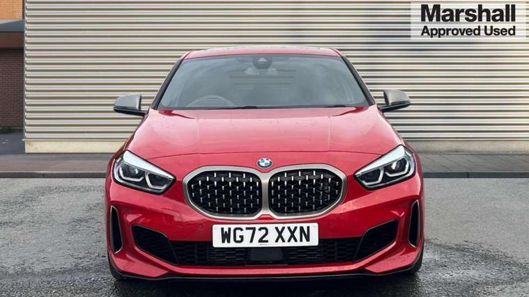 Active guard plus, Attentiveness assist, BMW ConnectedDrive online services, BMW Teleservices, Check Control warning system for monitoring of lights and door/luggage compartment open warning, Cruise control with speed limiter, Eco pro mode, Electric power steering, Electro hydraulically controlled multi-plate clutch transfers drive to rear axle and with power take-off device located on the front differential., Energy efficient operating strategy, Front axle single joint with specific axle kinematics to minimise drive influences on steering + provide increased rigidity agile driving behaviour, Gearshift time display in manual mode, Integrated owners handbook, Lane departure warning system, M Sports steering with M135i xDrive specific settings, Oil sensor for level and grade, On board computer, Optimum shift indicator, Personal Profile, Pull away assistant, Rigidly mounted rear subframe - Multi link construction with separate spring / damper configuration and excellent driving characteristics, Speed limit Info including no-overtaking indicator, Sporty fast gear shifting in sport mode, Aluminium lightweight construction, Anti roll bar front and rear, Balancer shaft, Double VANOS, Drive Performance Control, Eight speed sport automatic transmission with gearshift paddle switches, Electronic differential lock, Electronic selector lever, Engine cover with M performance designation, High precision injection, Larger fuel tank capacity (50 litres), Launch control, M135i specific heavily de-throttled engine intake air guide, M135i specific high-performance cooling package, M135i specific larger turbocharger with integrated divert-air valve, Petrol Particulate Filter, Twin tube gas filled shock absorbers with degressive characteristic curve, VALVETRONIC engine management, Variable, stepless and infinitely adjustable distribution of drive torque between the front and rear axles, xDrive intelligent all wheel drive with M135i specific reinforced components, DAB Digital radio, Auto dimming rear view mirror, Automatic headlight beam throw control, Automatic windscreen wipers and automatic headlight, Body colour door handles, Body colour roof trims, Cerium grey exterior mirror caps, Direction indicator side lights in exterior mirrors, Electrically adjustable exterior mirror with mirror adjustment switch on drivers armrest and aspheric on driver side, convex on passenger side, Exhaust tailpipe, Cerium Grey with bevelled finish - twin, round 100mm, left and right split, Fading support, Folding side mirrors with auto dimming/folding wing mirrors with auto dimming, Follow me home headlights, Front and rear bumper system with replaceable deformation elements, Front and rear electric windows with open and close fingertip control, anti trap facility and comfort closing, Front door sill finishers with M135i designation, Green tinted heat protection glazing, High gloss shadowline window frame, Recess cover mirror frames and B/C pillar embelisher trim, High level third brake light, Integrated front windscreen with washer jets, Kidney grille frame in Cerium Grey with Mesh design, LED daytime running lights, LED eyebrow turn indicators, LED front fog lights, Lightweight engineering, M logo designation side in cerium grey, M Performance exhaust system with valve control and minimised exhaust back pressure, M Performance specific setup, M Sport spoiler, Matt black air guide grilles, Matt black wheel arch trim, Model designation on electric bootlid includes xDrive designation for M135i xDrive, Nearside reverse light in rear light cluster, Preparation for high beam assistant, Rear fog lights, Rear side wing doors, Rear window wiper, Reinforced crank drive, new pistons and adapted con rods, Shark fin antenna, Trailer stabilisation logic, Visible VIN plate, Welcome lighting, 12V power socket in front centre console with blanking plug, 3 rear seat head restraints, 3 seat bench in 2nd row, 3 spoke sports leather steering wheel with black leather and stitching, pearl chrome decorative finish, specific M Badge, Anthracite headlining, Black boot net with lashing eyes, Cargo function on 2nd seat row, Child seat ISOFIX attachment for two outer rear seats and front passenger seat with anchorage points, Conditioned based service, Driver and front passenger backrest net on rear, Driver and front passenger seat heating, Driver side folding compartment in instrument panel, Folding rear clothes hook, Four grab handles integrated in roof lining, Front and rear door pockets with bottle holders, Front and rear side armrest integrated into door trim, Front armrest, Front M sports seats, Glove compartment, Height adjustable front head restraints, Luggage compartment for bag hooks on left and right, foldable luggage compartment liner and four lashing eyelets, Manual adjust steering wheel, Multi-function controls for steering wheel, Single front passenger seat, Storage compartment in centre console, Storage compartment in luggage compartment, Stowage of the parcel shelf in luggage compartment trim, Sun visors with vanity mirrors and insert tab, Two front centre console cupholders, Two zone automatic air conditioning, Type C two USB ports in rear centre console, Velour floor mats, Additional interior lighting pack - 1 Series M135i, BMW live cockpit professional pack- 1 Series, Connected pack professional - 1 Series, Interior lights pack - 1 Series, M Sport exterior styling aerodynamics pack - 1 Series 135i, 2 tone horn, 3 point seatbelts on all seats, front pyrotechnic belt tensioners, stopper and belt force limiters, rear coded belt buckles, Airbags - Front driver/passenger, front and rear curtain head protection, front side, manual deactivation of front passenger airbag, Anti lock braking system (ABS) with brake assist, BMW emergency call, Brake drying, Braking readiness, Child proof locking system in rear door, City braking function, Comfort modes, Cornering brake control, Crash sensor activating of airbags, Unlocking doors, hazard warning 