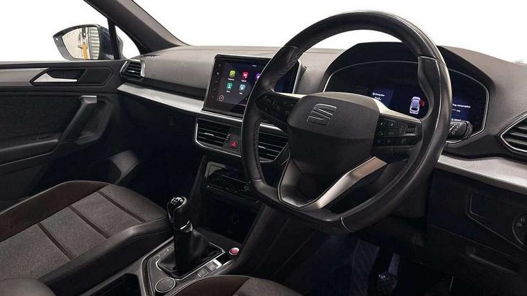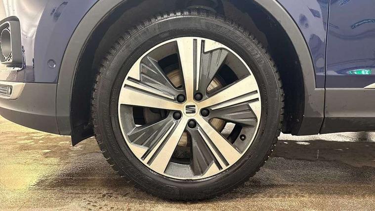 'Lights On' Reminder warning buzzer, 10.25" digital cockpit, Adaptive cruise control with speed limiter, Bluetooth audio streaming with handsfree system, Digital clock, Digital cockpit, e-Call (emergency call), Front assist city emergency braking and pedestrian protection, Full Link Wireless Smartphone Integration with Mirror Link, Apple Car Play, Lane assist, Low fuel warning light, Outside temperature gauge, Power assist steering, Rear view camera, RPM counter, Seat connect with safety, service, remote and online, SEAT Drive profile - 4 different modes, progressive steering, 4Drive versions with off-road/snow, steering response, throttle response, Self parking functionality (includes front and rear parking sensors), Trip computer, Wash water level indicator, Comfort suspension, XDS electronic differential lock, Navigation system with 9.2" colour touchscreen with proximity sensor, 3D Map display, DAB, AM/FM Radio, 3 USB (type C), Aux-in, 8 speakers, SD card, Steering wheel mounted audio/telephone controls, USB (type C) cable for Apple and Android compatibility, Auto dimming rear view mirror, Auto headlights with automatic coming and leaving home function, Automatic headlight adjustment, Black bumpers with chrome detail, Body coloured bumpers, Chrome front grille frame, Chrome roof rails, Chrome window trim, Coast to coast lighting, Dark tinted rear windows, Electric front/rear windows, Electrically adjustable and folding door mirrors, Front halogen fog lights with cornering function, Fuel door linked to central locking, Full LED headlights with LED rear lights, Heated door mirrors, Hidden exhaust pipe, Illuminated aluminium front door sill with trim logo, LED daytime running lights, LED licence plate lighting, Rain sensing wipers, Rear fog lights, Rear wash/wipe, Welcome lighting, 3 zone climate control, Ambient spot lighting and front footwell illumination, Black interior roof, Centre armrest in front with air outlet in rear, Driver and passenger sunvisor with covered and illuminated mirror, Driver/passenger lumbar adjustment, Easy fold rear seat system - second and third row, Folding table on front seat backrests, Forward and backward adjustable seats 2nd row, Four cargo rings in the boot, Front cupholders, Front seat back storage pockets, Gear shift indicator, Height adjustable driver's seat, Height adjustable front headrests, Height adjustable passenger seat, Illuminated boot, Illuminated glovebox, Instrument lighting with brightness control, ISOFIX points in outer 2nd row seats and front passenger seat with top tether anchorage points, Leather gear knob, Leather wrapped multifunction steering wheel, Luggage compartment floor with split function, Rear armrest and easy back seat release mechanism from boot, Rear head restraints, Sliding boot cover, Storage compartment in roof console for sunglasses, Storage draw under front passenger seat, Three 12V sockets, White ambient lighting in front and rear door panels + LED lights in interior door handles, 3x3 point rear seatbelts, ABS, Active front head restraints, Driver/front passenger airbag, Drivers knee airbag, Electronic parking brake with auto hold, Electronic stability control, Front passenger airbag deactivation, Front side airbags, Hill hold control, Seatbelt reminders for all seats, Tiredness recognition system, Traction control, Two curtain airbags, Tyre pressure monitoring system, Alarm, Central locking, Keyless enter and go with electric tailgate with virtual pedal, Locking wheel bolts, Power locking and remote control with two foldable keys and opening boot selector, Chrome interior detailing - door and dashboard decorative inserts, 19" Aero machined matt black alloy wheels, Tool kit,