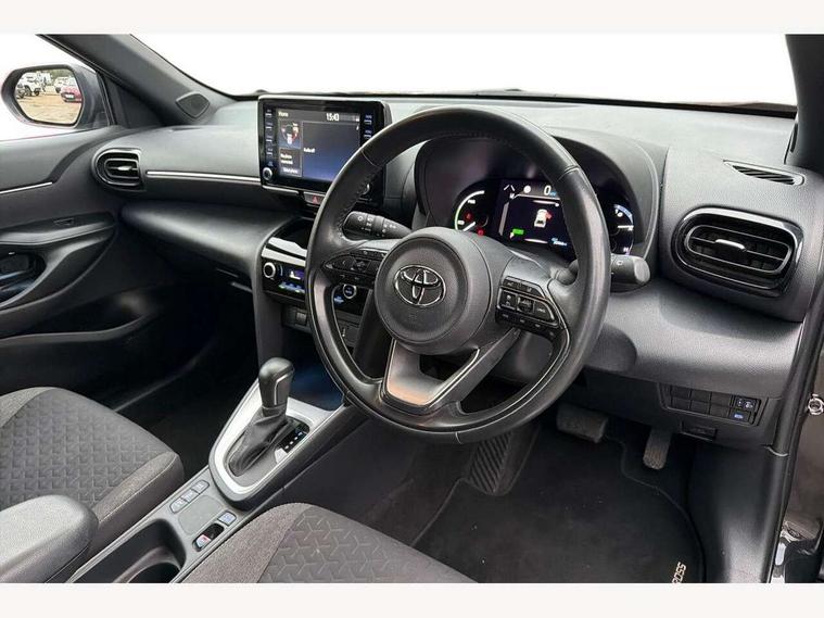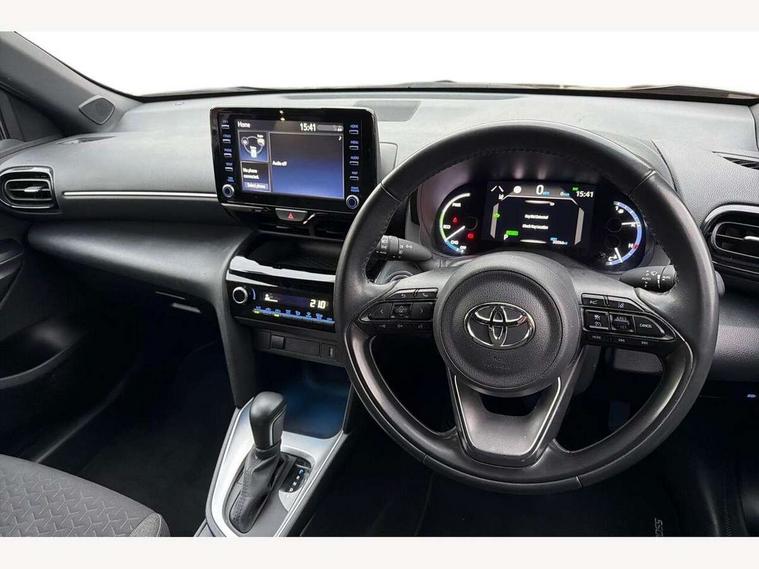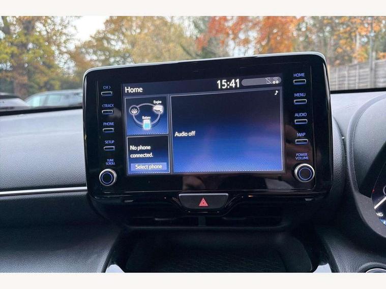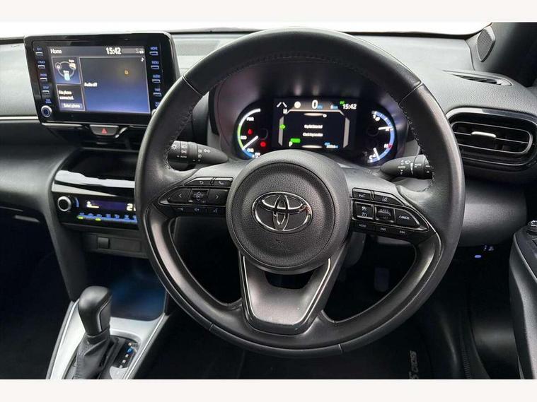 7" Multi information display screen, 8" Toyota touch 2 multimedia system with Smartphone integration with Apple CarPlay and Android auto, Adjustable speed limiter, Bluetooth connectivity, Driver attention alert system, eCall emergency system, Electric power steering, Full range intelligent adaptive cruise control, Hybrid system indicator, Key reminder warning, Lane trace assist, Multimedia, audio, telephone and voice recognition switches on steering wheel, My T Connected services, Pre-collision system enhanced with emergency steering assist, Reversing camera, Road sign assist - RSA, Steering assisted vehicle stability control, 6 speakers, DAB Digital radio, USB connection, 3rd brake light, Acoustic windscreen glass, Aluminium roof rails, Anti-jam protection on power windows, Auto high beam [AHB] with on/off switch, Automatic headlights, Black lower front grille, Black Shark-fin antenna, Black upper front grille, Black wheel arch mouldings, Body colour door handles, Body colour front bumper, Body colour rear bumper, Electric adjustable heated door mirrors, Follow me home headlights, Front and rear electric windows with auto up/down function, Front intermittent wipers, Headlight cut off reminder, Indicators integrated on door mirrors, Intermittent rear wiper, LED daytime running lights guide, LED front fog lights, LED front light guide, LED Indicators, LED projector headlights, LED rear light guide, Manual headlight levelling, Manually retractable door mirrors, Noise reduction layer on windscreen, Privacy glass, Rain sensor, Rear LED lights with sequential indicators, Rear side wing doors, Rear spoiler, Rear window defogger, 12v power outlet - front, 2x Rear coat hooks, 3 seat bench in 2nd row, 3 spoke leather steering wheel, 40:20:40 split folding rear bench seat, Adjustable speed limiter switch on steering wheel, Auto air conditioning, Black roof lining, Boot light, Central armrest, Centre console in light blue ambent lighting, Driver and front passenger personal lights, Fabric door trim, Fabric upholstery, Footwell in light blue ambient lighting, Front console box, Front cup holders, Front head restraints, Glovebox, Height adjustable driver's seat, Height adjustable front passenger seat, Hooks for luggage holding belts, ISOFIX child restraint system, Lane departure alert switch on steering control, Leather gearshift, Light blue ambient lighting on front doors, Manual telescopic and tilting steering wheel, Mirror on driver and passenger sun visor, Pollen air filter, Rear cup holders, Rear head restraints, Single front passenger seat, Soft tonneau cover, 3x3 point rear seat belts, ABS+EBD+Brake assist, Driver and passenger central airbags, Driver and passenger front airbags, Driver and passenger side airbags, Electronic parking brake, Emergency brake light system (EBS), Front seat belt reminder, Hill start assist control (HAC), Passenger airbag on/off switch, Pre-collision system with pedestrian and cyclist detection, Rear door child safety locks, Rear passenger side airbags, Rear seat belt reminder, Traction control, Tyre pressure warning system, Immobiliser, Intrusion alarm, Keyless smart entry with push button start, Power door locks, Power passenger window lock, Remote door lock, Tyre repair kit,