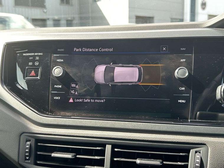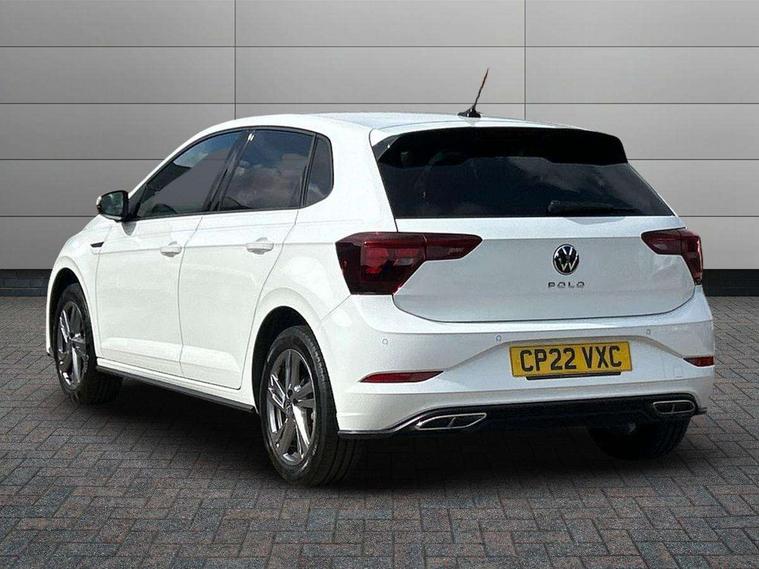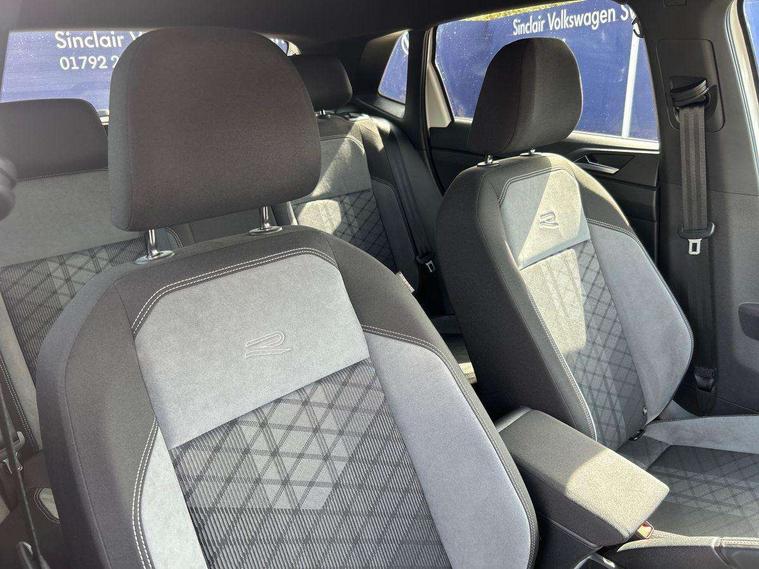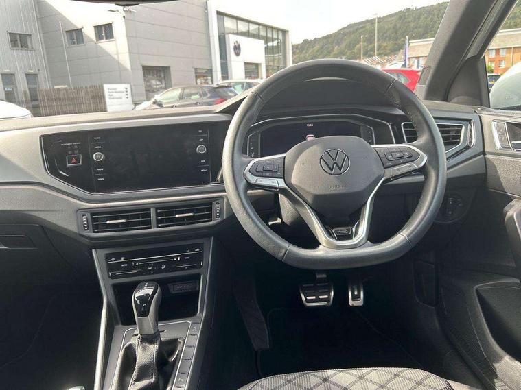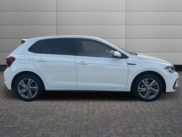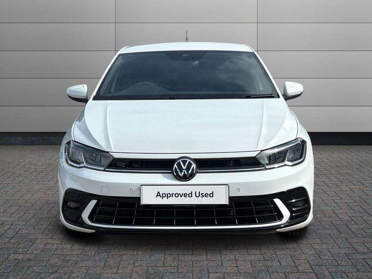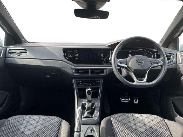 Adaptive cruise control with follow-to-stop and speed limiter, Bluetooth mobile phone interface, Digital Cockpit Pro with 10.25" Display, Driver alert system, Dynamic road sign display, Emergency call service, Power assisted speed sensitive steering, Preparation for We connect and We connect plus, Speedo and rev counter, electronic odometer, trip, service interval display and fuel gauge, Standard rear axle, Travel Assist - Lane keeping system and traffic jam assist, Travel assist including emergency assist, Trip computer, Warning signal and warning light for front and rear seatbelts not fastened, Washer fluid level indicator, Wireless app connect, Front wheel drive, Rear shock absorpion, Start-stop system with battery regeneration (recuperation - energy recovery during braking), DAB Digital radio, Diversity antenna for FM reception, Front and rear 6 speakers, Body colour bumpers, Body colour door handles, Body colour door mirrors, Electric front windows, Front scuff plates with R-Line logo, Heat insulating darkened glass in side and rear windows, Heat insulating glass windscreen, Power folding adjustable/heated exterior mirrors and front passenger exterior mirror lowering function, Rear electric windows, Rear fog light, Rear side wing doors, Rear tinted glass from B-pillar backwards approx 65% tinted, Rear windscreen washer and wiper with interval delay, Third brake light, 12V power socket in centre console, 2 USB-C ports in the front, 2 USB-C charging sockets on the center console in the rear, 3 rear head restraints, 60/40 split folding rear seat and rear seat bench not split, Air care climatronic air conditoning system with active combination filter and 2-zone temperature control, Black roof lining, Ceramique headliner, Chrome plated radiator grille inserts, air vent surrounds and light switch surrounds, Door and side trim panel, Driver and front passenger seat height adjustment, Driver/passenger sunvisors with illuminated vanity mirrors, Front + rear carpet mats, Front centre armrest, Front footwell illumination, Front seat backrest storage pockets, Front sports comfort seats, Handbrake lever handle in leather, Isofix child seat preparation easy-fit (for two outer rear seats, and front passenger seat) compatible with I-size, Karoso artvelours cloth upholstery, Leather trimmed gear knob, LED interior light with switch off delay and dimmer, 2 reading lights front and rear, Luggage compartment cover, Luggage compartment floor, Luggage compartment lighting, Lumbar adjustment for front seats, Single front passenger seat, Stainless steel pedals, Standard pedal cluster, Three spoke leather wrapped multifunction steering wheel with shifting paddles, Light and sight pack - Polo R-Line/Black Edition, 3 point height adj front seatbelts + pretensioners, 3x3 point rear seatbelts, ABS, Driver and front passenger airbag with front passenger airbag deactivation, Drivers and front passengers safety optimised head restraints, ESC (Electronic stability control) + EDL (Electronic Differntial lock) and ASR (Traction control), Extended and predictive pedestrian/ cyclist protection, Front curtain and side airbags with center airbag, Front/rear disc brakes, Hill hold control, Manual child lock in rear doors, Single tone horn, Tyre pressure loss indicator, Alarm with interior protection, Anti-theft alarm system with interior monitoring, backup horn, and towing protection, Anti-theft wheel bolts, Electronic engine immobiliser, Chrome applications on rotary light, mirror adjustment, window regulator switches, outlet with frame in black, Dark grey anodised matt decorative inserts in dash and front door panels, Low rolling resistance tyres,