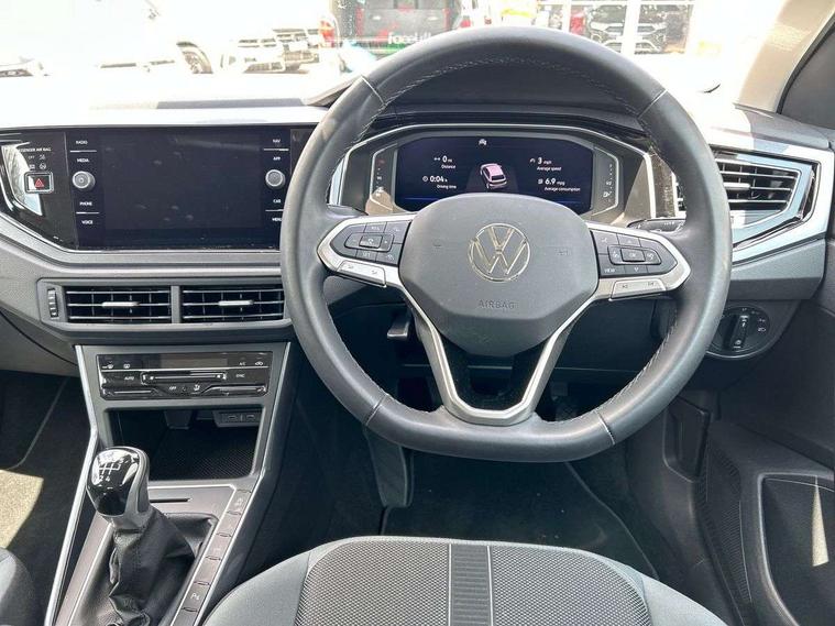 Adaptive cruise control without follow-to-stop and speed limiter, Bluetooth mobile phone interface, Digital Cockpit Pro with 10.25" Display, Driver alert system, Dynamic road sign display, Emergency call service, Power assisted speed sensitive steering, Preparation for We connect and We connect plus, Speedo and rev counter, electronic odometer, trip, service interval display and fuel gauge, Standard rear axle, Travel Assist - Lane keeping system and traffic jam assist, Travel assist including emergency assist, Trip computer, Warning signal and warning light for front and rear seatbelts not fastened, Washer fluid level indicator, Wireless app connect, Front wheel drive, Rear shock absorpion, Start-stop system with battery regeneration (recuperation - energy recovery during braking), DAB Digital radio, Diversity antenna for FM reception, Front and rear 6 speakers, Automatic dimming interior rear view mirror, Automatic headlights, Body colour door handles, Body coloured bumpers and radiator grille with chrome trims, Electric front windows, Heat insulating darkened glass in side and rear windows, Heat insulating glass windscreen, LED separate daytime running lights with coming/leaving home function, Power folding adjustable/heated exterior mirrors and front passenger exterior mirror lowering function, Rain sensor, Rear electric windows, Rear fog light, Rear side wing doors, Rear windscreen washer and wiper with interval delay, Third brake light, 12V power socket in centre console, 2 USB-C ports in the front, 2 USB-C charging sockets on the center console in the rear, 3 rear head restraints, 60/40 split folding rear seat and rear seat bench not split, Air care climatronic air conditoning system with active combination filter and 2-zone temperature control, Ambient lighting, Ceramique headliner, Chrome plated radiator grille inserts, air vent surrounds and light switch surrounds, Door and side trim panel, Driver and front passenger seat height adjustment, Driver/passenger sunvisors with illuminated vanity mirrors, Front + rear carpet mats, Front centre armrest, Front footwell illumination, Front seat backrest storage pockets, Front sports comfort seats, Handbrake lever handle in leather, Isofix child seat preparation easy-fit (for two outer rear seats, and front passenger seat) compatible with I-size, Leather trimmed gear knob, LED interior light with switch off delay and dimmer, 2 reading lights front and rear, Luggage compartment cover, Luggage compartment floor, Luggage compartment lighting, Lumbar adjustment for front seats, Multifunction steering wheel, Single front passenger seat, Standard pedal cluster, IQ LED matrix headlights pack - Polo, Light and vision pack - Polo, 3 point height adj front seatbelts + pretensioners, 3x3 point rear seatbelts, ABS, Driver and front passenger airbag with front passenger airbag deactivation, Drivers and front passengers safety optimised head restraints, ESC (Electronic stability control) + EDL (Electronic Differntial lock) and ASR (Traction control), Extended and predictive pedestrian/ cyclist protection, Front curtain and side airbags with center airbag, Front disc brakes, Hill hold control, Manual child lock in rear doors, Rear drum brakes, Single tone horn, Tyre pressure loss indicator, Alarm with interior protection, Anti-theft alarm system with interior monitoring, backup horn, and towing protection, Anti-theft wheel bolts, Electronic engine immobiliser, Chrome applications on rotary light, mirror adjustment, window regulator switches, outlet with frame in black, Deep iron gloss decorative inserts in dash and front door panels, Low rolling resistance tyres,