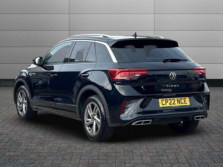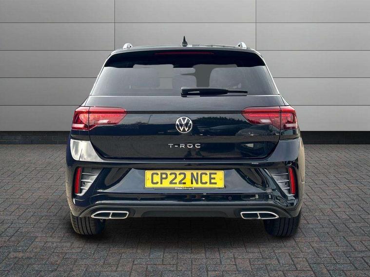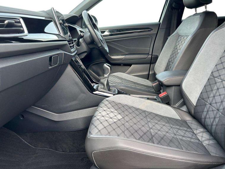 10.25" Digital cockpit pro, Bluetooth mobile phone interface, Driver alert system with fatigue detection, Driver tips and journey analysis, Emergency call service, Lane keeping system Lane Assist, Modified key software - reduce switch off time for key status change to Long no motion, Online services, Park assist including front and rear parking sensors, Service interval indicator, Tailgate/trunk lid release from outside, Think blue trainer driver tips and journey analysis, Warning sound and light for front seatbelts unfastened, Wireless app connect, Battery regeneration during braking, Start/stop function with battery regeneration, Diversity antenna for FM reception, Front and rear 6 speakers, Music playback - MP3, WMA and AAC files, Premium USB cable in choice of either Apple or Android smartphone compatibility, SD card slot, Simultaneous pairing of 2 compatible mobile devices, Title and cover art display, We Connect and We Connect Plus functionality, 3rd brake light, Auto dimming interior rear view mirror, Automatic hazard lights activation under emergency braking, Automatic headlight control with LED separate daytime running lights with coming/leaving home function, Extended roof spoiler, Exterior mirrors aspherical on driver side, convex on front passenger side, External USB type C socket and charging sockets, Front windscreen wiper with intermittent wipe and 4 position delay, Heated rear window, LED Plus headlamps, LED rear combination lamps, LED rear number plate lights, LED tail lamp rear comination lamps, Power windows with comfort operation and circuit breaker, R-Line design body coloured bumpers, Rain sensor, Rear exhaust tailpipe, Rear fog light on one side and reversing lights on both sides, Rear side wing doors, Rear wash/wipe with intermittent wipe setting, Remote electrically foldable door mirrors, puddle lights and reverse activated passenger's door mirror, 12V power socket in centre console, 3 rear head restraints, 3 seat bench in 2nd row, 4 load lashing points in luggage compartment, Air care climatronic air conditoning system with active combination filter and 2-zone temperature control, Black roof lining, Chrome plated radiator grille inserts, air vent surrounds and light switch surrounds, Door and side trim panel with leatherette insert, Drawer under drivers seat, Front + rear carpet mats, Front centre armrest, Front cupholders x 2, Front footwell illumination, Front reading light, Front scuff plates with R logo, Instrument lighting, white adjustable panel illumination, Interior ambient lighting and surround lighting, Interior light delay, Isofix child seat preparation, Leather gearshift handle, Load-through provision with cup holder when folded down ('Unsplit rear seat bench, split folding backrest, with centre armrest), Luggage compartment lighting, Single front passenger seat, Stainless steel pedals, Storage compartment in left and right luggage area, Storage compartment in rear doors, Storage compartments in driver and front passenger doors, Sunvisors with illuminated vanity mirrors, Variable boot floor, height adjustable and removable, Driver assistance pack without proactive passenger protection - T-Roc, 3 point height adj front seatbelts + pretensioners, 3 point seatbelts in outer rear with ECE label, ABS, Child locks on rear doors, Driver and front passenger airbag with front passenger airbag deactivation, Driver and front passenger safety-optimised head restraints, Drivers seatbelt reminder, Electronic parking brake, Electronic Stability Control (ESC) inc EDL (Electronic Differential Lock) and ASR (Traction Control), Front and rear passengers curtain airbag system including front side airbags, Front assist with city emergency braking and pedestrian monitoring, Front seat side impact airbags, Hill start assist, Predictive pedestrian protection, Rear disc brakes, Single tone horn, Tyre pressure loss indicator, Volkswagen roadside assistance, Alarm with interior protection, Anti-theft alarm system with interior monitoring, backup horn, and towing protection, Remote central locking with SAFELOCK, radio remote control with 2 remote control folding keys, Trims for alloy wheels,