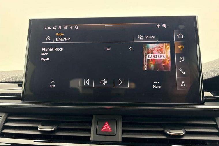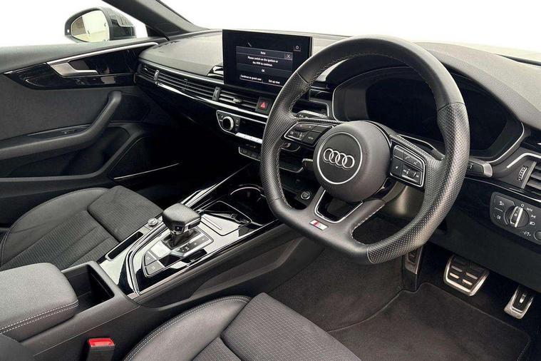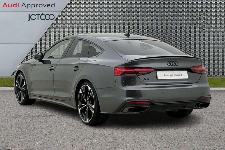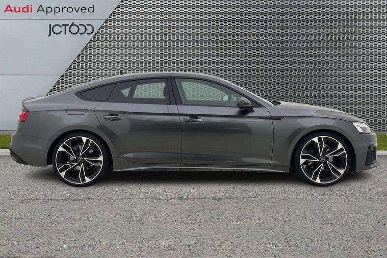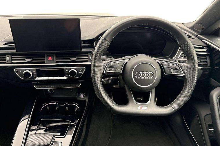 Audi connect safety and service (e-call), Audi connect with Amazon Alexa Integration, Audi drive select (Auto, Comfort, Dynamic and Individual), Audi parking system plus with front and rear sensors, Audi smartphone interface, Audi virtual cockpit - 12.3" full colour digital instrument cluster, vehicle/engine speed, Radio/media information+Driver assistance systems, Automatic start-stop system with coasting functionality and efficiency programme, Bluetooth interface, Electro-mechanical power steering, Email, calendar and text messages displayed via MMI, MMI nav+ with MMI touch - 10.1" high resolution MMI display, touch sensitive, 3D map, route/country info, dynamic route guide, personal route assist, Power operated tailgate, Rear view camera, Service interval indicator, Voice control system, Sports suspension lowered by 23mm, 8 passive loudspeakers, CD player, DAB digital radio reception, Two additional USB ports for rear passenger in rear centre console, Two SDXC card slots, Audi Beam uses LEDs to project the Audi logo, Audi matrix LED headlights with LED rear lights + dynamic front and rear indicators, Auto dimming door mirrors, Auto dimming rear view mirror, Black door mirror housings, Body colour door handles, Body colour front spoiler lip, Body colour side sill trim, Electric adjustable heated door mirrors, Electric folding door mirrors, Electric front windows, Exhaust tailpipe trims in grey, Front and rear bumpers with side skirts, Front fog lights, Honeycomb structure radiator grille in grained matt black, Kerb-view function for passenger side, LED daytime running lights, LED side indicator lights integrated into door mirrors, LED third brake light, Privacy glass, Rain and light sensors, Rear diffuser in matt titanium black with trim strip in matt aluminium silver, Rear side wing doors, S model rear spoiler in black, Side air inlets in grained matt black with matt aluminium silver inlay, Variable front intermittent wipers, Windscreen with acoustic glazing, 3 seat bench in 2nd row, 4 way electric lumbar support for driver and front passenger, 40/20/40 split folding 3 seater rear bench seat, Adjustable steering column, Black cloth headlining, Black perforated leather gearknob, Contrast stitching on seats, steering wheel and gear lever gaiter, Deluxe 3 zone electronic climate control, Front centre armrest, Front head restraints, Front/rear floor mats, Heated front seats, Illuminated door sill trim with S logo, ISOFIX child seat mounting and top tether, Luggage compartment mat, Manual seat adjustment, Rear centre armrest, Rear headrests, Single front passenger seat, Stainless steel pedals, Sunvisors with vanity mirrors, Black styling pack - A5 Coupe/Sportback, LED interior light pack - A5/RS5, 3x3 point rear seatbelts, 6 airbags - Driver, front passenger, curtain and side airbags, Electromechanical parking brake, Electronic Stabilisation Control (ESC) including ABS, ASR and EDL, Front passenger airbag deactivation, Height adjustable front seatbelts, Hill hold assist, Manual child lock in rear doors, Multi collision brake assist, Pop-up bonnet for pedestrian protection, Pre sense city, Seatbelt monitoring, Tyre pressure warning, Variable restraint system, Warning triangle and first aid kit, Anti theft alarm system, Anti theft wheel bolts, Immobiliser, Keyless Go, Remote central locking, Piano black finish inlay, 20" 5 twin spoke polygon design alloy wheels in gloss anthracite black and gloss turned finish, Tool kit, Tyre repair kit,