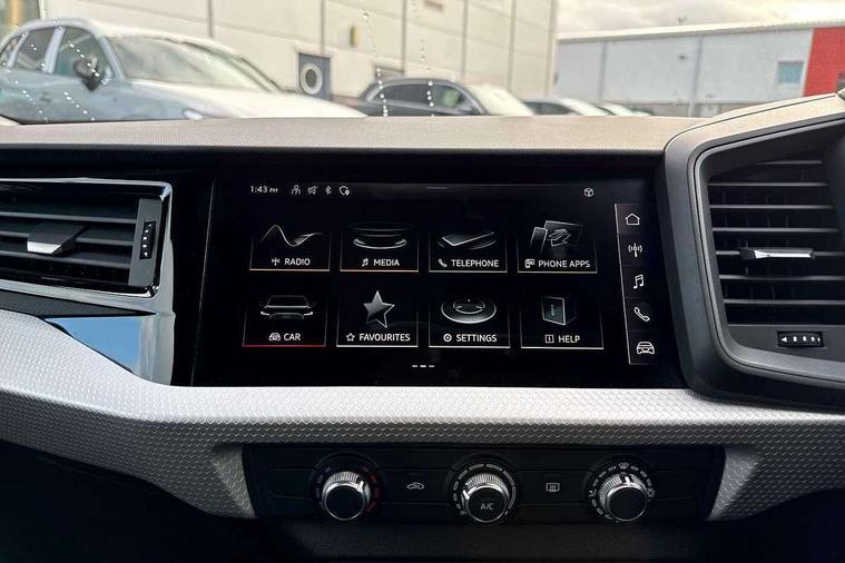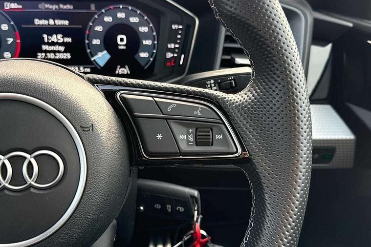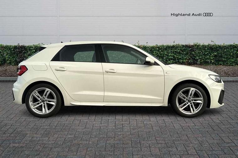 10.25" Digital instrument cluster display classis style instrument dials + speed, odometer, time, outside temperature, telephone menu + fuel level warning, Audi smartphone interface with connect compatible smartphone via USB directly MMI display + Nav, music, third party apps controlled via MMI controller, Automatic start/stop system, Bluetooth interface, Cruise control, Driver's information system, Electromechanical power steering, Emergency e-call, Emergency services call system, Lane departure warning system, Service interval indicator, Speed limiter, Voice control system, Washer fluid level indicator, Sports suspension, 1 x SDXC card reader, 2 x USB type C connection points, DAB Digital radio, MMI radio plus with 8.8" colour MMI display screen and MMI touch, Auto dimming rear view mirror, Body coloured door mirrors, Door sills with aluminium inlays and S Line logo, Electric front and rear windows, Electrically adjustable, heated, folding door mirrors with integrated LED side indicator, Front side air inlets in grained matt black and C frame in titanium black, Heat insulating glass windscreen and side windows, Heated rear windscreen, High level LED brake light, LED headlights with LED rear lights + dynamic rear indicators + headlight adjustment and high beam, turning light + LED daytime running lights, Radiator grille and rear diffuser in matt titanium black, Radiator protective grille frame in matt aluminium silver, Rain and light sensors, Rear fog lights, Rear side wing doors, Rear wing door, Rear wiper, S line badges on front wings, Side front spoiler lips in grained matt black, 12V socket in centre console with two cup holders, 3 rear seats with headrests, 3 seat bench in 2nd row, 40:60 Split folding rear seat or folded fully, Black cloth headlining, Driver and passenger seat with manual height adjust with forward and backwards adjustment, Front and rear black floor mats with contrast stitching in fine silver, Front head restraints, Front passenger seat, Height and reach adjustable steering wheel, ISOFIX child seat mounting for front passenger and outer rear seats including top tether attachment point of outer rear seats, Leather gear knob with aluminium trim, Luggage compartment light with front and rear reading lights, Manually adjustable lumbar support in front seats, Stainless steel pedals, LED interior lighting pack - A1, Luggage compartment pack - A1, S line exterior styling pack - A1 Sportback, 3x3 point rear seatbelts, Audi pre-sense front with pedestrain and cyclist recognition, Brake assist function, Driver and front passenger airbag with front side and head airbags, Electronic Stability Control including ABS, EBD, ASR and EDL, Front passenger airbag deactivation switch, Hill hold assist, Manual rear child locks, Seatbelt height adjustment for front seats, Seatbelt monitoring, Tyre pressure warning light, Warning triangle and first aid kit, Anti theft alarm, Anti theft wheel bolts and loose wheel warning, Immobiliser, Remote central locking with 2 foldaway keys, Aluminium trim for control switches, air vents and digital instrument cluster, Silver grey inlays polygon structure in diamond paint finish, Structured grey accent areas including air vents, door handle recesses and centre console in quartz paint finish,